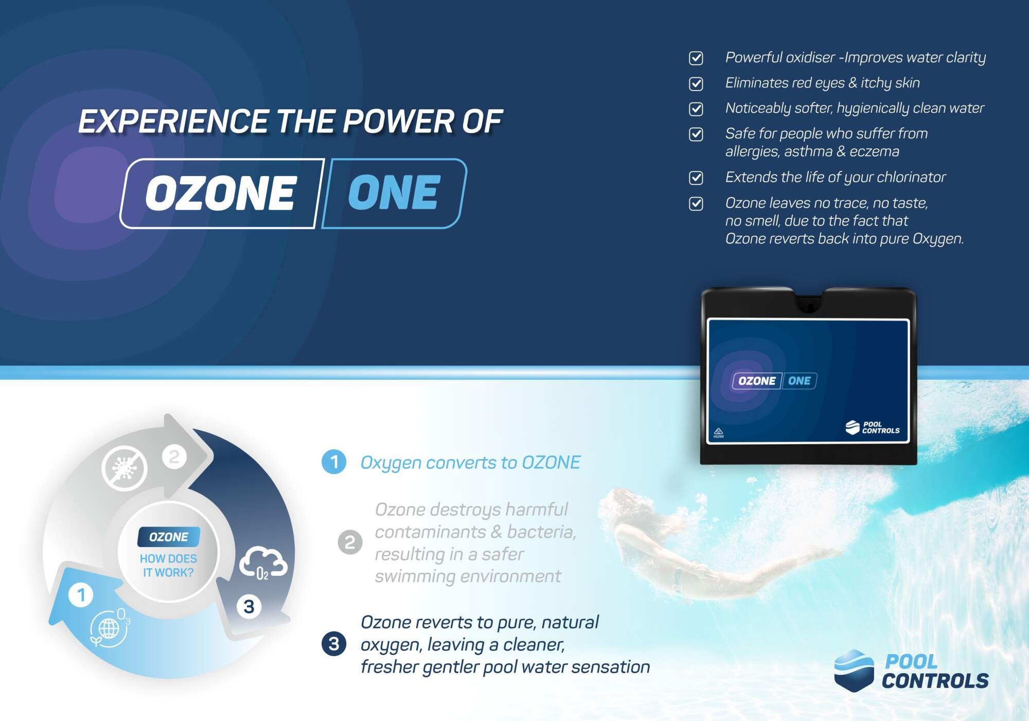 Ozone One is a stand-alone ozone generator and can be retro-fitted to existing water management systems. Ozone is an extremely powerful sanitiser and provides frontline defence against harmful pathogens in the water, minimising the need for residual sanitisers. Ozone is injected into the water flow using Pool Controls’ innovative Q-foil injection system. Ozone sanitises water instantly and is then converted to oxygen,