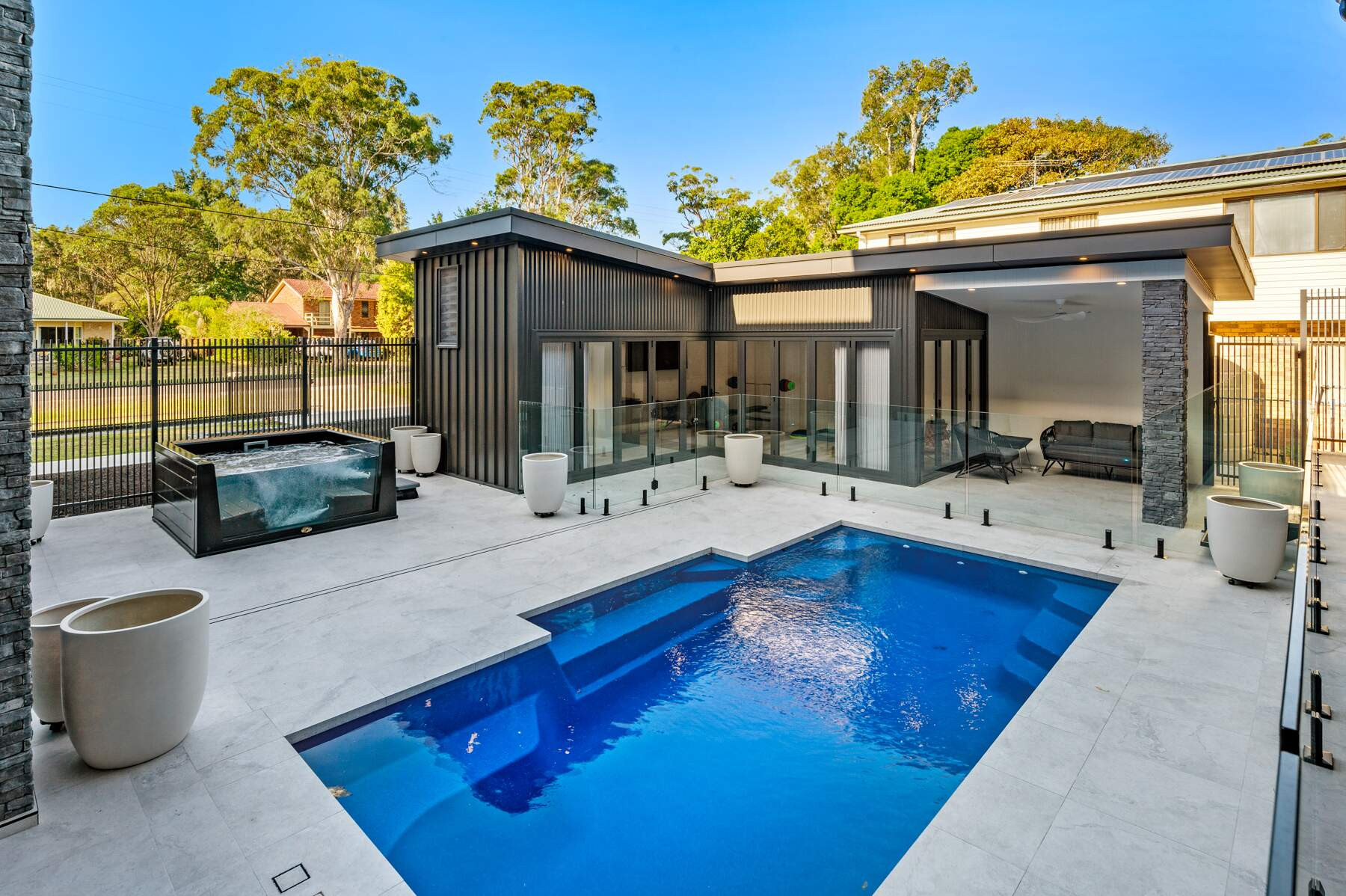 Absolute waterfront beauty, the ultimate entertainers pool. Our 6m Ambassador finished in Cascade Marbletech interior really completes the outdoor entertaining area of this new award winning home. No need to go on holidays when you have the ocean out the front and this beautiful outdoor entertaining area out the back. Finished to the highest quality this pool will create plenty of memories for years to come.