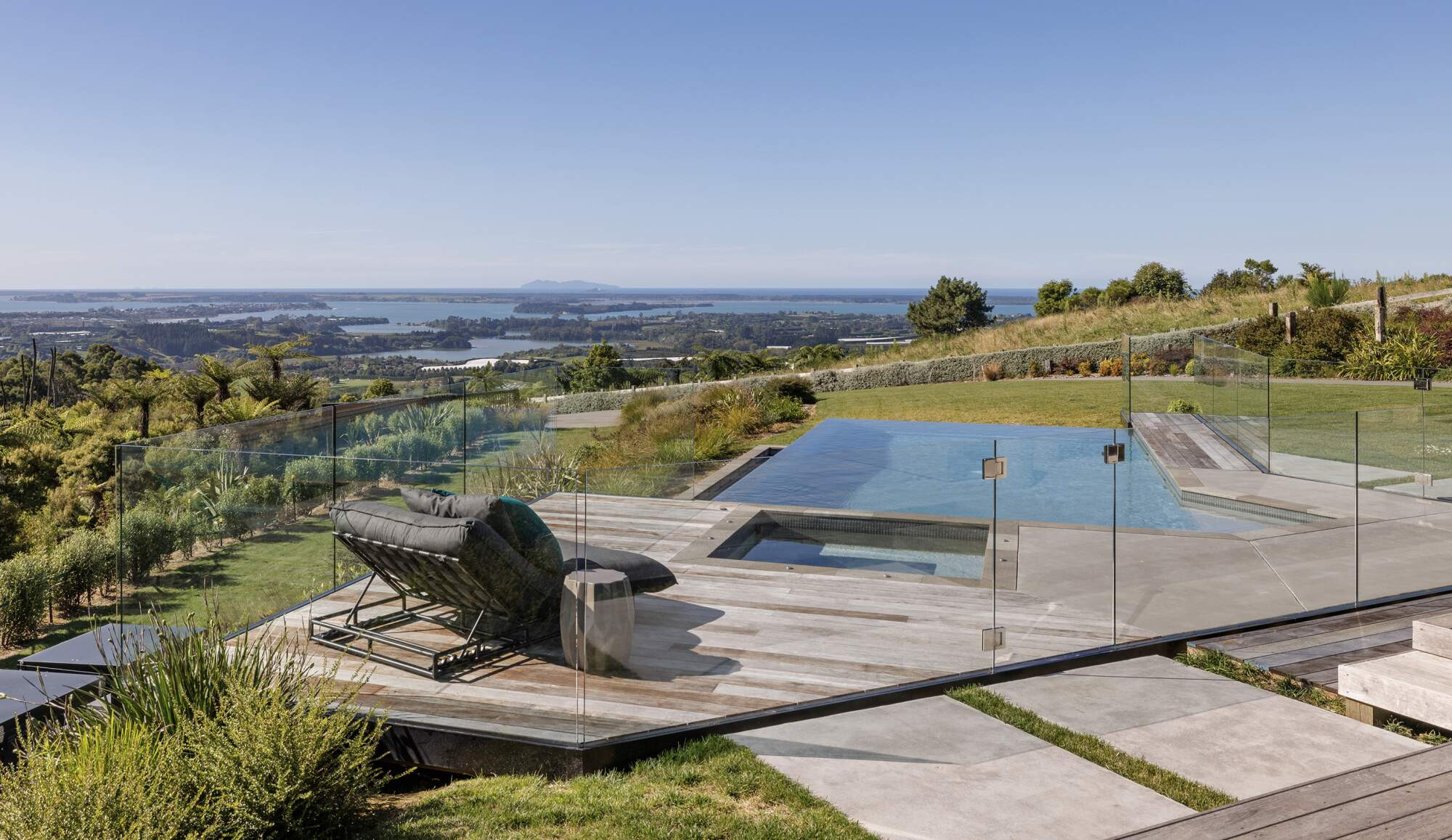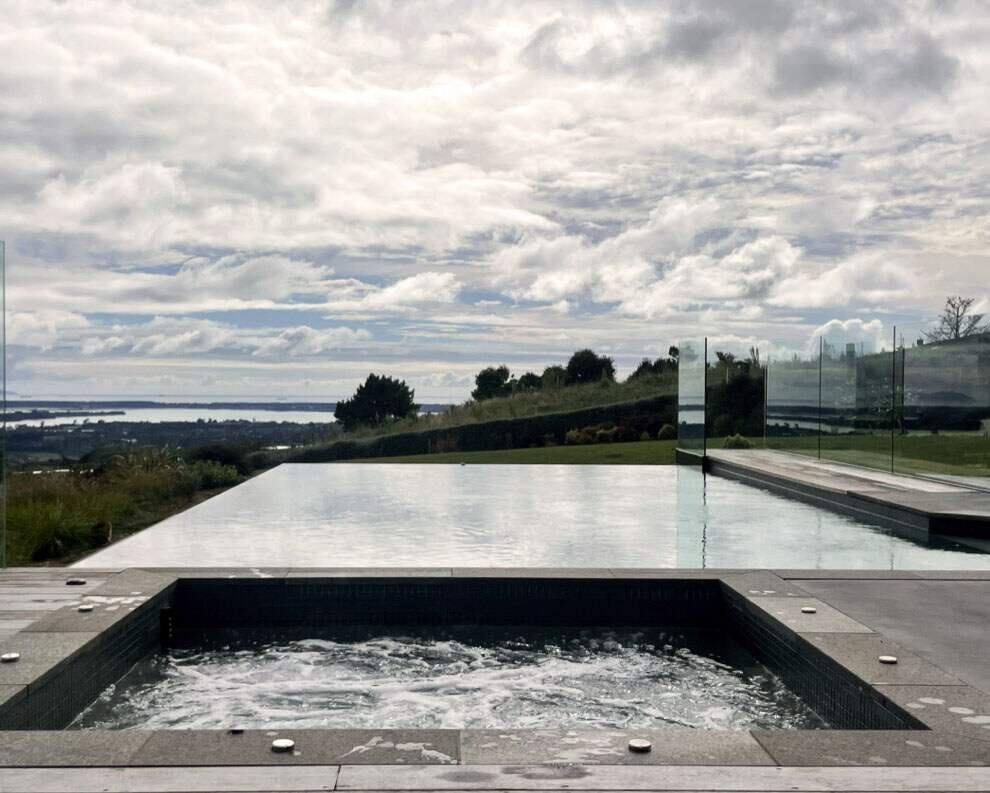 This project was all about creating a stunning pool and spa that would blend perfectly with the natural landscape and make the client feel completely immersed in the stunning view. Sustainability and energy efficiency were key features of this build as the property is semi-rural and has no town water supply. The pool and spa finishes were chosen to complement the features of the house and make it feel like a natural part of the landscape.