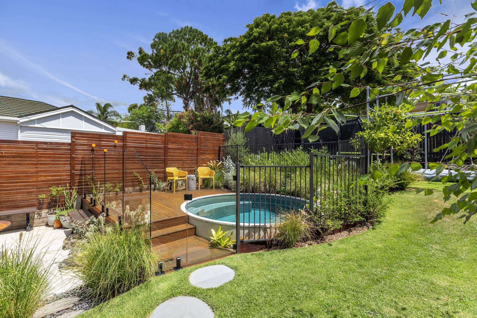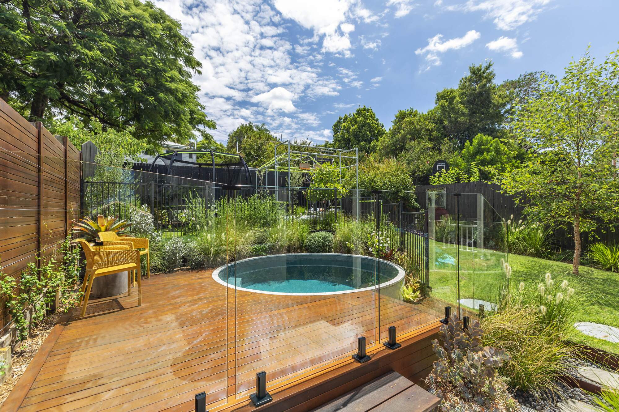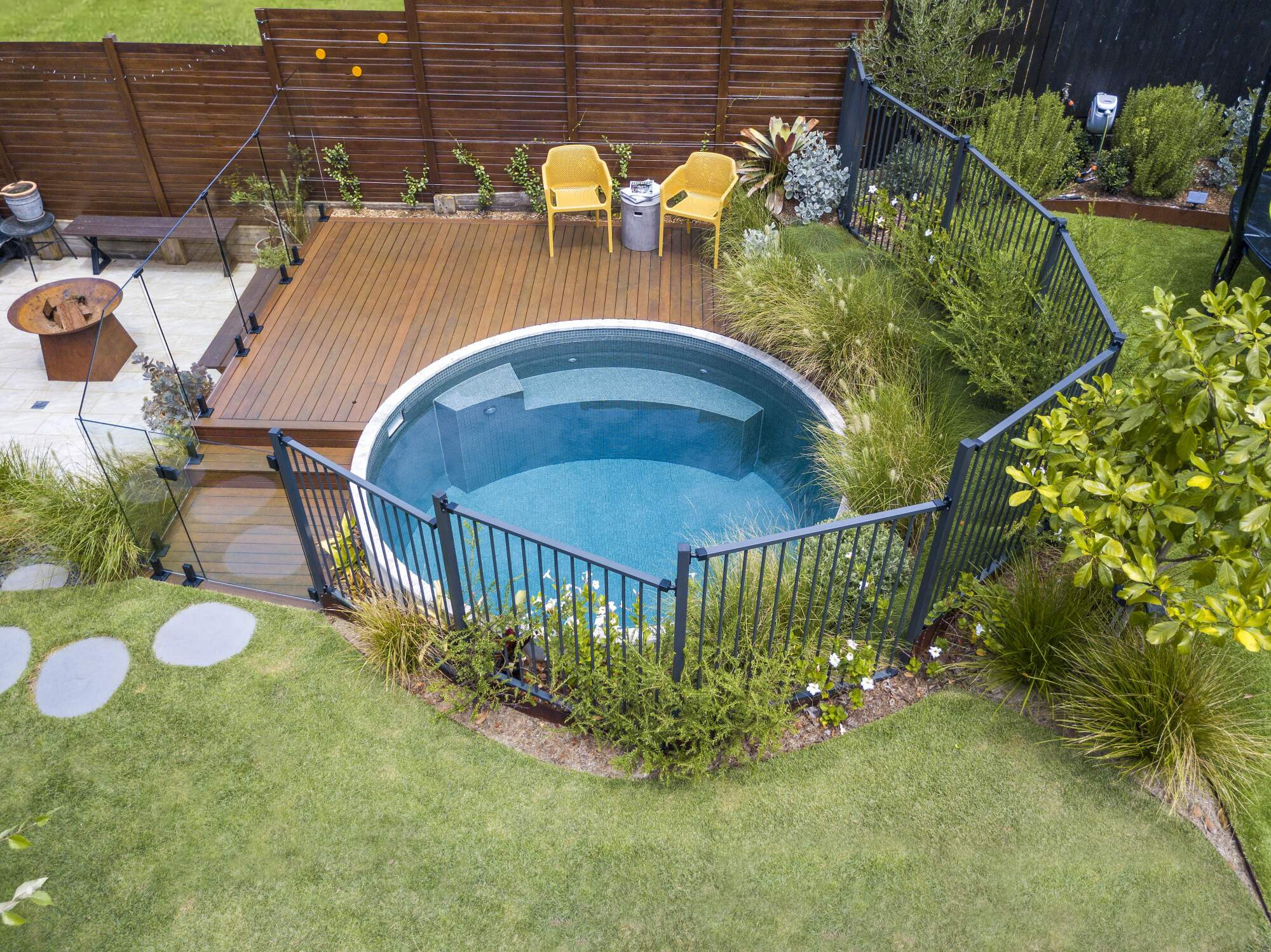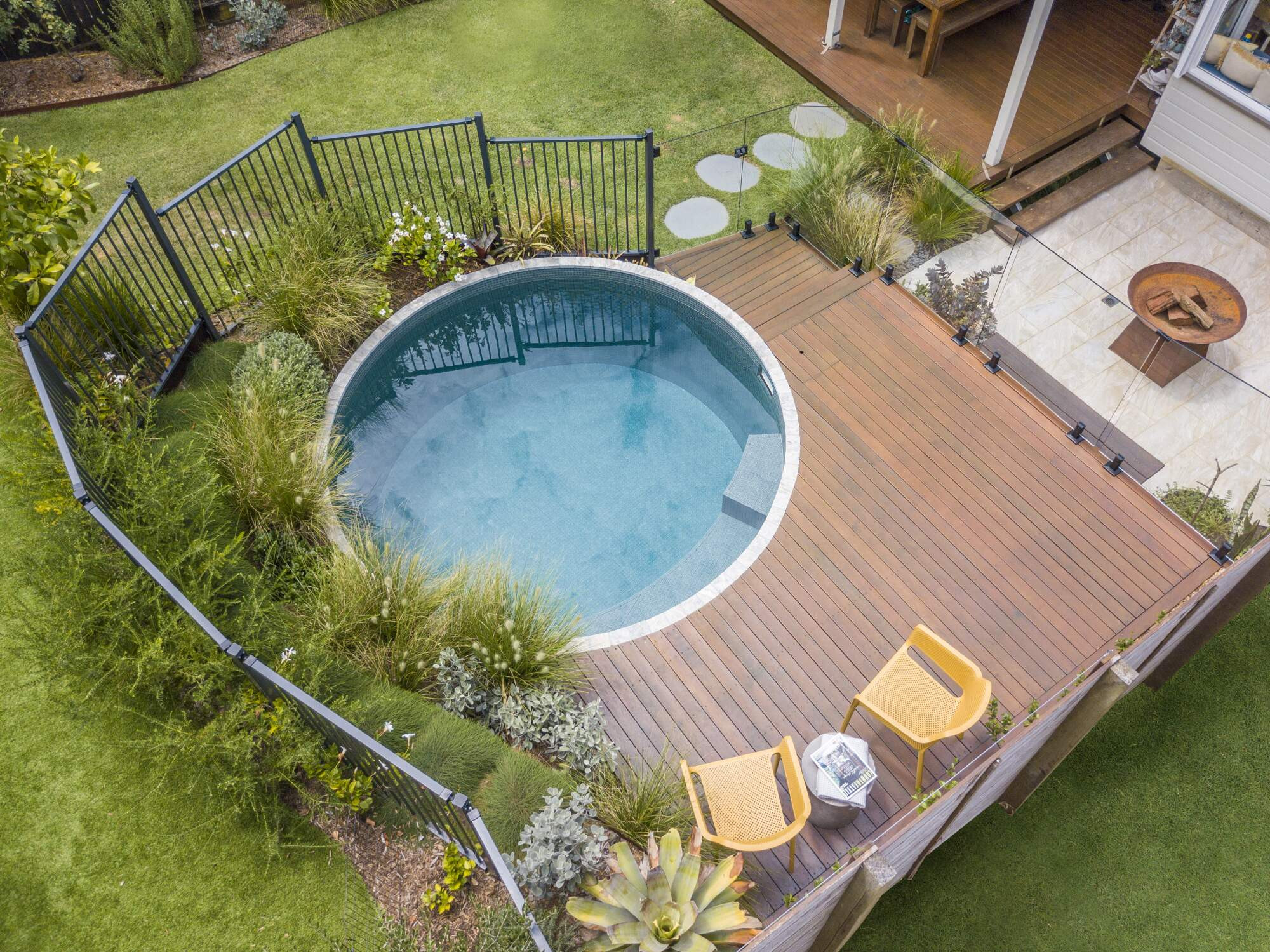 to make sure every piece of ground is covered in a kaleidoscope of hues and textures. This all leads to a stunning focal point, the captivating circular pool.