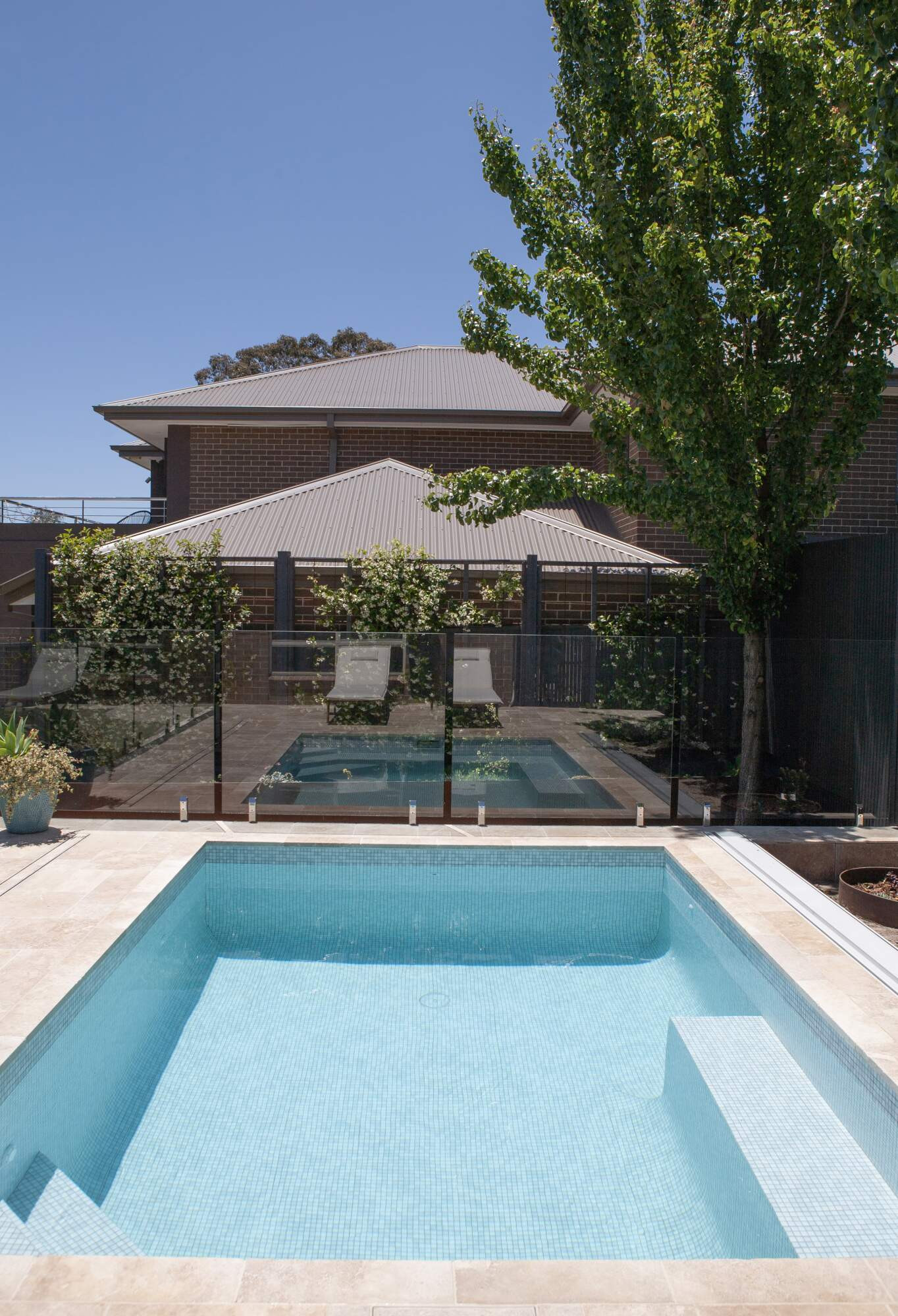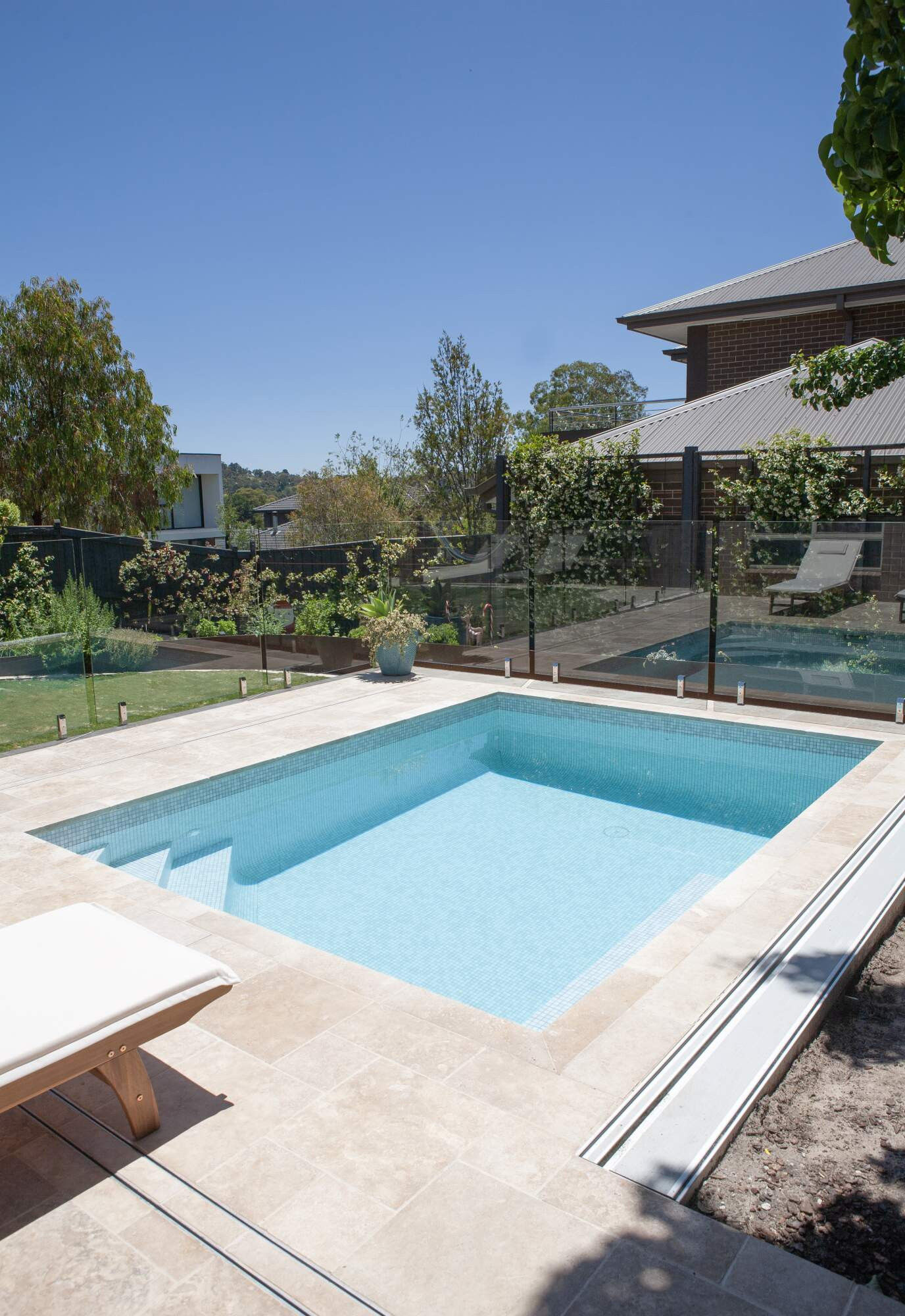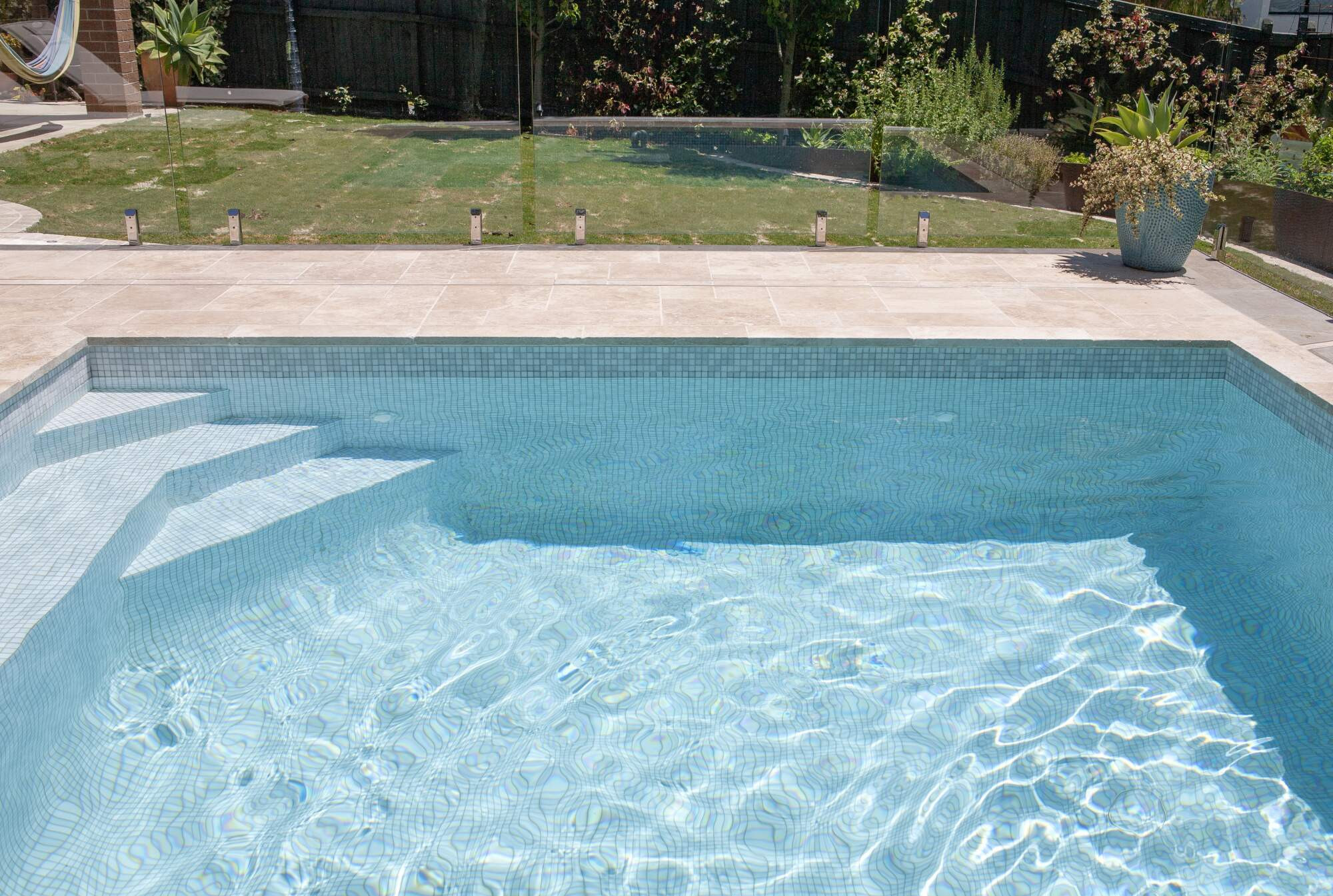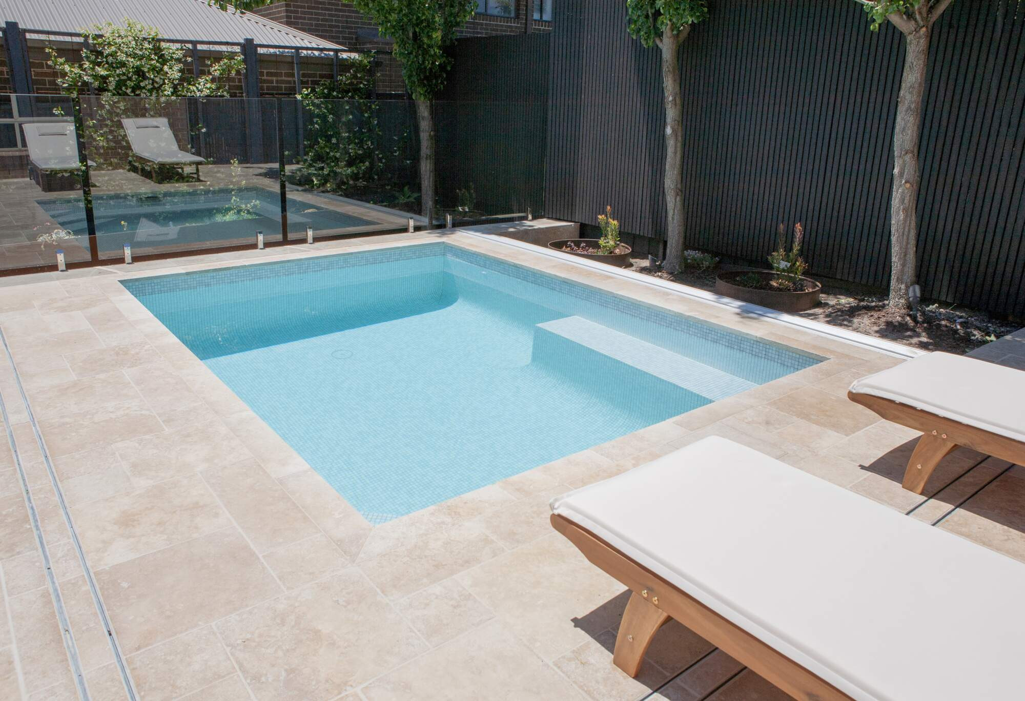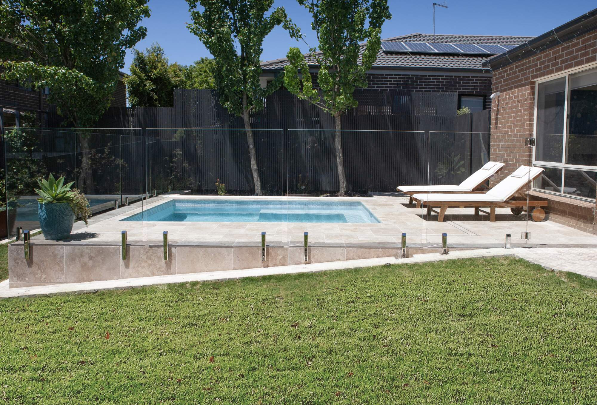 Suited to any size backyard, our fully customisable plunge pools are pre-fabricated by hand in Melbourne, Victoria. This stunning Argentine Hybrid takes advantage of this customisation, offering unique design elements, such as the corner bench seat and elevated out-of-ground design that sets this project apart and creates a one-of-a-kind space for the client to enjoy for years to come.