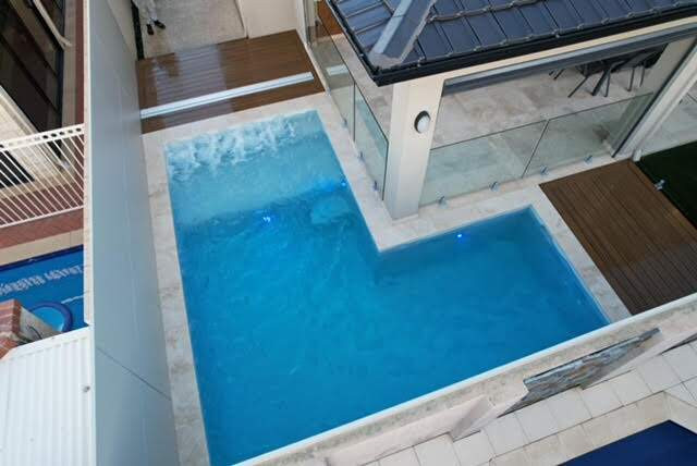 The pool pushes hard up against the existing alfresco and boundary walls which required significant carefully considered chemical grout injection. The footings holding up the alfresco were hand carved to flush with the injection to maximize the pools size. All pipework was required to be run through and under the shell to locate equipment on the other side of the house. The travertine header was matched perfectly with the existing travertine alfresco tiling even though the 'falls' on this pa