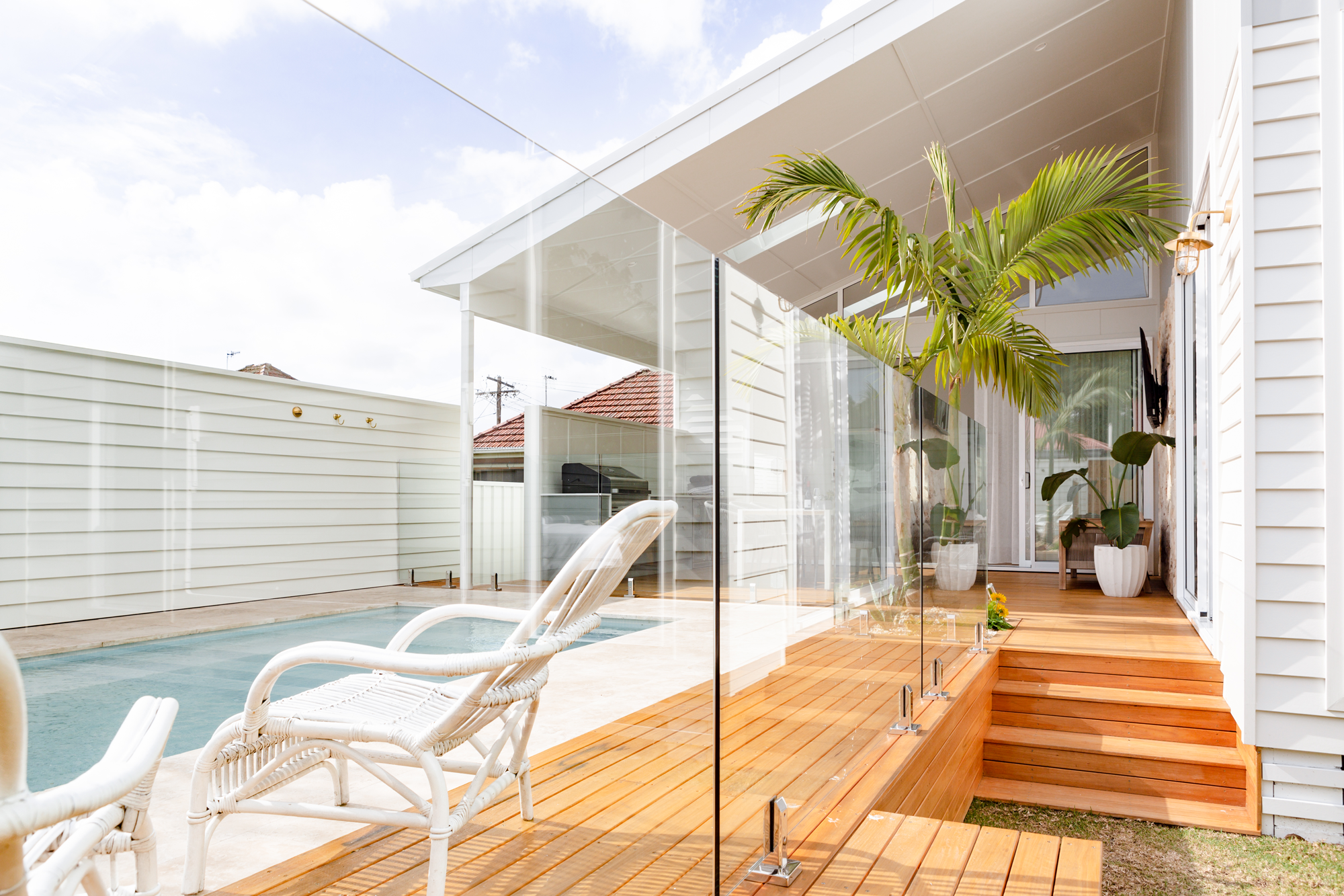 Imagine relaxing by this Hamptons style abode complete with chic style plunge pool! This spectacular plunge pool, tucked away in an award winning home, oozes easy entertainment and relaxation with its luxurious, low maintenance features. Decked out with premium finishes with serene stone tiles and stylish timber decking. Your gateway to a great lifestyle relaxing by the external fire pit and hosting unforgettable gatherings.