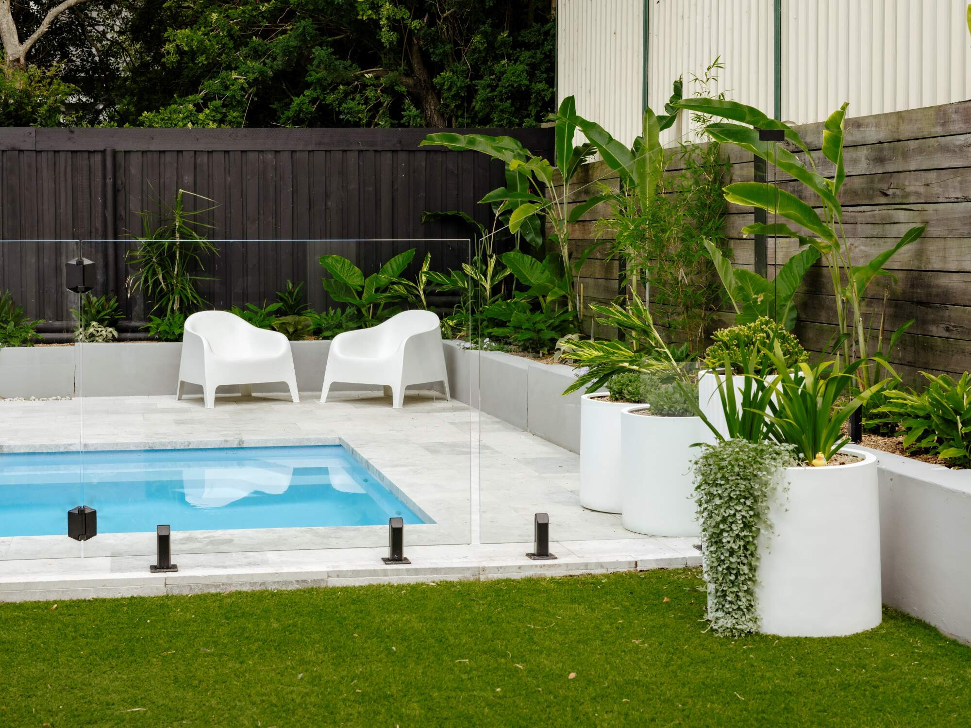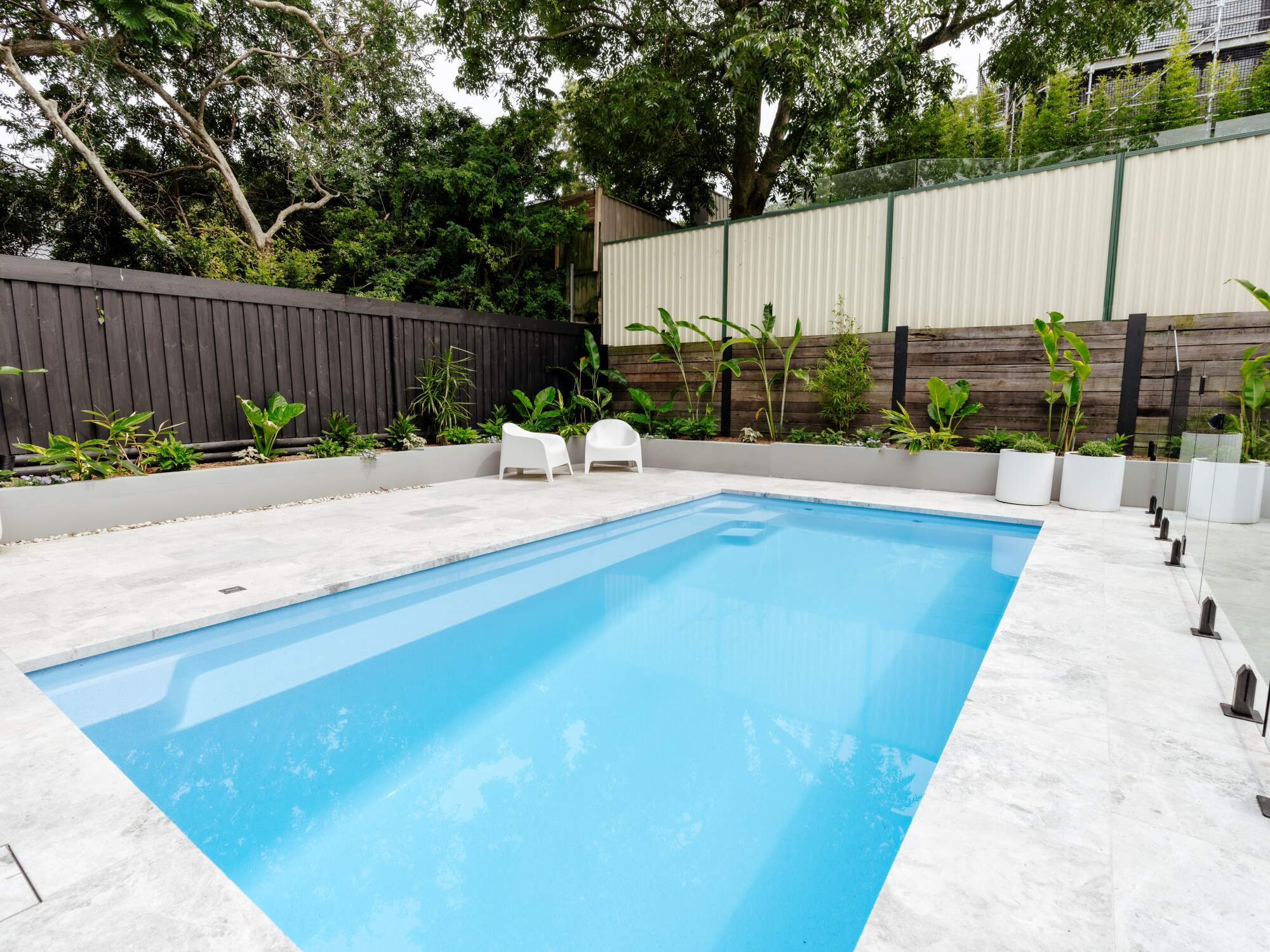 In Randwick, a mother sought to revamp her pool area to better suit her expanding family. Instead of a larger pool, she chose to embrace spacious surroundings. Aquify Pools installed a Positano pool (5.5m x 2.5m) in a Hampton's blue hue. Tropical trees bordered the yard, crafting an urban sanctuary. The design ingeniously incorporated vast spaces around the pool, fostering an ambiance of grandeur and openness. With meticulous attention to pool colors, materials, and layout, coupled with ample en