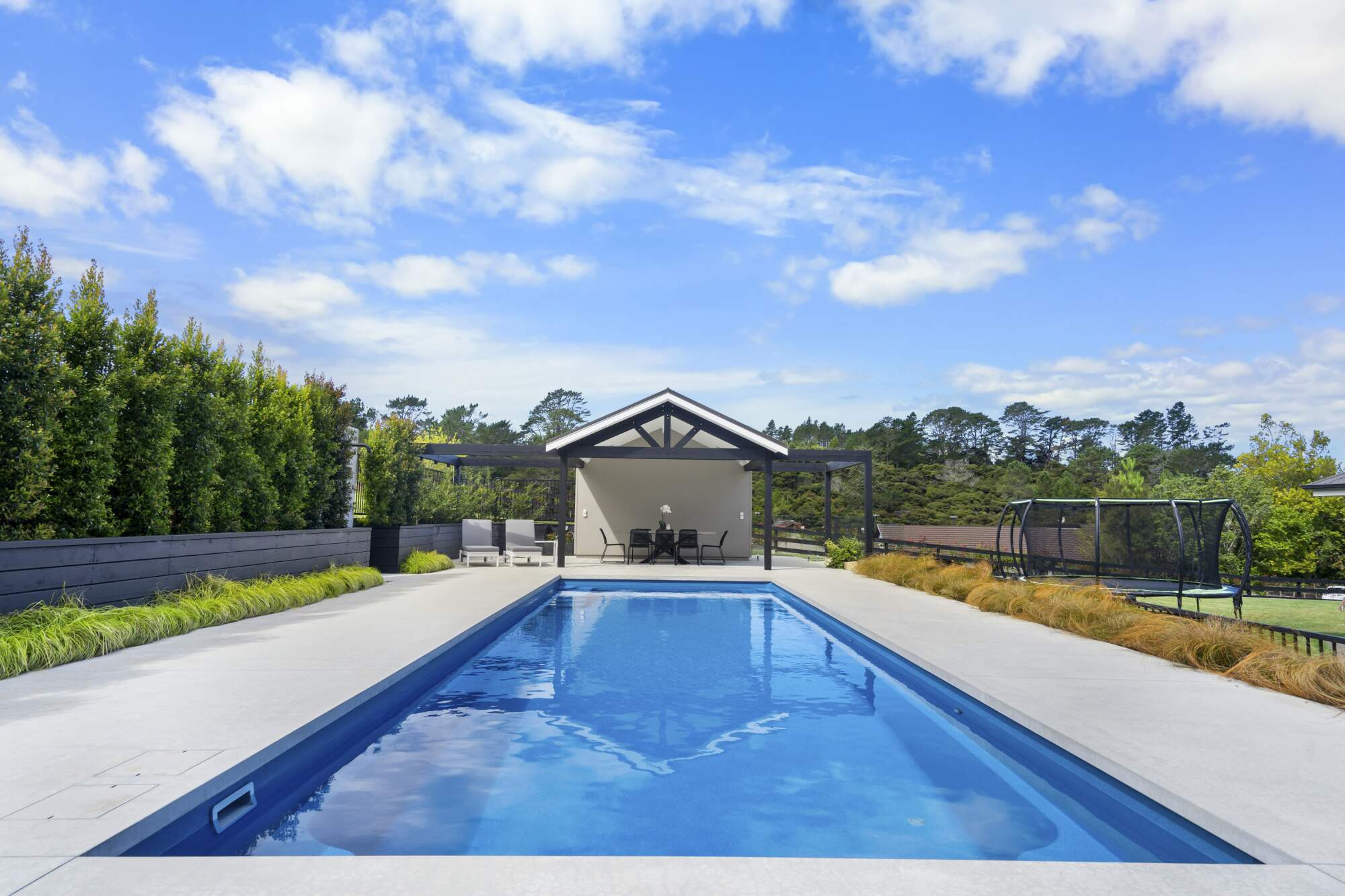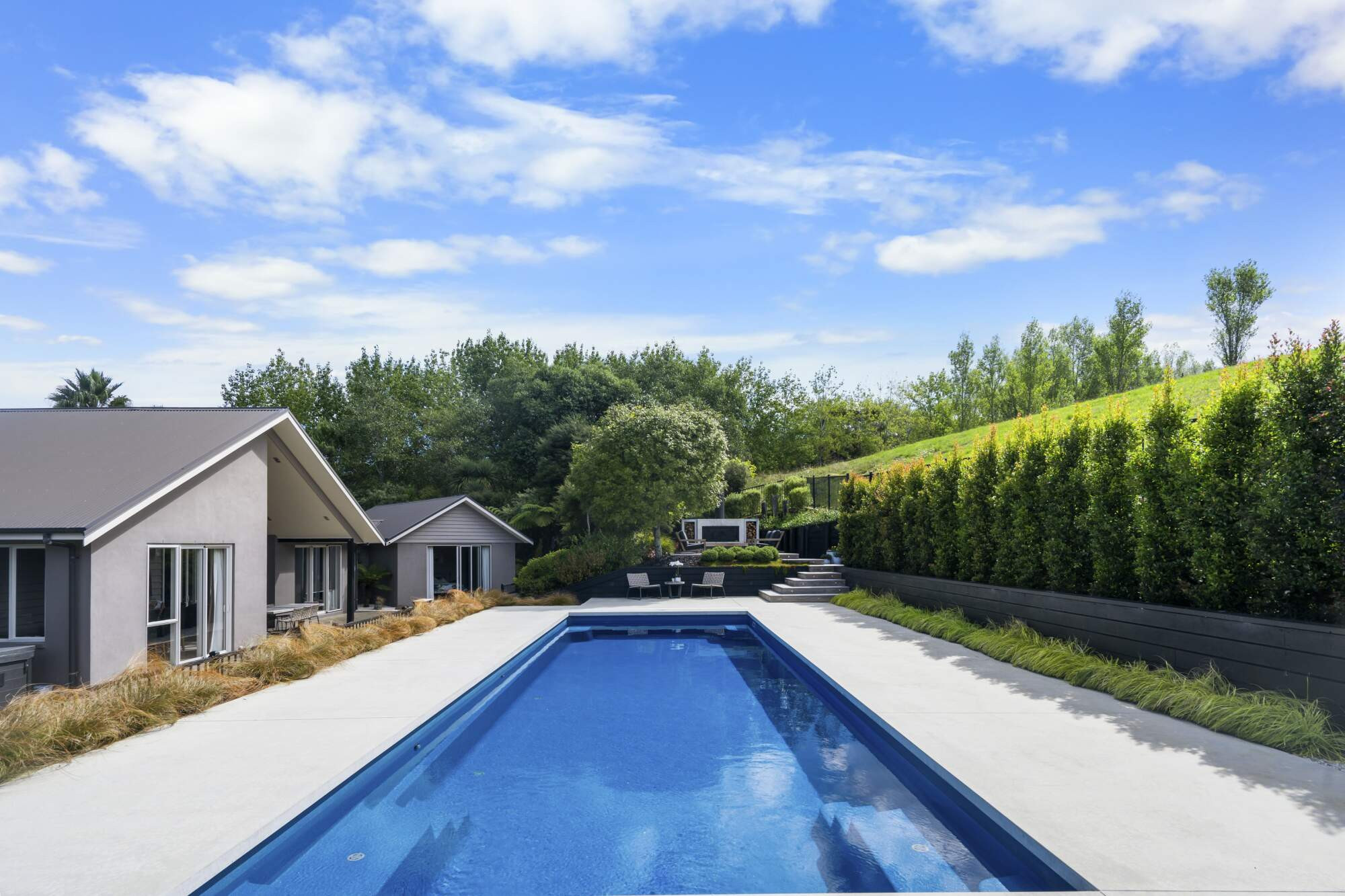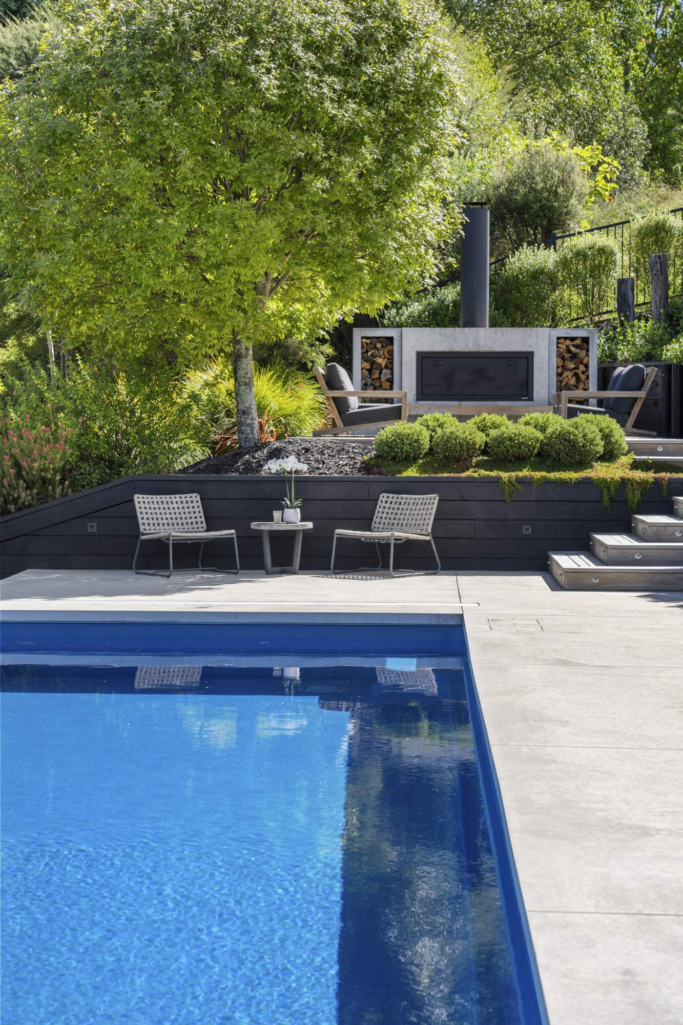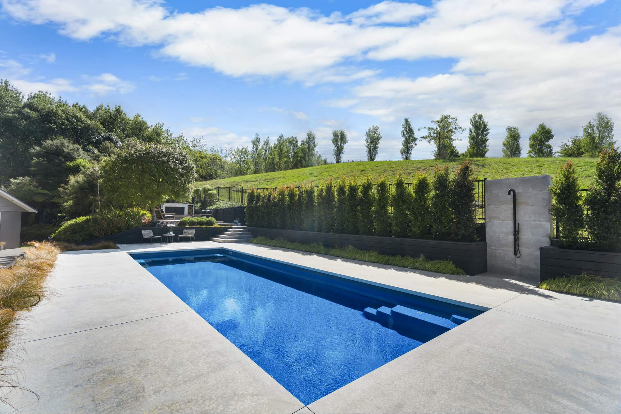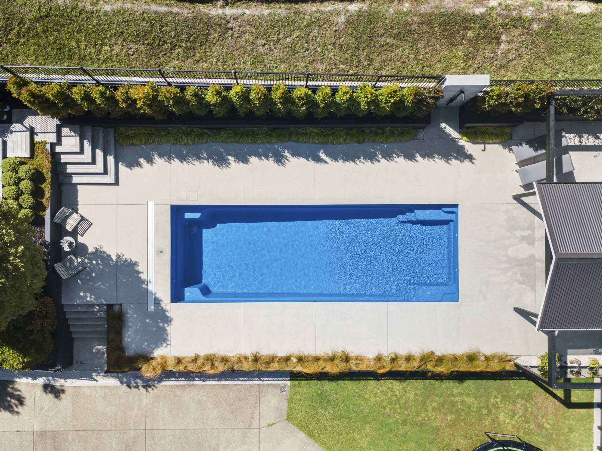 This bespoke, Climate Care Certified swimming pool utilises maxi-rib technology to create a design of excellence, built for fitness and leisure - including holding swimming lessons! Complemented by a stunning combination of landscape features, this pool in the colour 'Pacific' creates a new dimension for recreation despite the challenges of a sloping site. The 11.8m X-Trainer built by Ultimate Pools is a flawless example of a composite swimming pool installation.