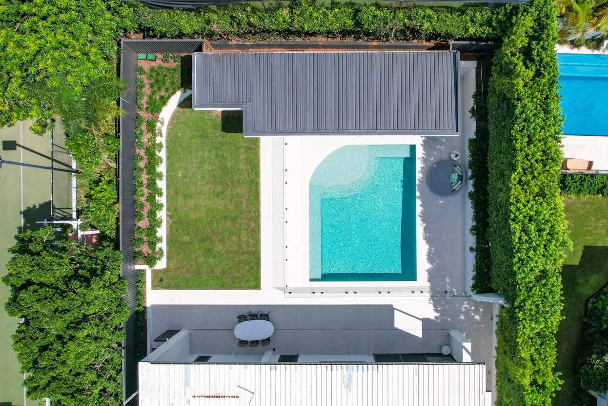 This custom design adds luxury and style to this gorgeous space. The pools greatest feature is the eye capturing Sukabumi Ceramic Mosaic which fully lines the interior. Gentle curves of the circular steps, clean lines and glass fencing permits a clear view from the custom built pool house to the pool. An inviting and lavish entertaining area for the clients to enjoy.