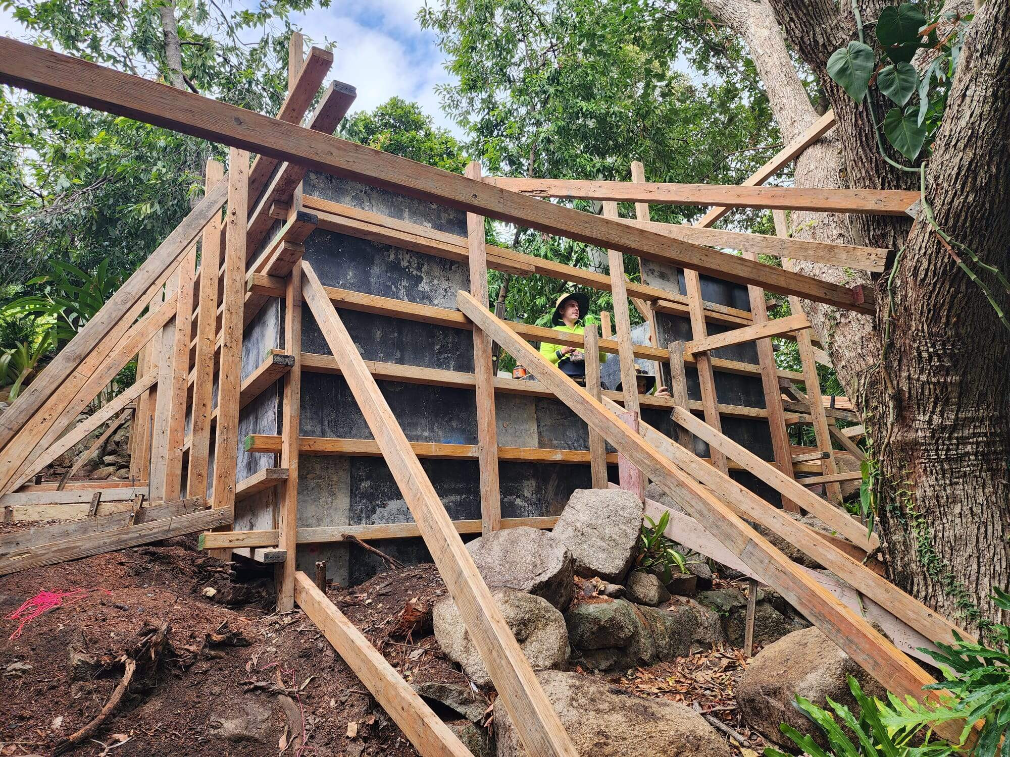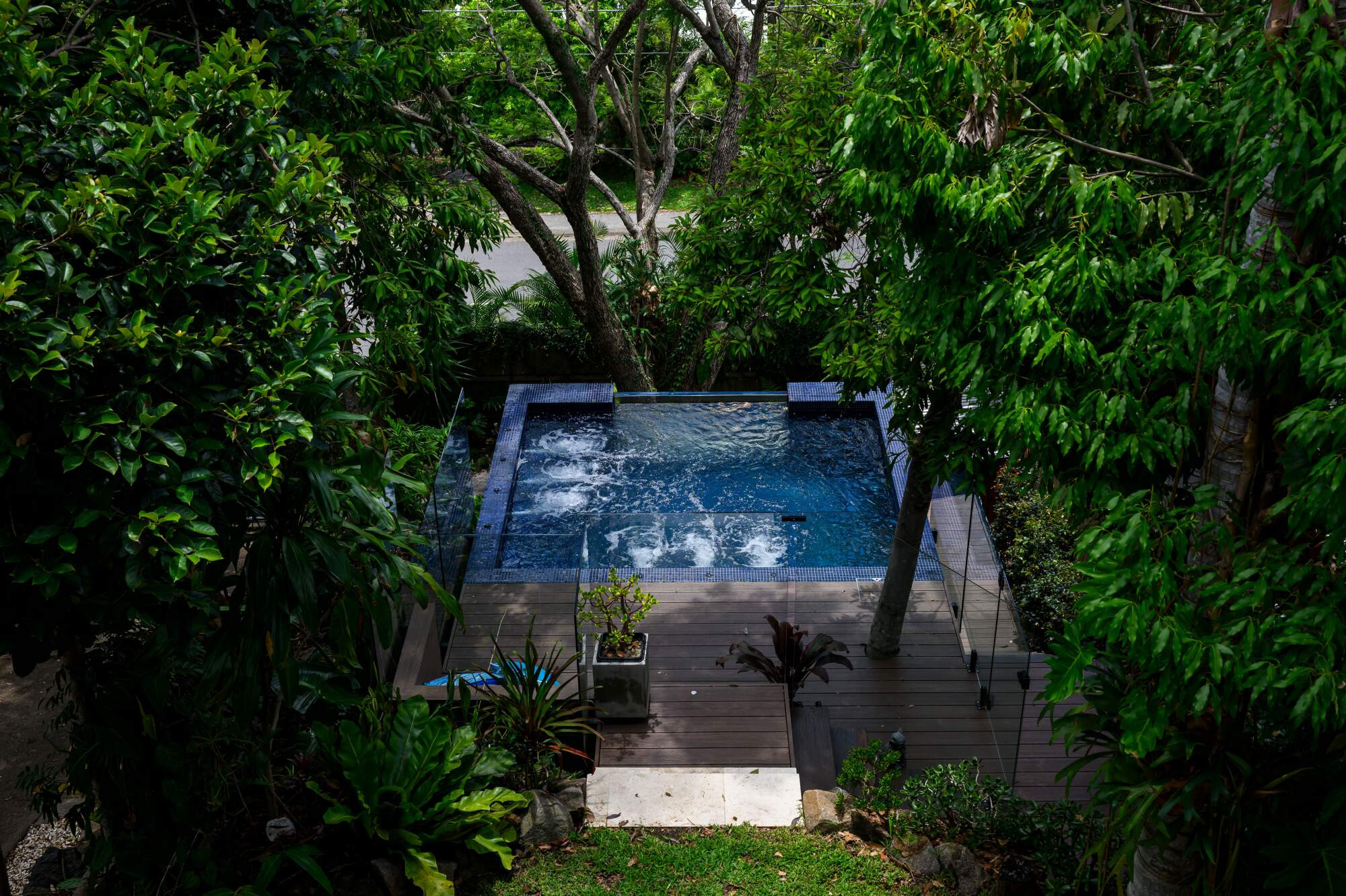 This pool not only compliments its surrounds to a tee, it also comes with all the bells and whistles; a pool window, fully tiled interior, in-floor circulation system, freshwater, spa features, off-form timber look exposed walls... just to name a few.