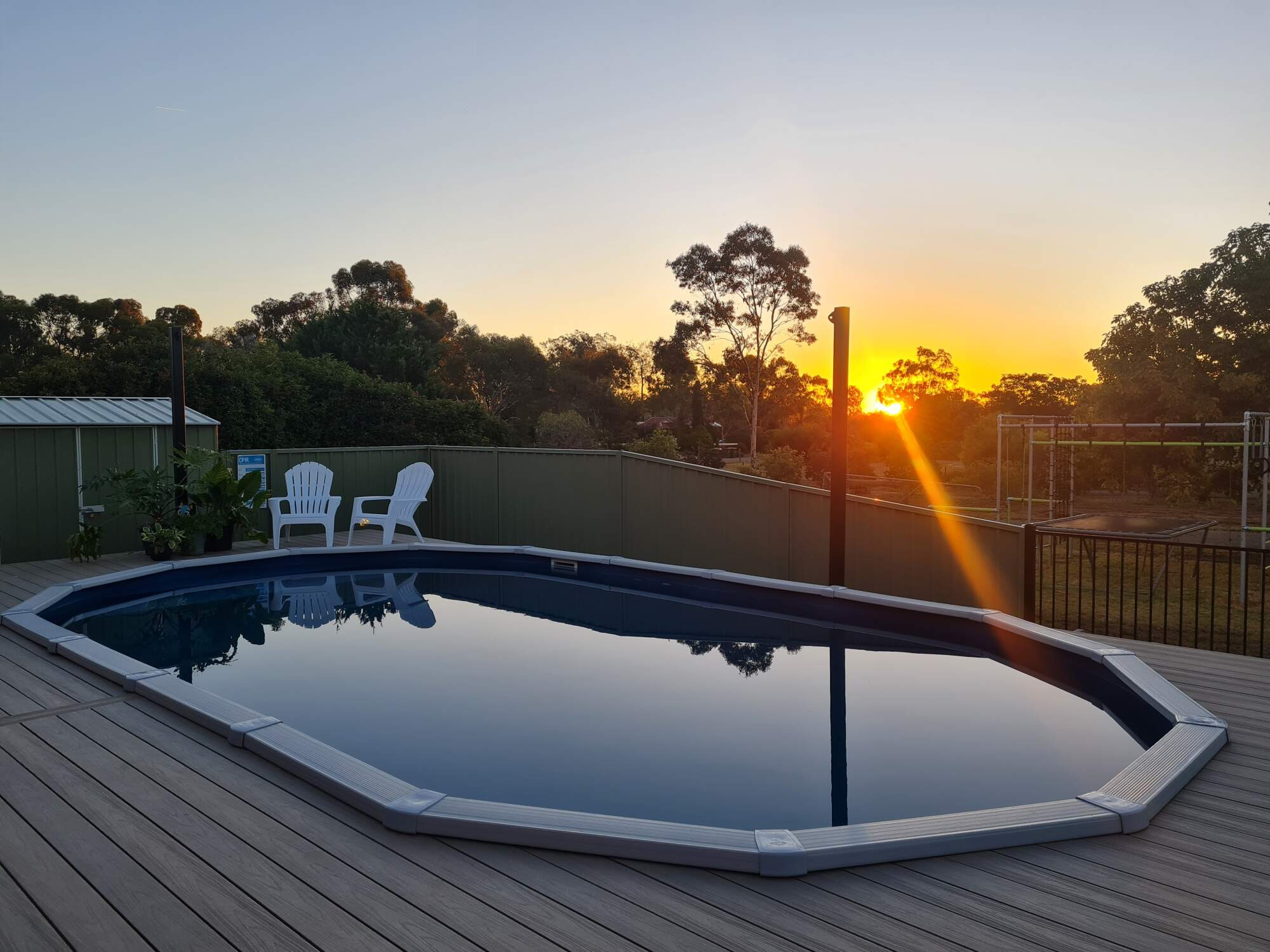 Long summer days turn into sizzling sunsets over the top of this stunning backyard centre piece. Our Palm Cove model resin modular pool making another family very happy and now looking forward to providing years of fun and laughter ahead. Memory making material right there, priceless.