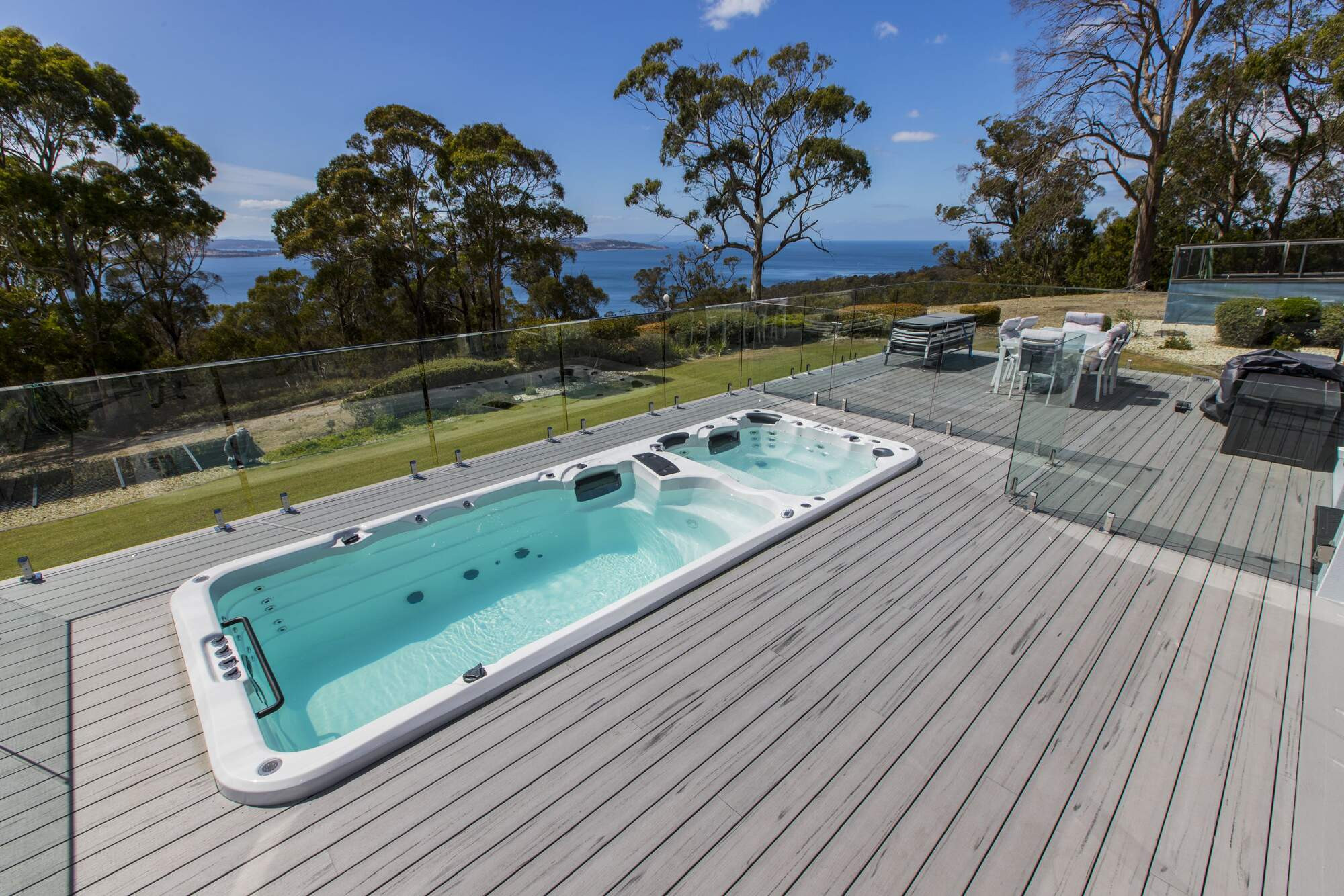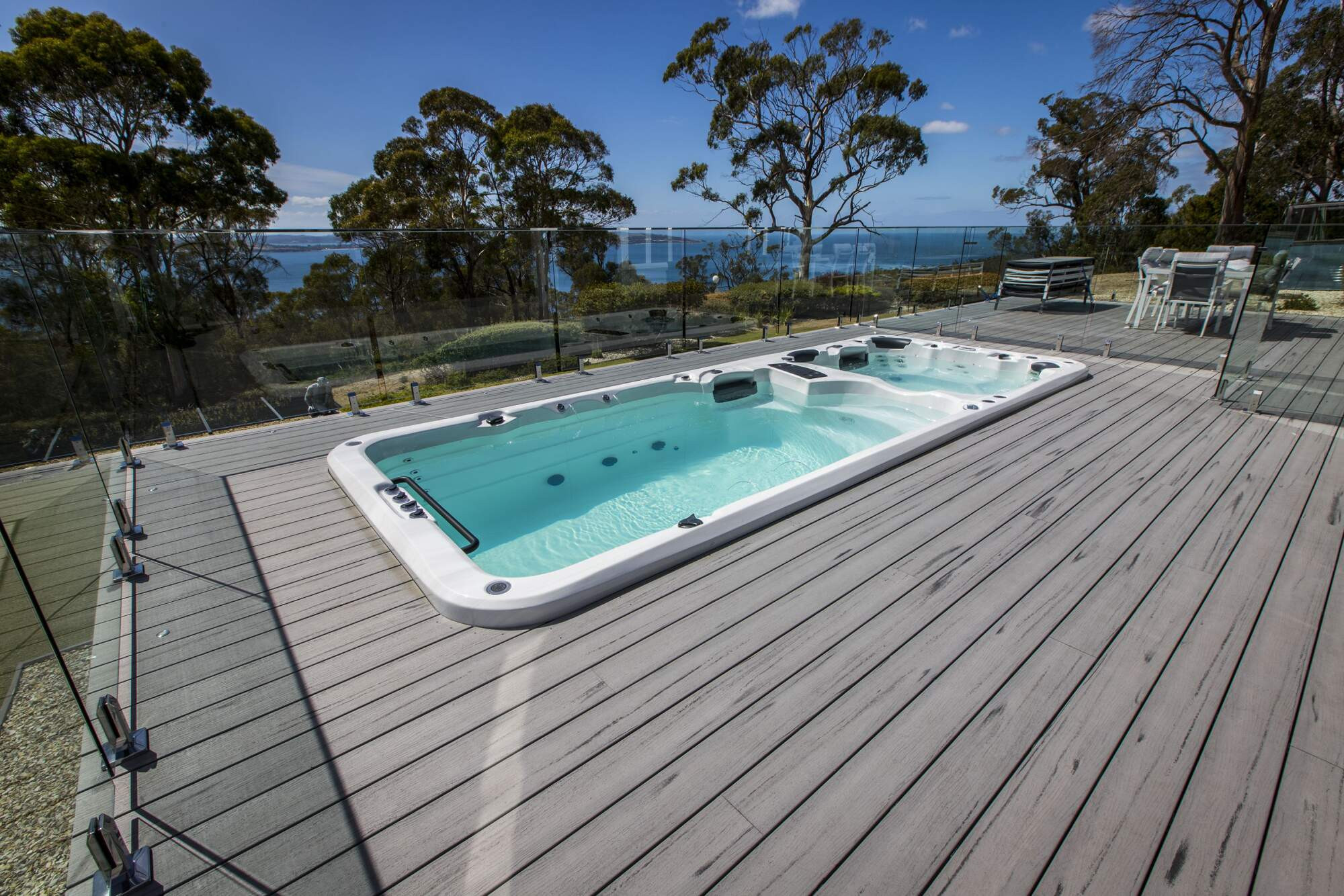 These customers wanted the wow factor when installing their Hydrozone swim spa! With a stunning view of the coastline the swim spa was perfectly positioned to utilise the long deck and sea views, with the dream of using the space year round for exercise, relaxing and family fun!