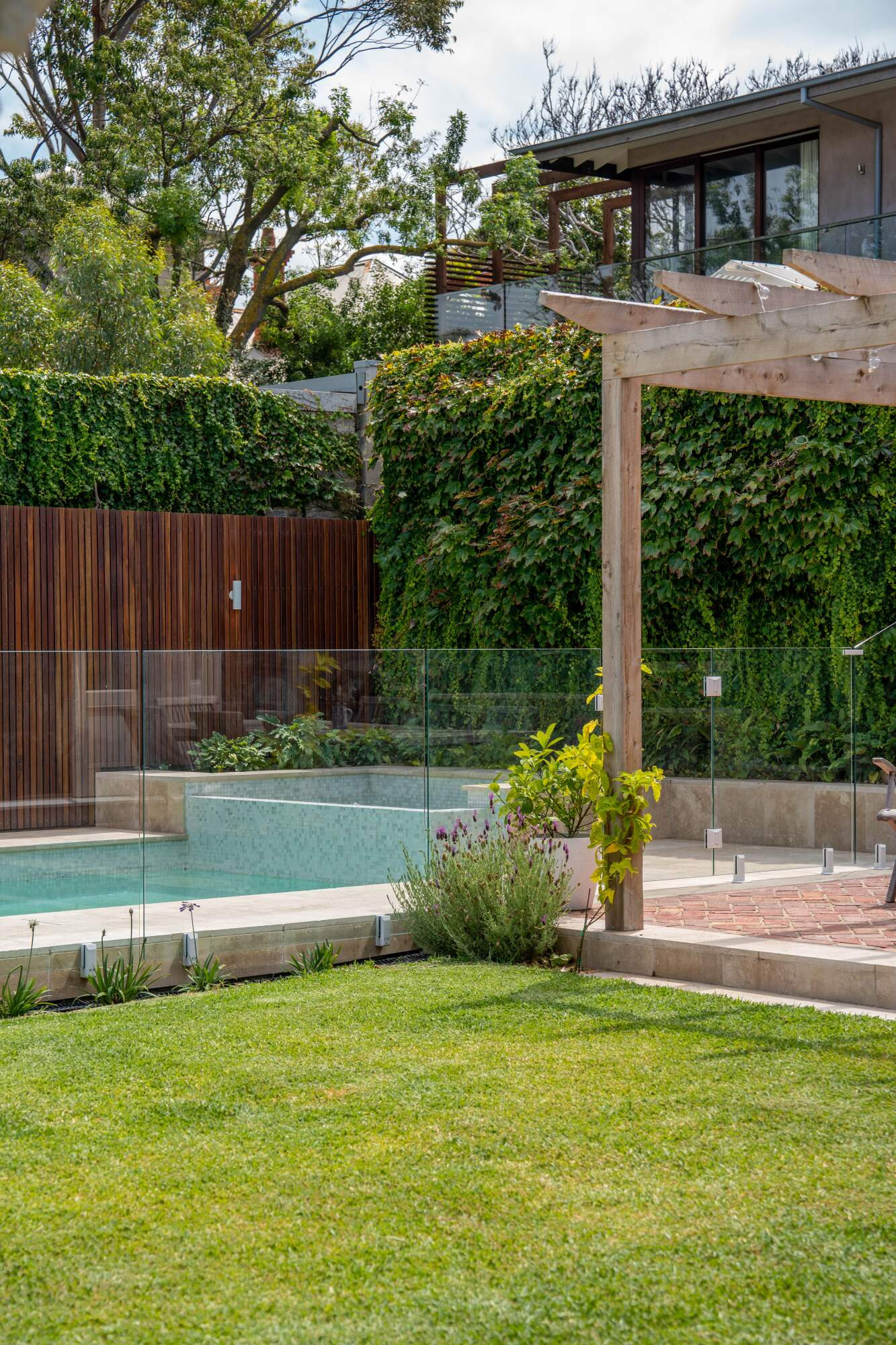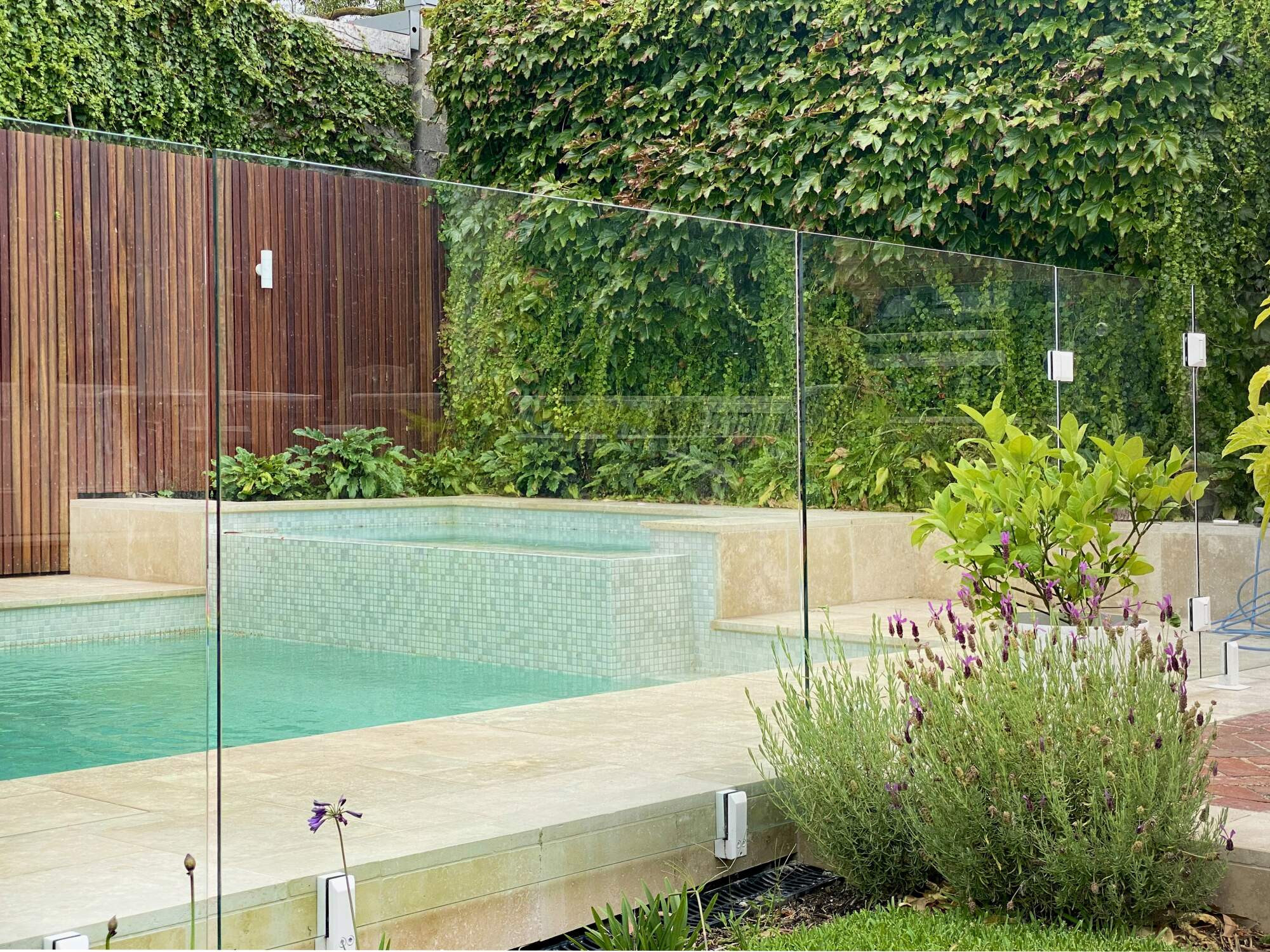 Our team relished the opportunity to create a stunning frameless glass safety barrier that met our client's vision and delivered a functional and aesthetically enhanced safety feature for their family. Working with an interesting site comprised of layered materiality and terrain, we employed a unique design methodology, creating a fence that adheres to all relevant safety standards and seamlessly integrates with the pool and surrounding garden landscape.