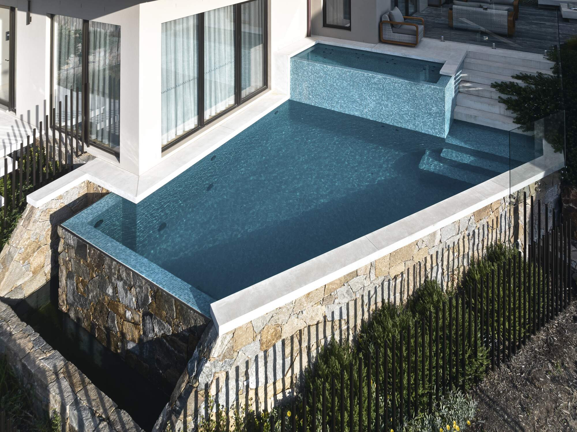 From the original idea of a simple pool and spa in the backyard to a feature piece in the clients front yard to capture the stunning veiws of the Mornington Peninsula, a custom designed spa based on the clients exact body to create a perfect fit for comfort as well as utlising the space to provide the client with the best design for thier property.