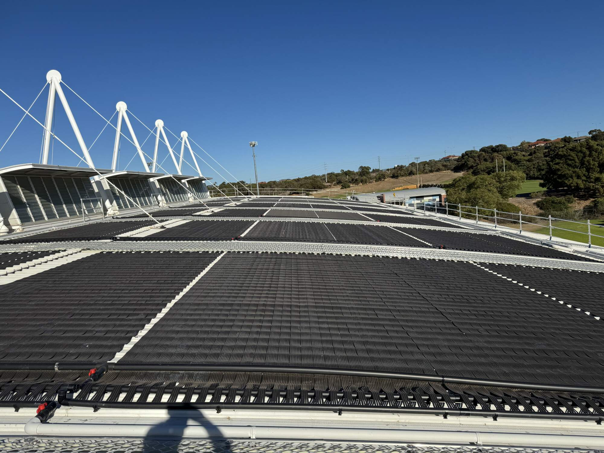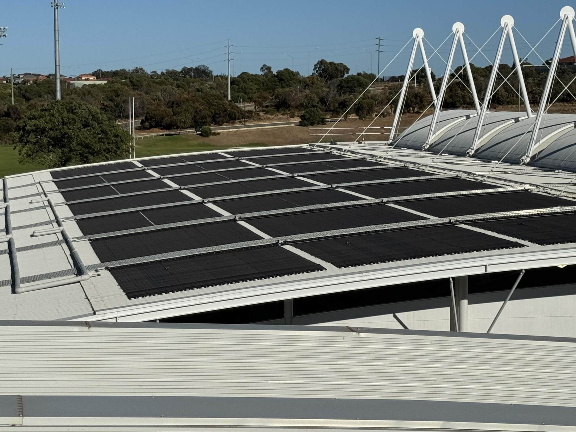 HBF Arena is fully equip with 1800sqm of solar collector to keep warm the Learn To Swim pool & main pool. We installed a combined 2000m2 of SUNTRAP commercial solar pool heating system to heat the 50mtr pool and the Leisure Pool. Our SUNTRAP pool heating is designed and made here locally in Perth. It is elliptic in design and allows up to 30% greater solar absorption per m2 than competing systems due to its increased surface area exposure to direct solar.