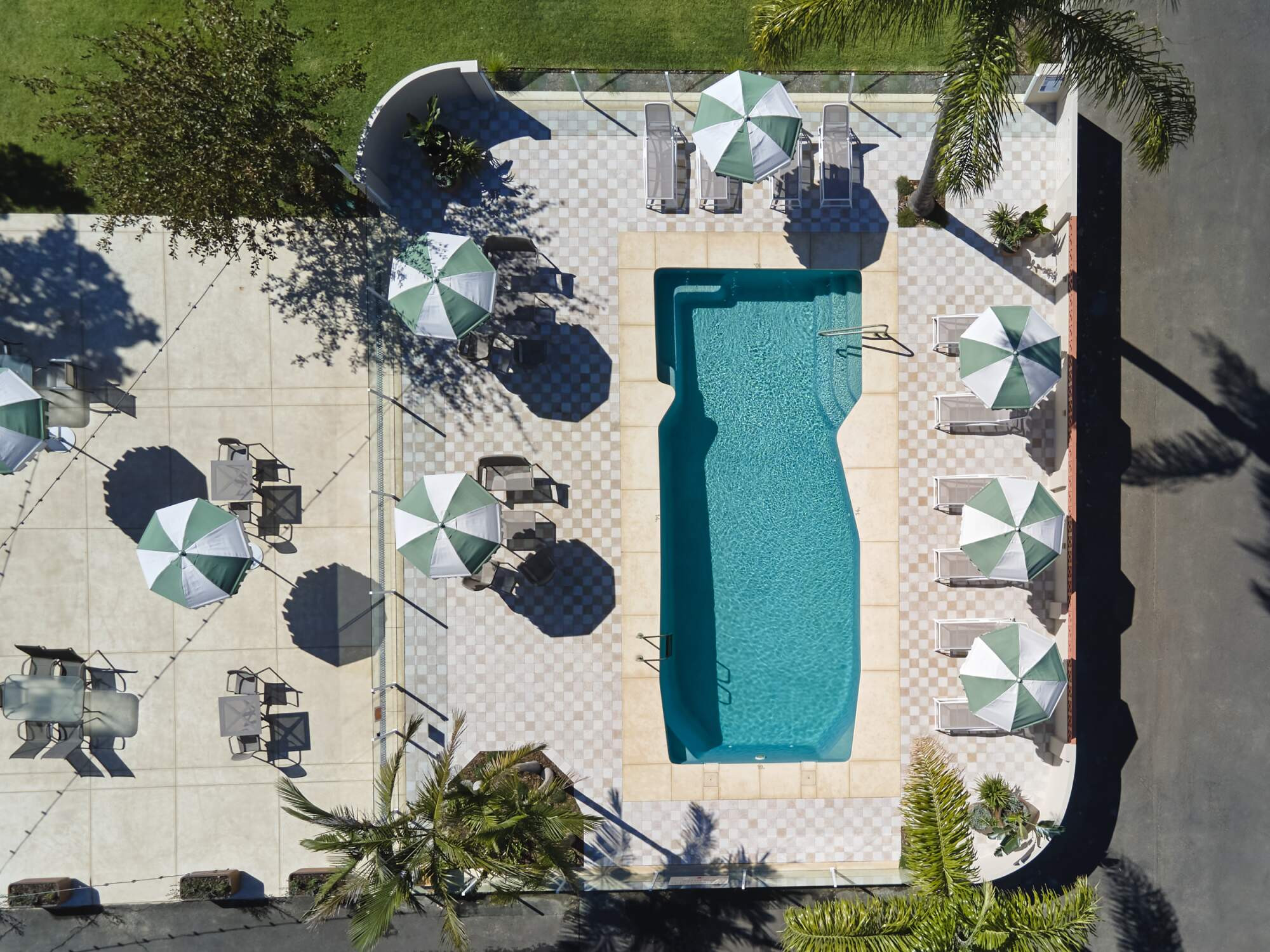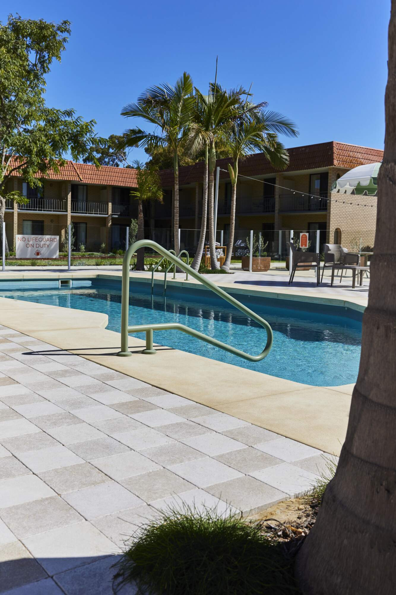 Bringing sexy back might be the song but bringing retro back was the aim for this resorts pool landscaping makeover. From drab to fab this place looks the goods after a total makeover with a retro theme as the goal.