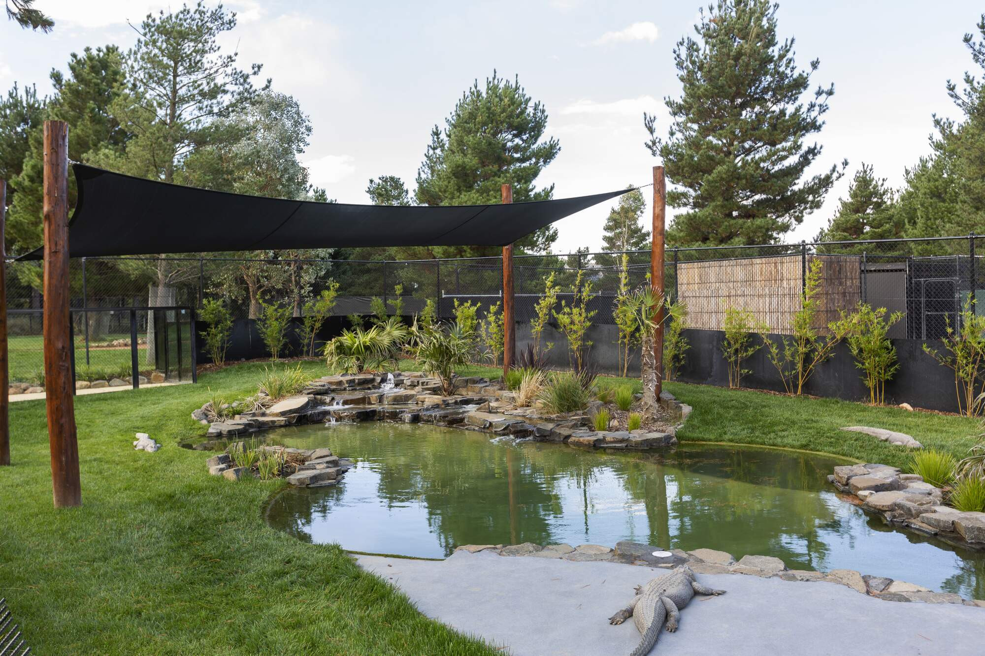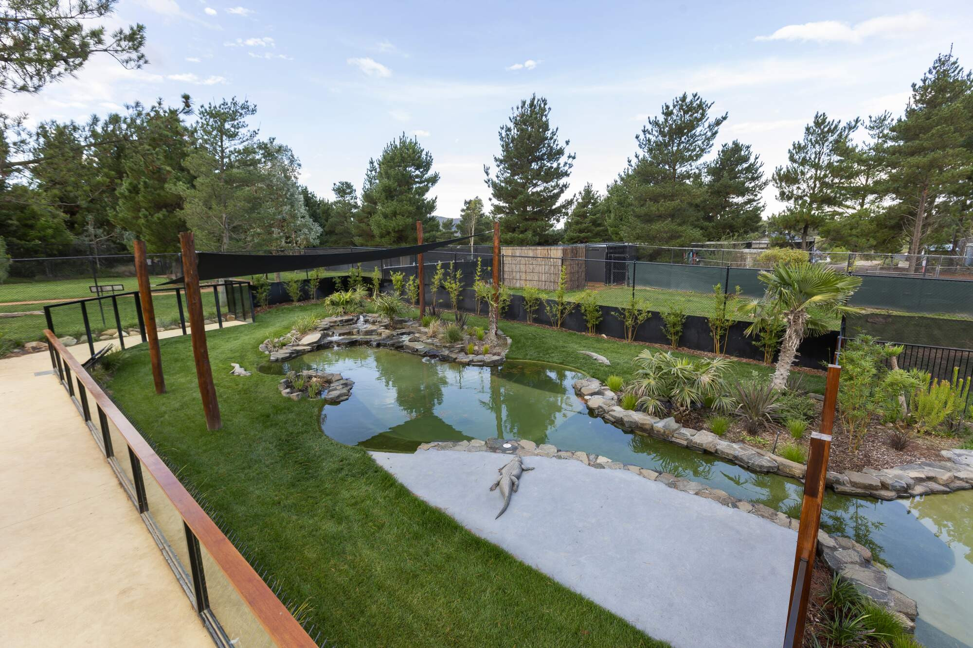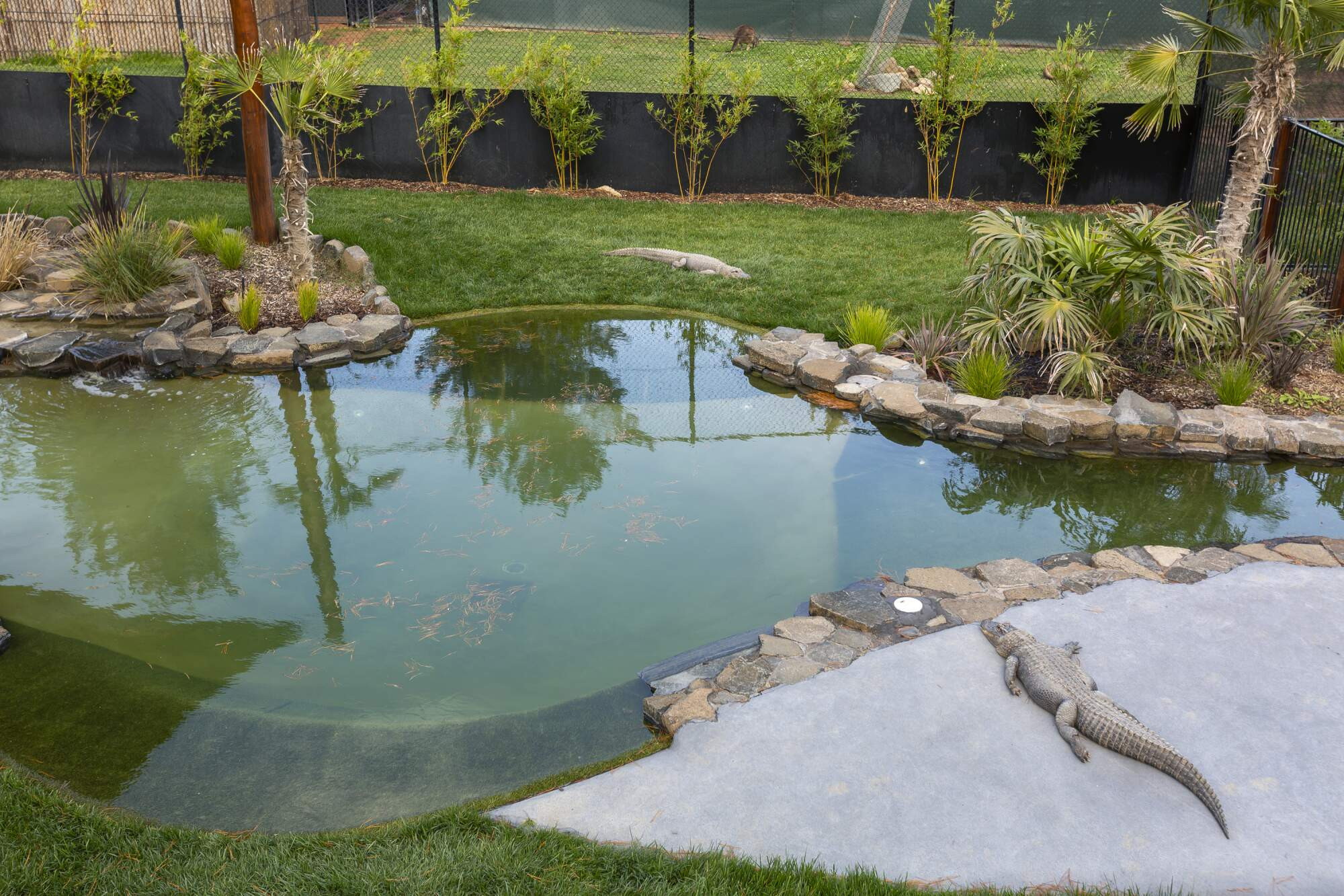 The new home for the alligators is a resounding success. The state of the art enclosure with pond (and holding tank) is as close to their natural environment as being in the wild.