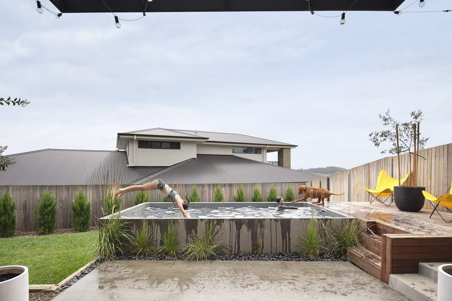 This industrial concrete plunge pool is the ultimate statement piece for any architect's house. Combining functionality with aesthetic appeal, this pool exudes a rugged, industrial charm that will leave a lasting impression. With its clean lines and minimalist design, it perfectly complements any contemporary architectural style, creating a truly unique outdoor living space.