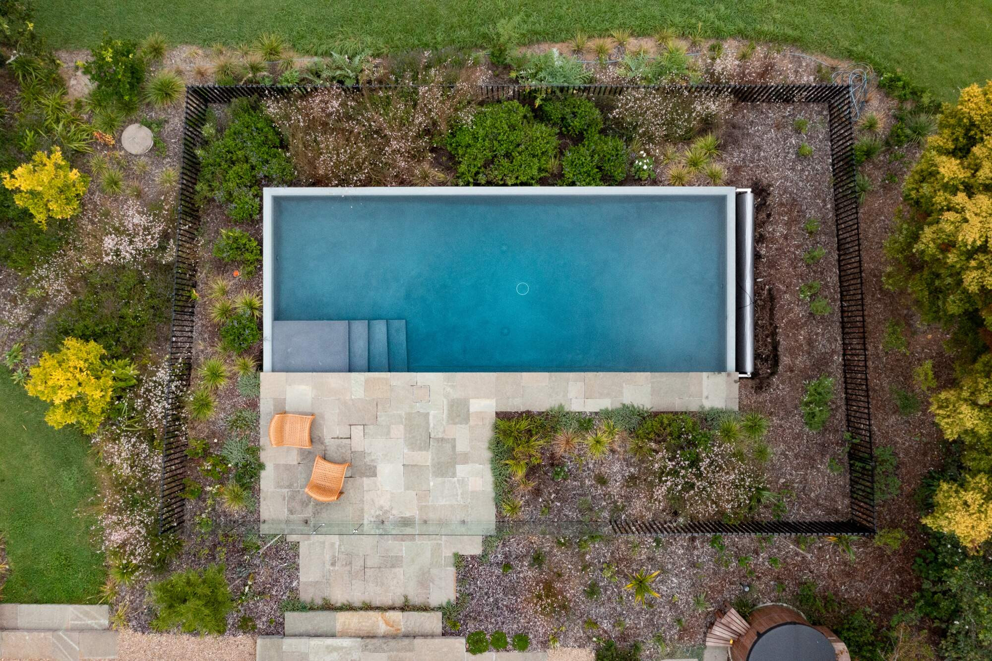 The pool design responds to this environment in a sympathetic manner with the entire pool area being nestled into the land, unobtrusive and completely private.