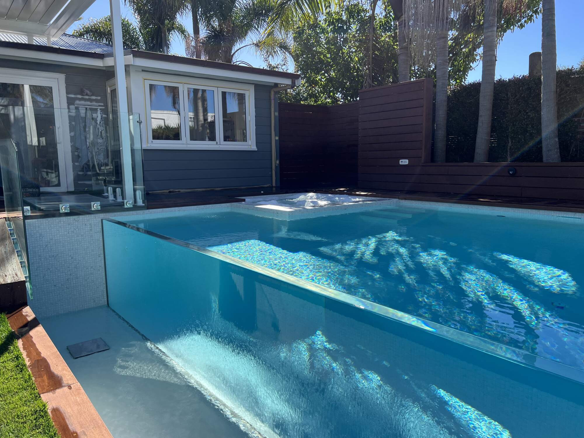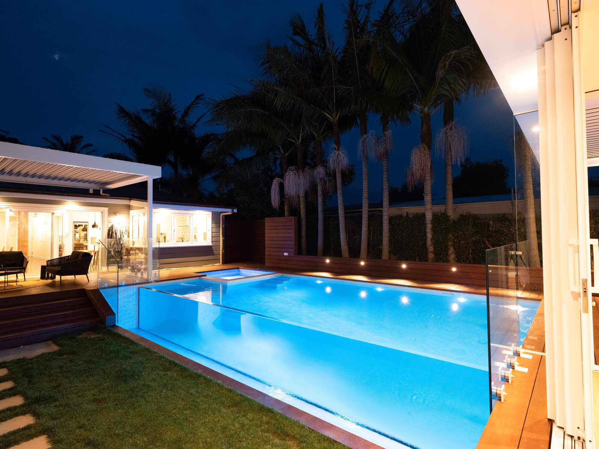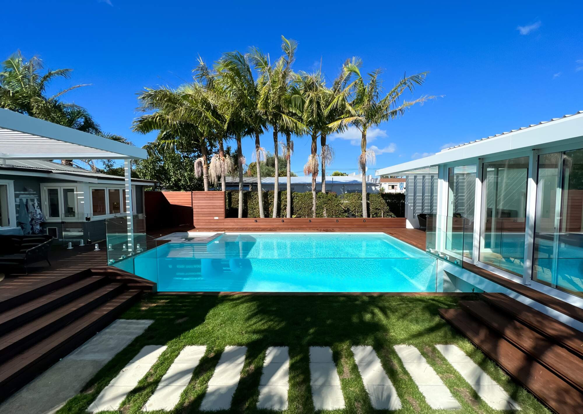 This impressive designer infinity pool and spa light up this property which is nestled between a newly renovated beach home and brand new pool house. The feature of the property is the 9m long acrylic infinity window standing 1.2m tall. Water gently cascades down the face of the window giving off a stunning ambient feel and at night time the light glistens through the window and dances on the ezarri tiles.
