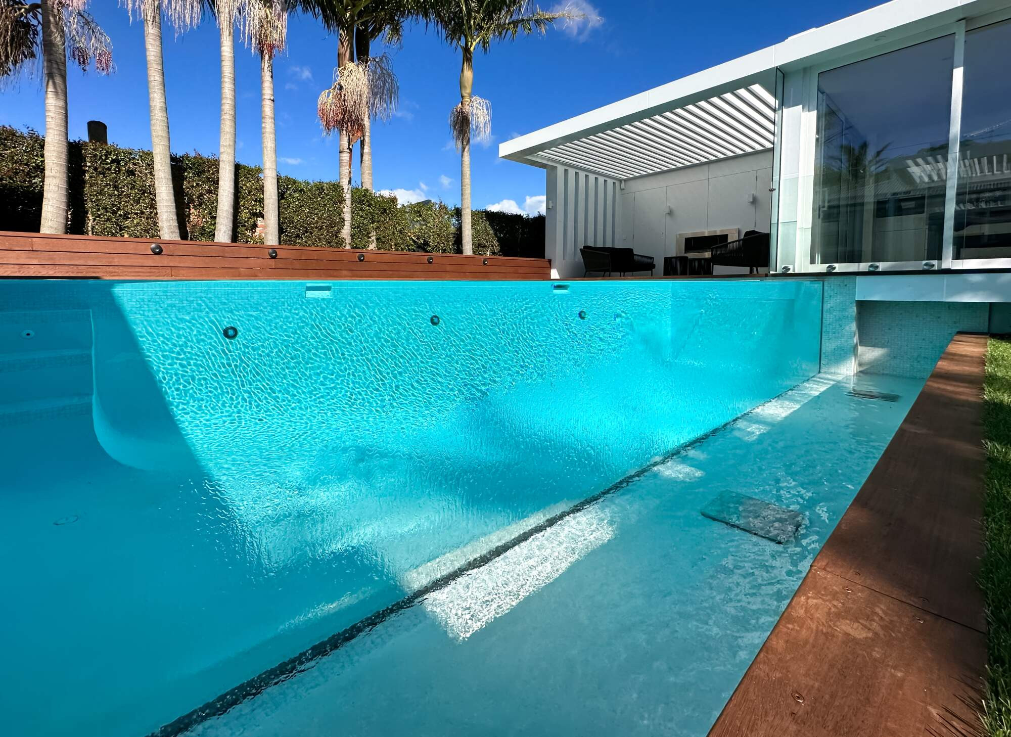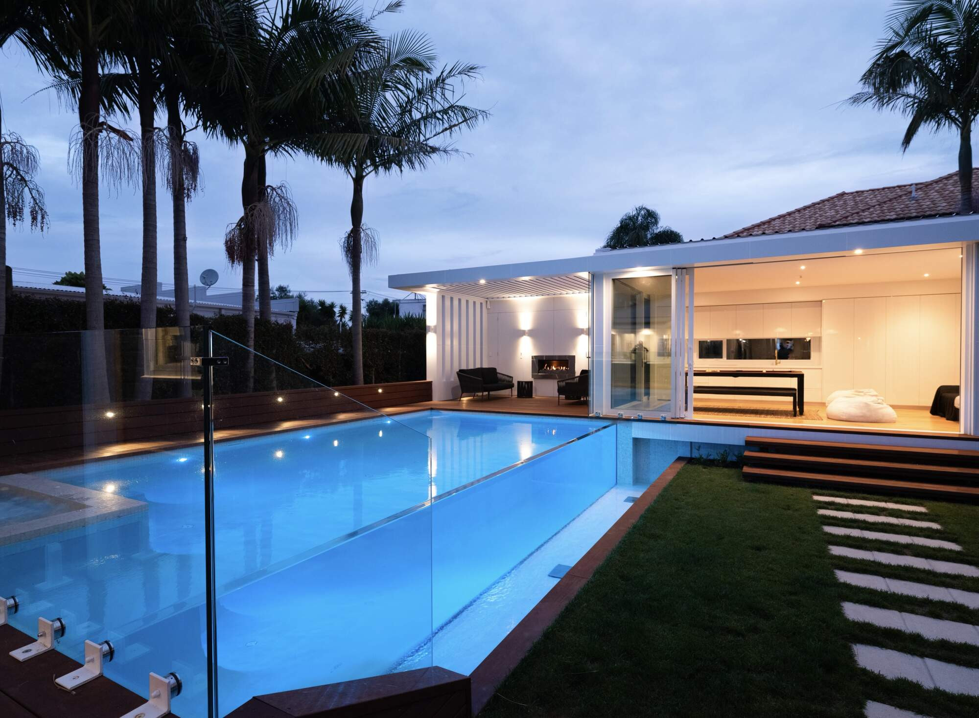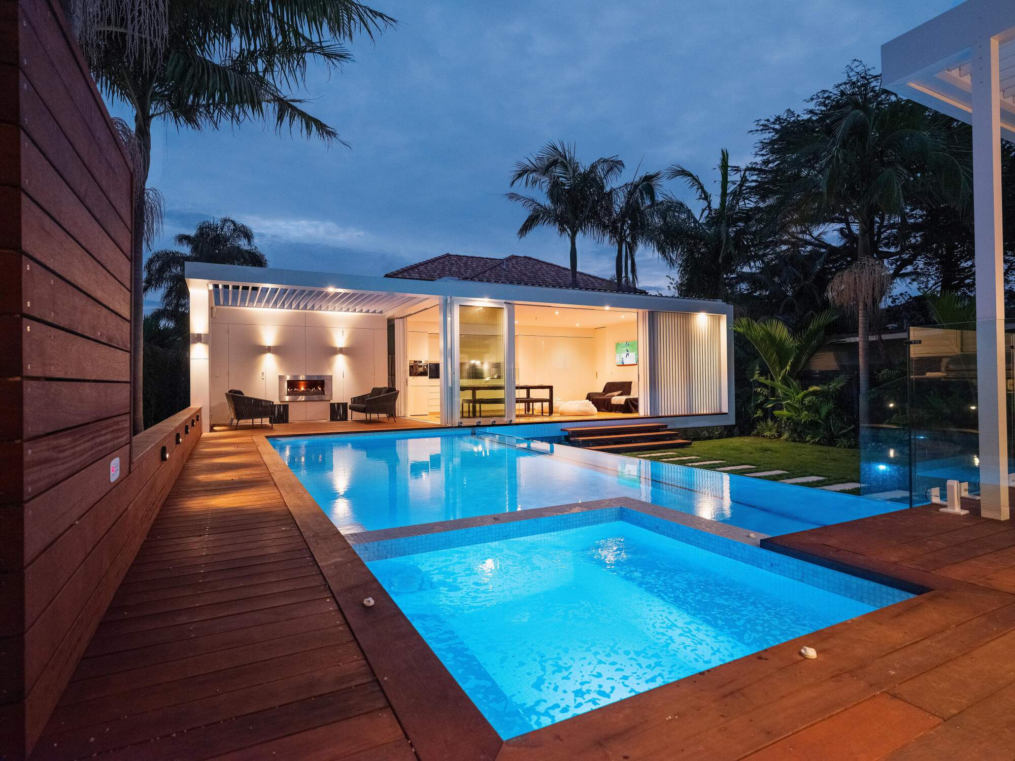 This impressive designer infinity pool and spa light up this property which is nestled between a newly renovated beach home and brand new pool house. The feature of the property is the 9m long acrylic infinity window standing 1.2m tall. Water gently cascades down the face of the window giving off a stunning ambient feel and at night time the light glistens through the window and dances on the ezarri tiles.