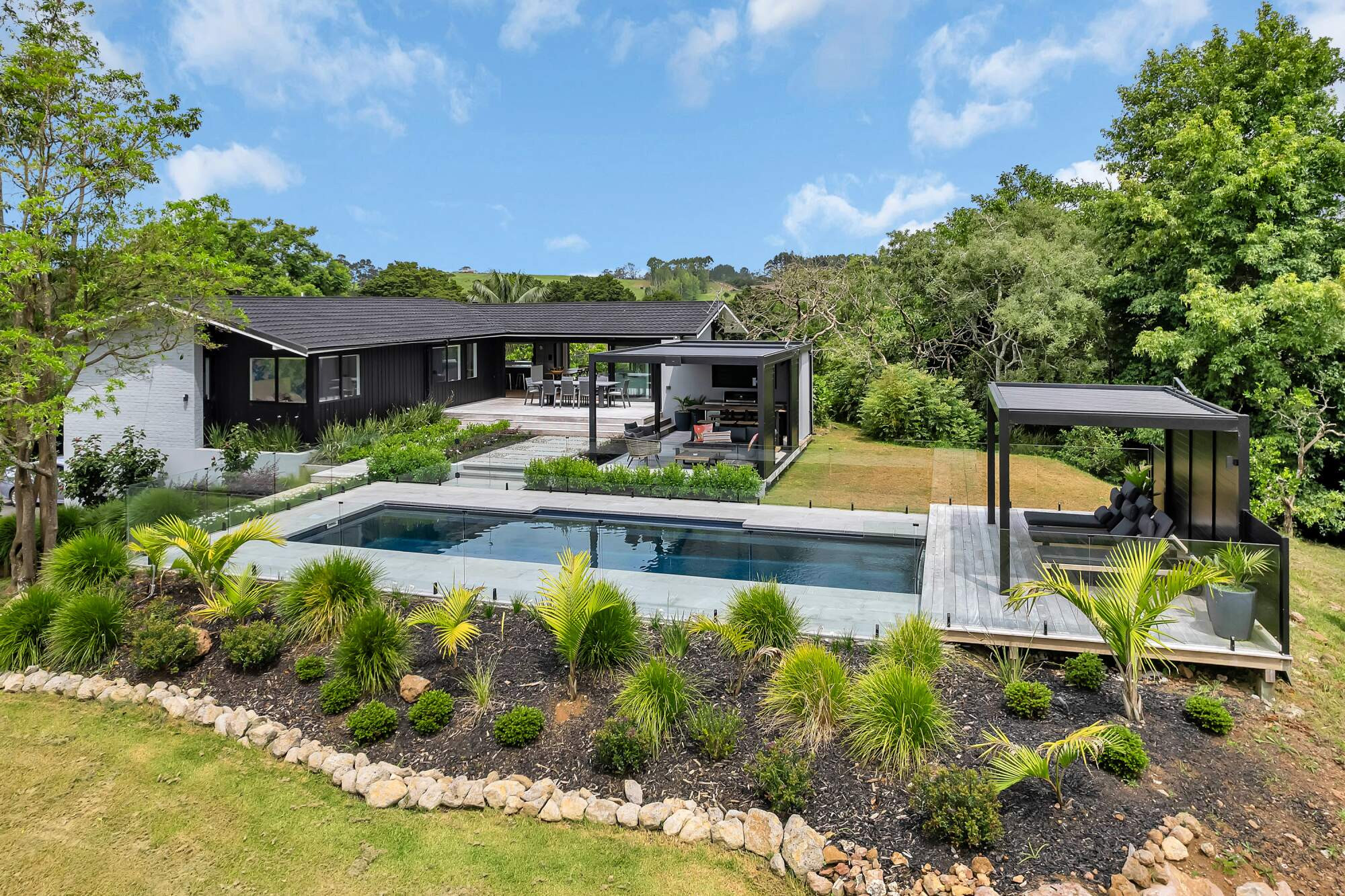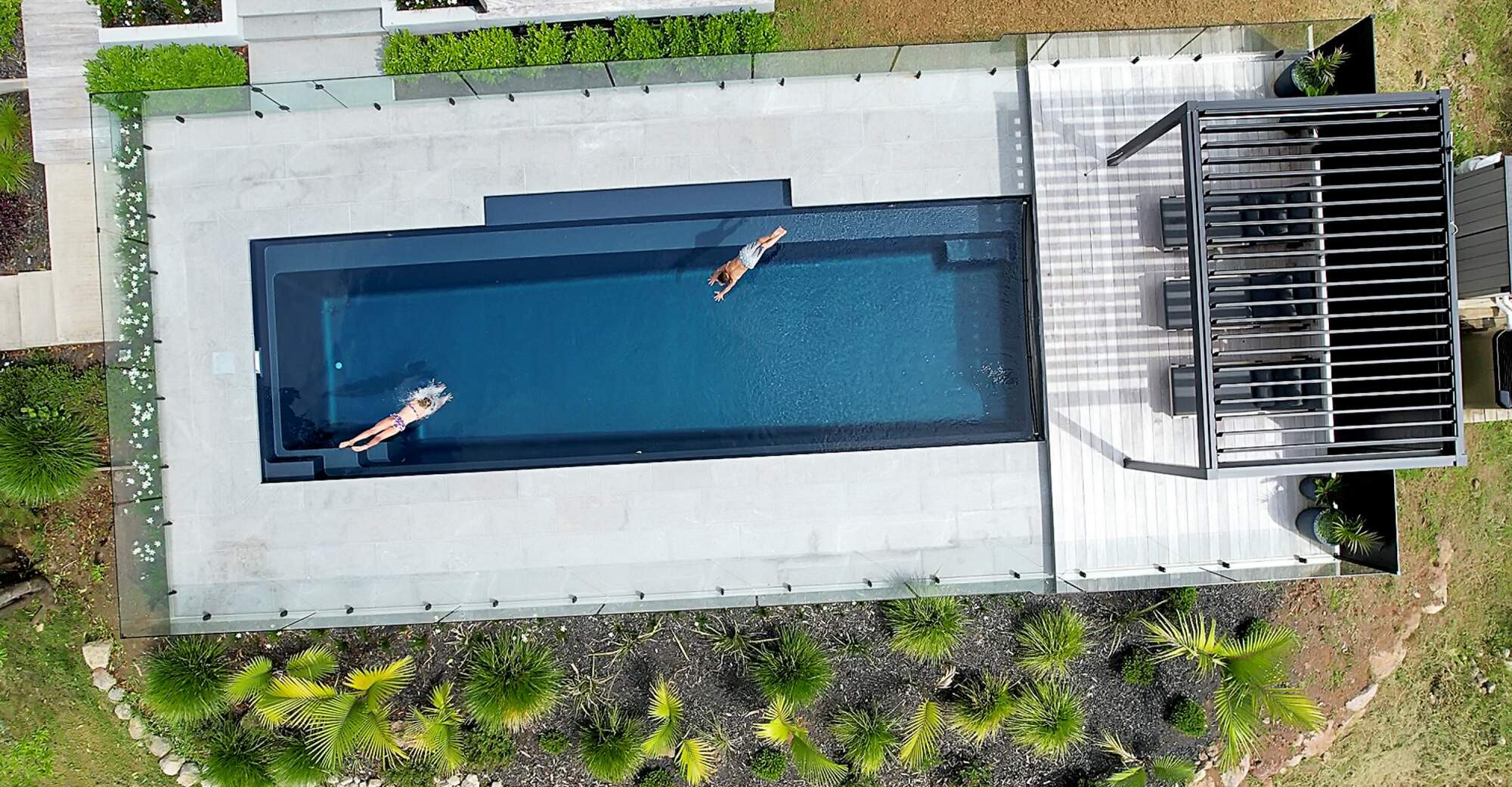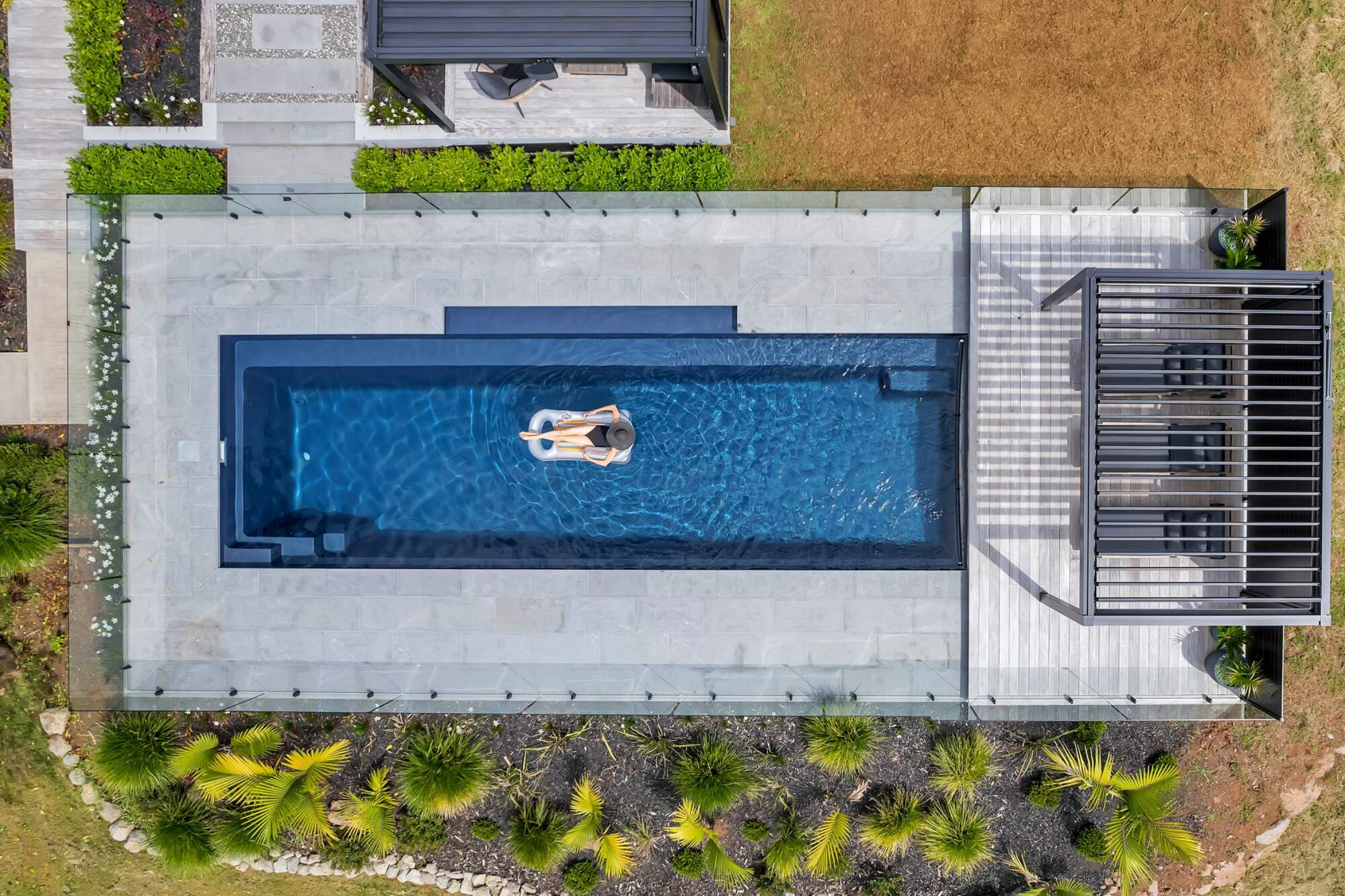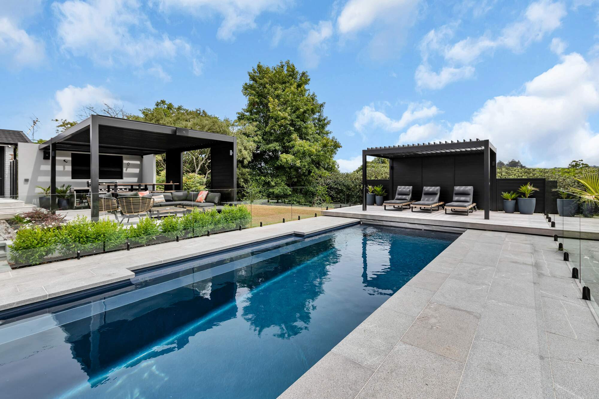 In a beautiful setting in rural Whangarei, sits this fabulous 11 metre pool in the deep colour of Blue Azurite, which compliments the surrounding home and outdoor entertaining area. The pool has become a key feature in the properties outdoor entertaining space and has made a huge difference to the owners lifestyle. A mineral pool, with robot cleaner and hidden pool cover creates a low maintenance pool, the addition of a heat pump means this young family uses their pool almost year round.