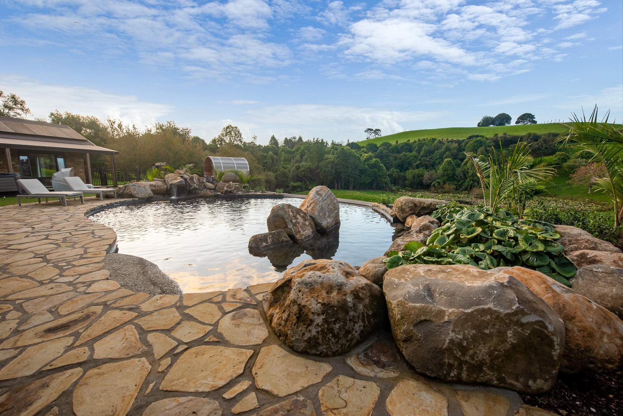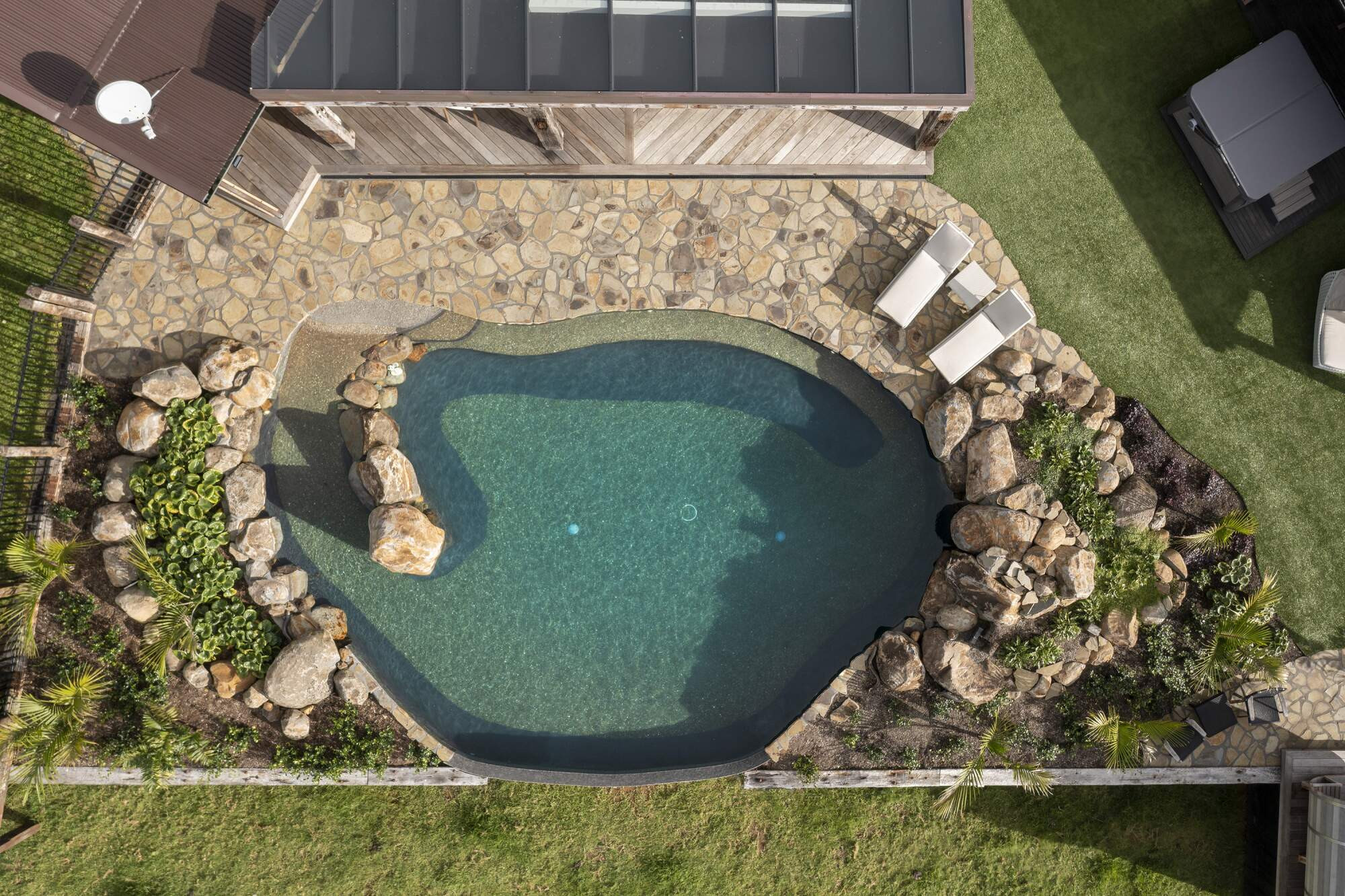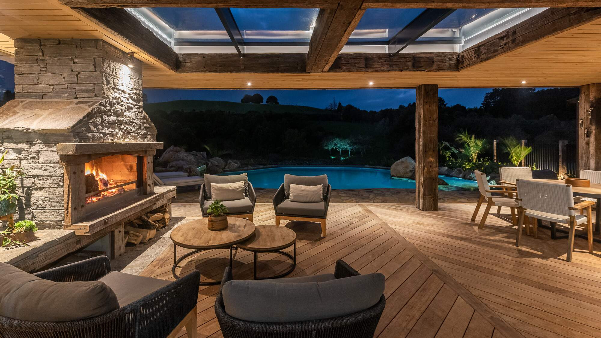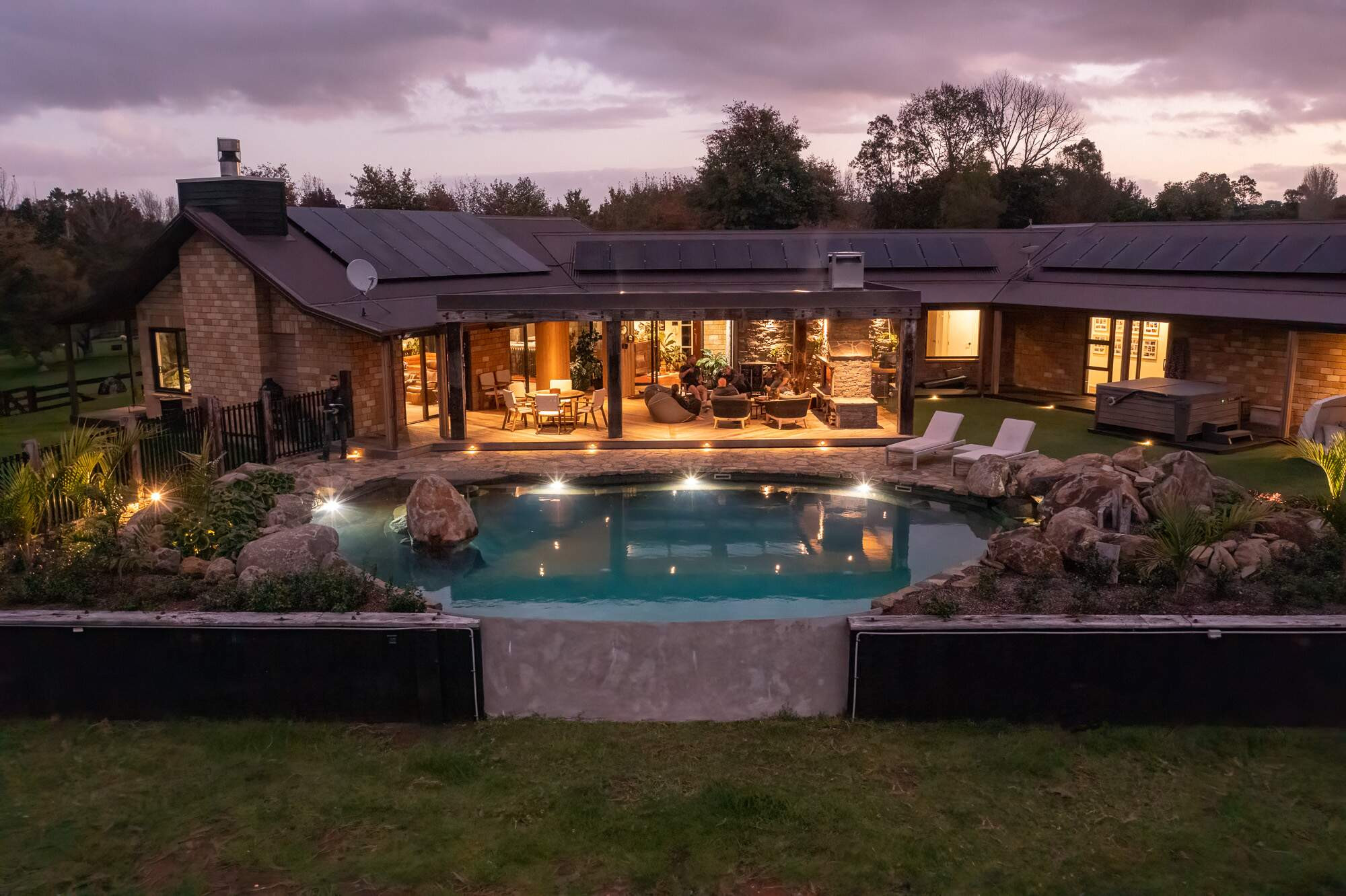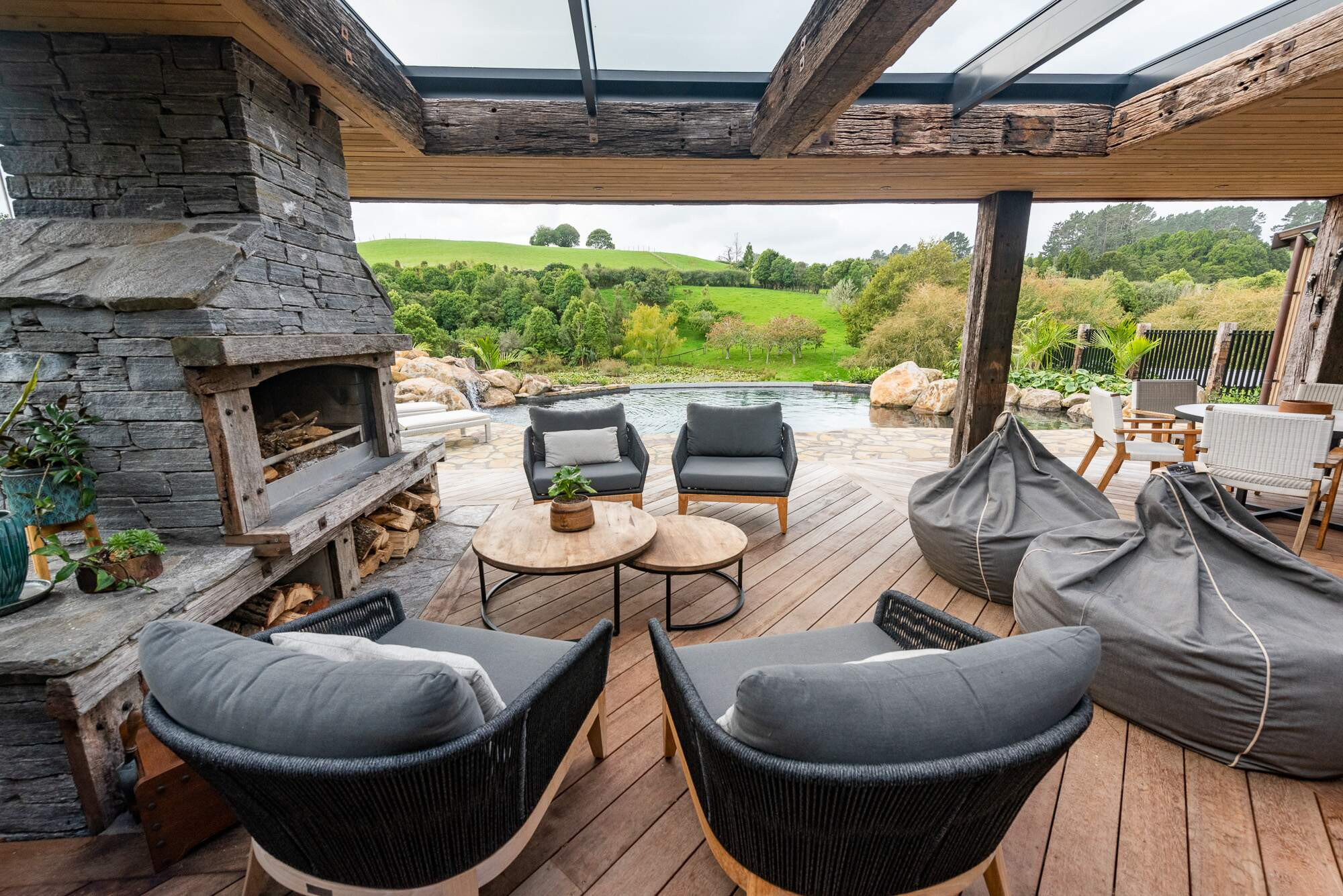 From an outdated pool, mismatched pergola and no outdoor flow, the final result of this project is a beautiful resort-style swimming pool with clear water, lush landscaping and plenty of places to relax and enjoy the rural outlook. And once the sun goes down, the pool is beautifully lit at night, turning it into a serene and relaxing oasis. The rustic pergola and outdoor fireplace provide the perfect place to entertain. The clients just love their new slice of heaven in the country.