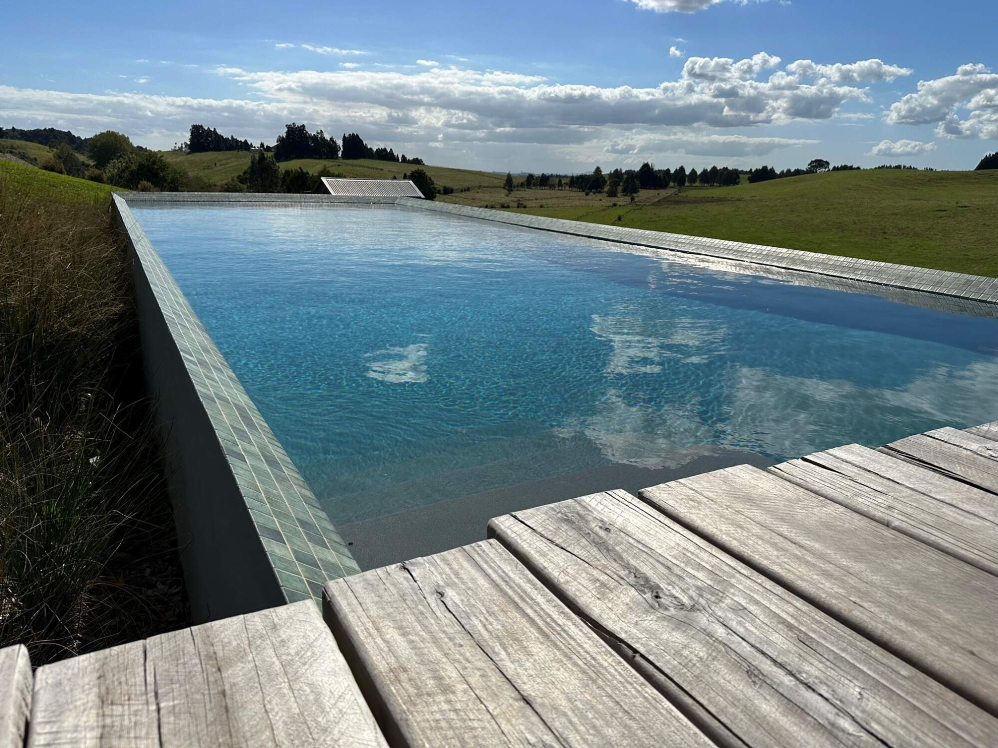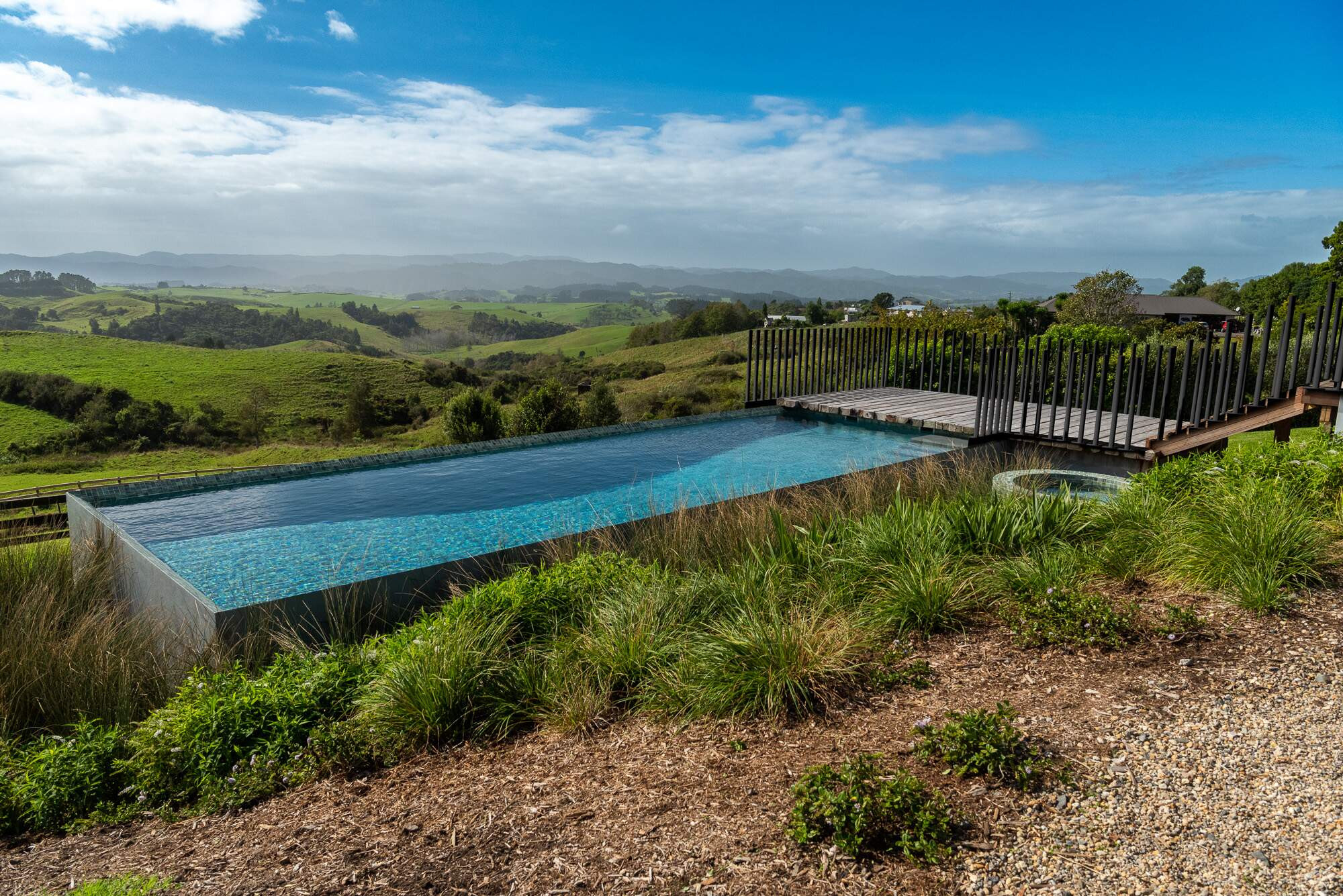 Nestled into a sloping site & taking advantage of the wide views across to Auckland City, Hunua & Coromandel Ranges this pool & spa combination also has a hidden water retention tank dedicated to the pool. Completely automated allows the homeowner & service team to remotely control & troubleshoot the pool from anywhere in the world.