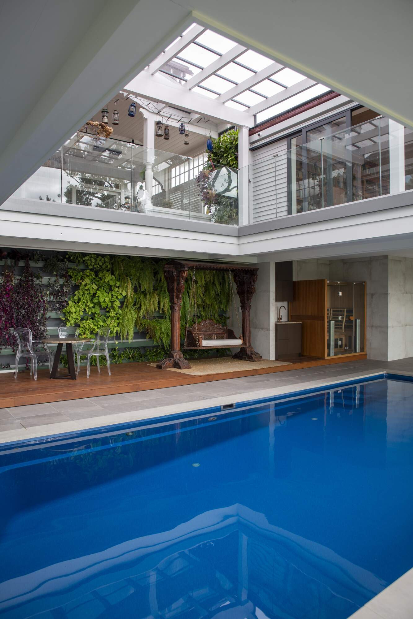 The owners of this magnificent 1900s Remuera homestead now have the best of both worlds, with all the charm of yesteryear combined with the modern convenience of a stunning indoor pool and spa combo and adjacent gymnasium. With light streaming in through the atrium above, just throw open the ceiling to floor doors and the garden becomes an extension of the pool area. Simply devine.
