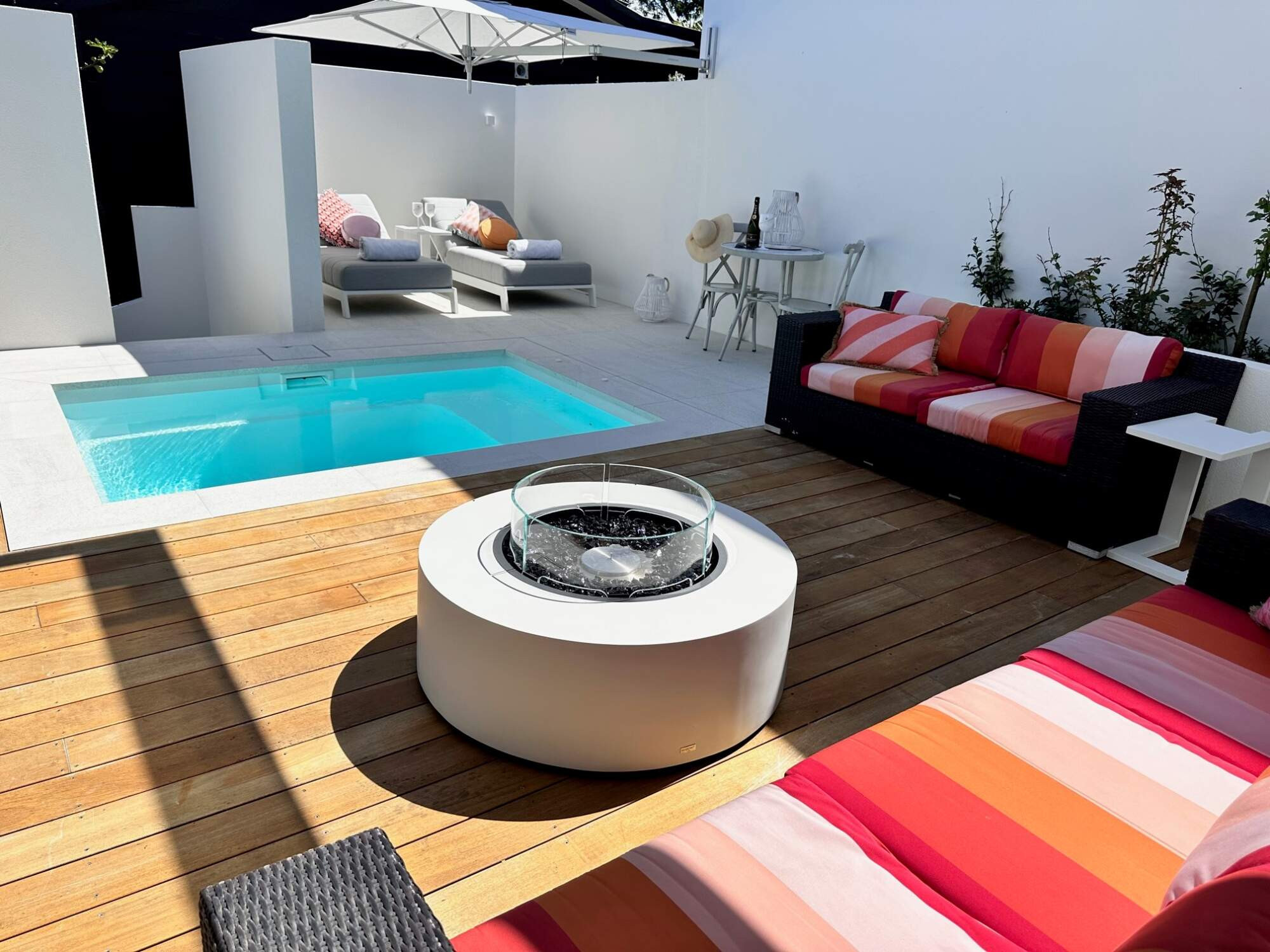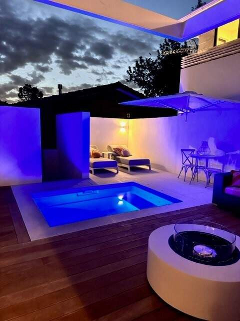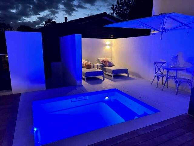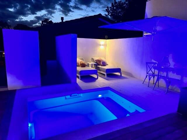 The Heat Pump can easily achieve 38degrees when required. It has a Beautiful Blue LED light for a spectacular night time aesthetic