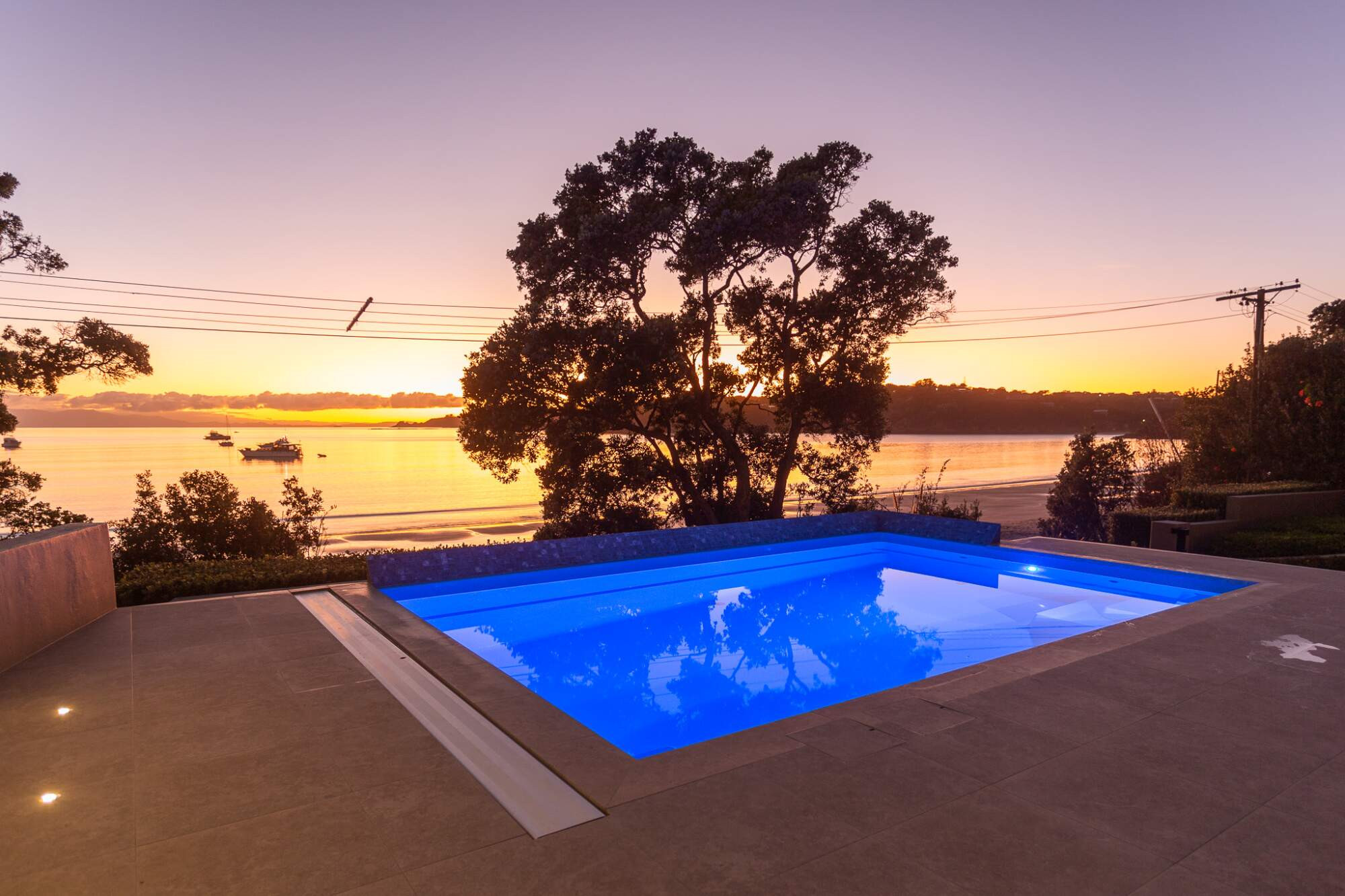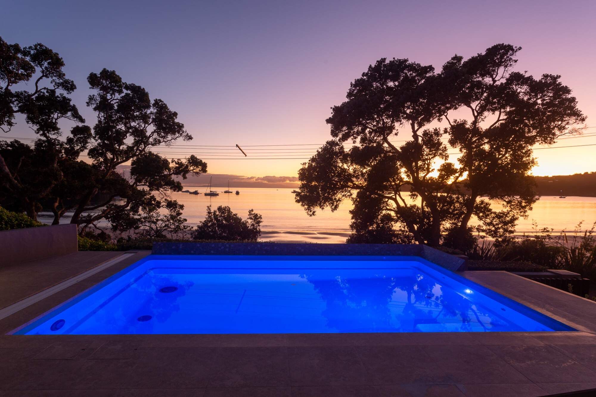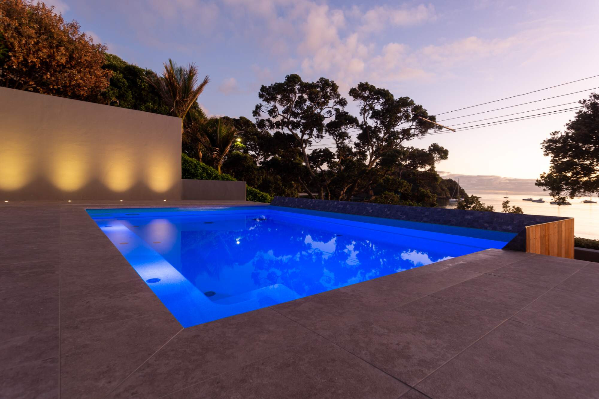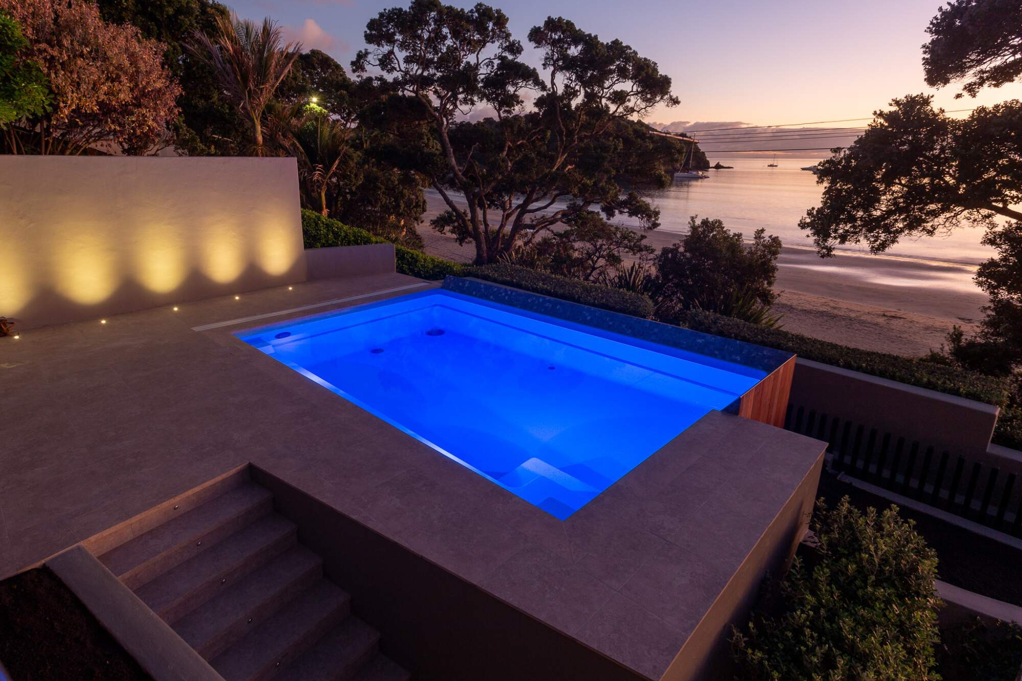 In a setting just made for a magazine shoot, this spectacular courtyard pool looks over beautiful Oneroa beach on Waiheke Island. After a logistical challenge for delivery and installation of the pool shell, the finished product of the Compass Sanctuary pool in a resort like environment is breathtaking. This pool truly sets the scene as a spellbinding wonder on Waiheke.