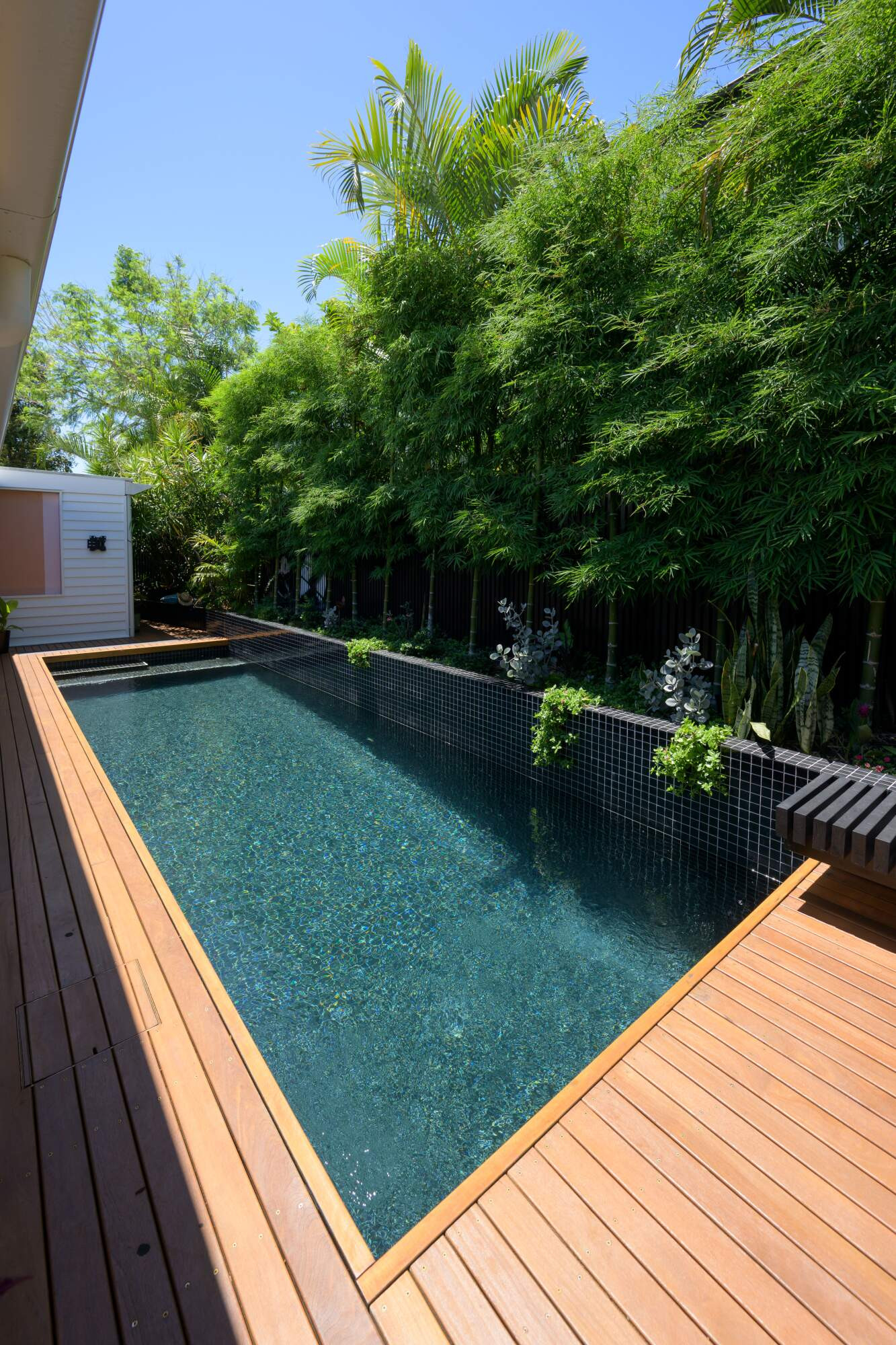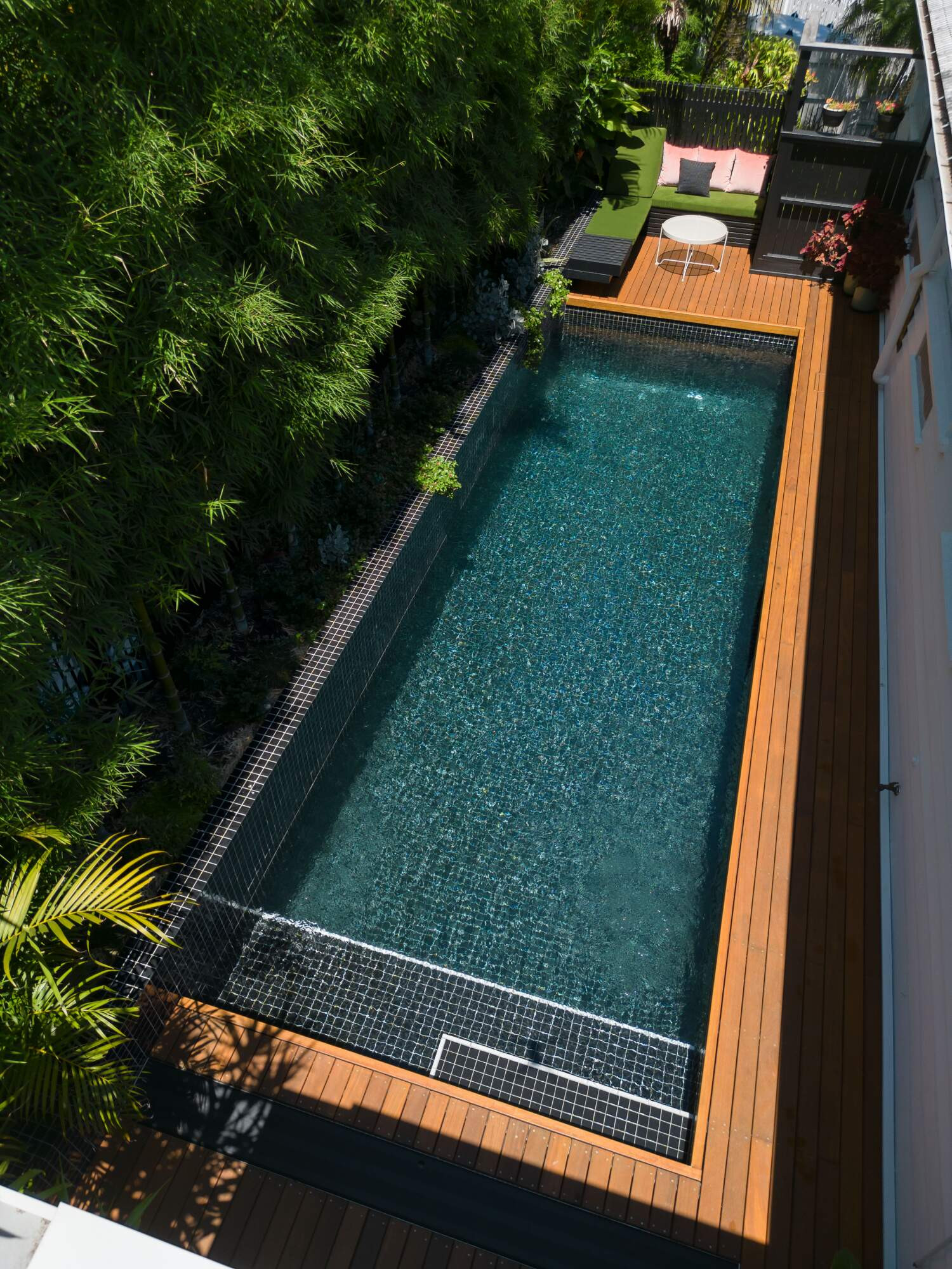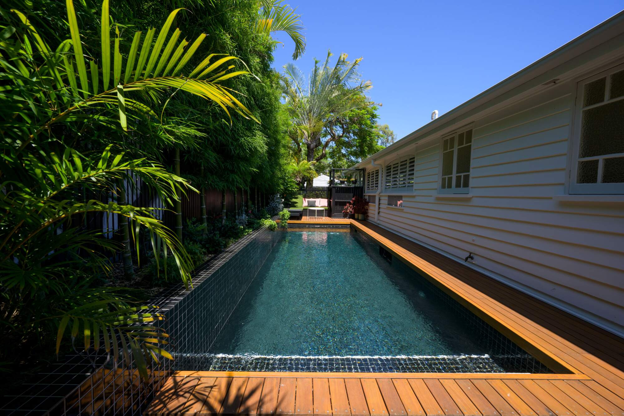 Sleek and sexy, this fully tiled black pool is 8.15m x 2.6m with underwater pool window visible from inside the home, in deck pool cover, fresh water and heating... No expense was spared for this stunner!