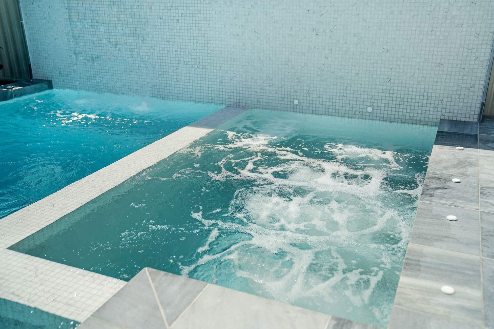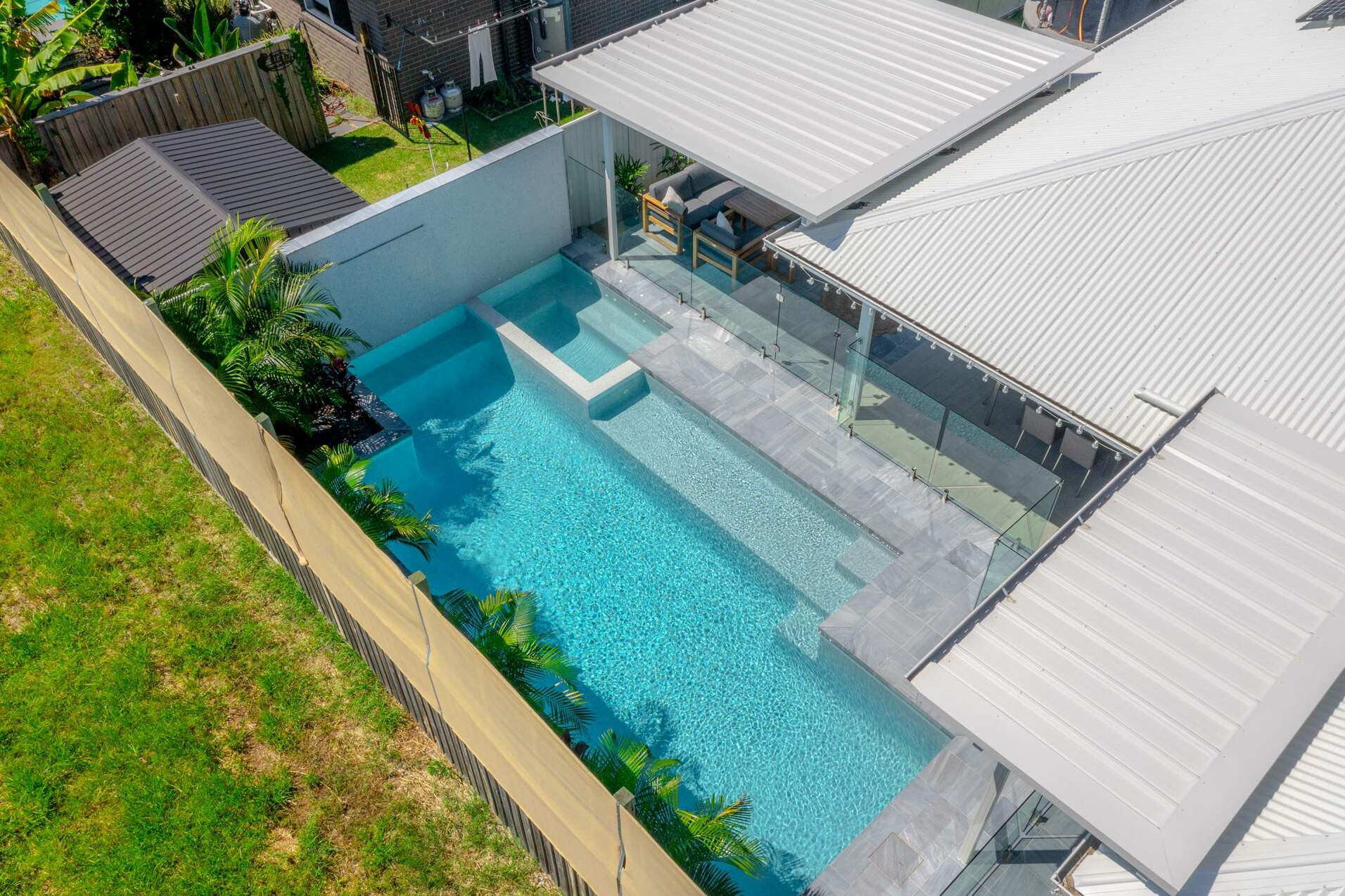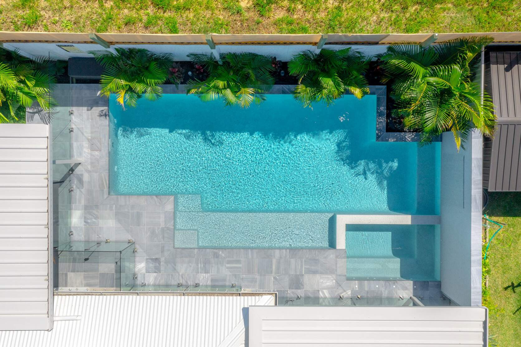 This sophisticated pool and heated spa allows you to soak up the views in a relaxing and soothing atmosphere. The cascading water feature wall adds a visually stunning element to the area and the sound of trickling water.