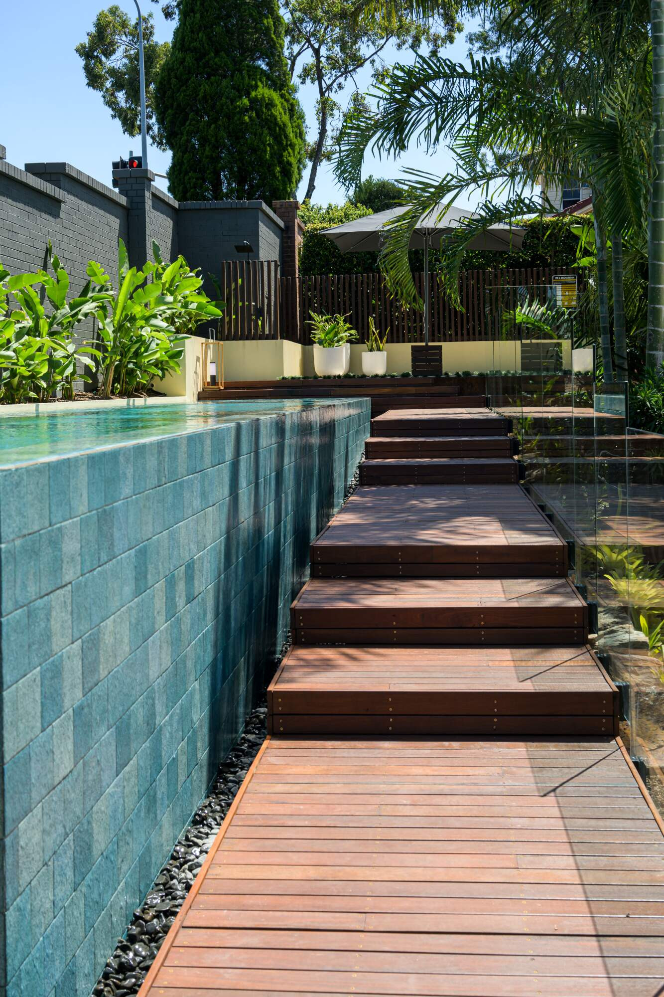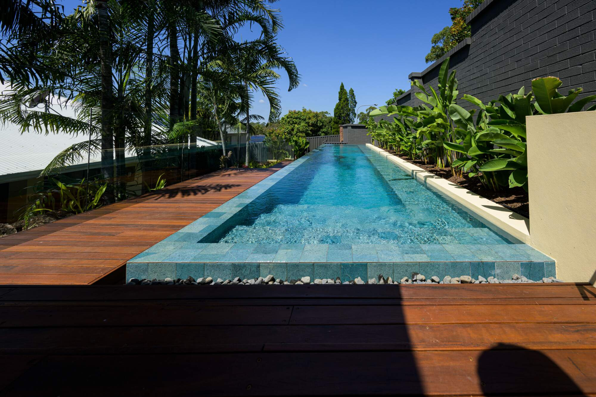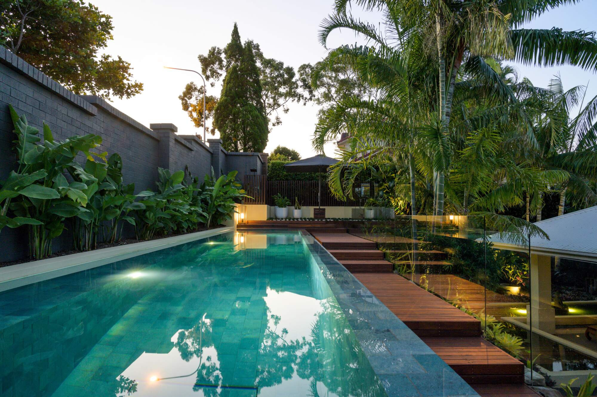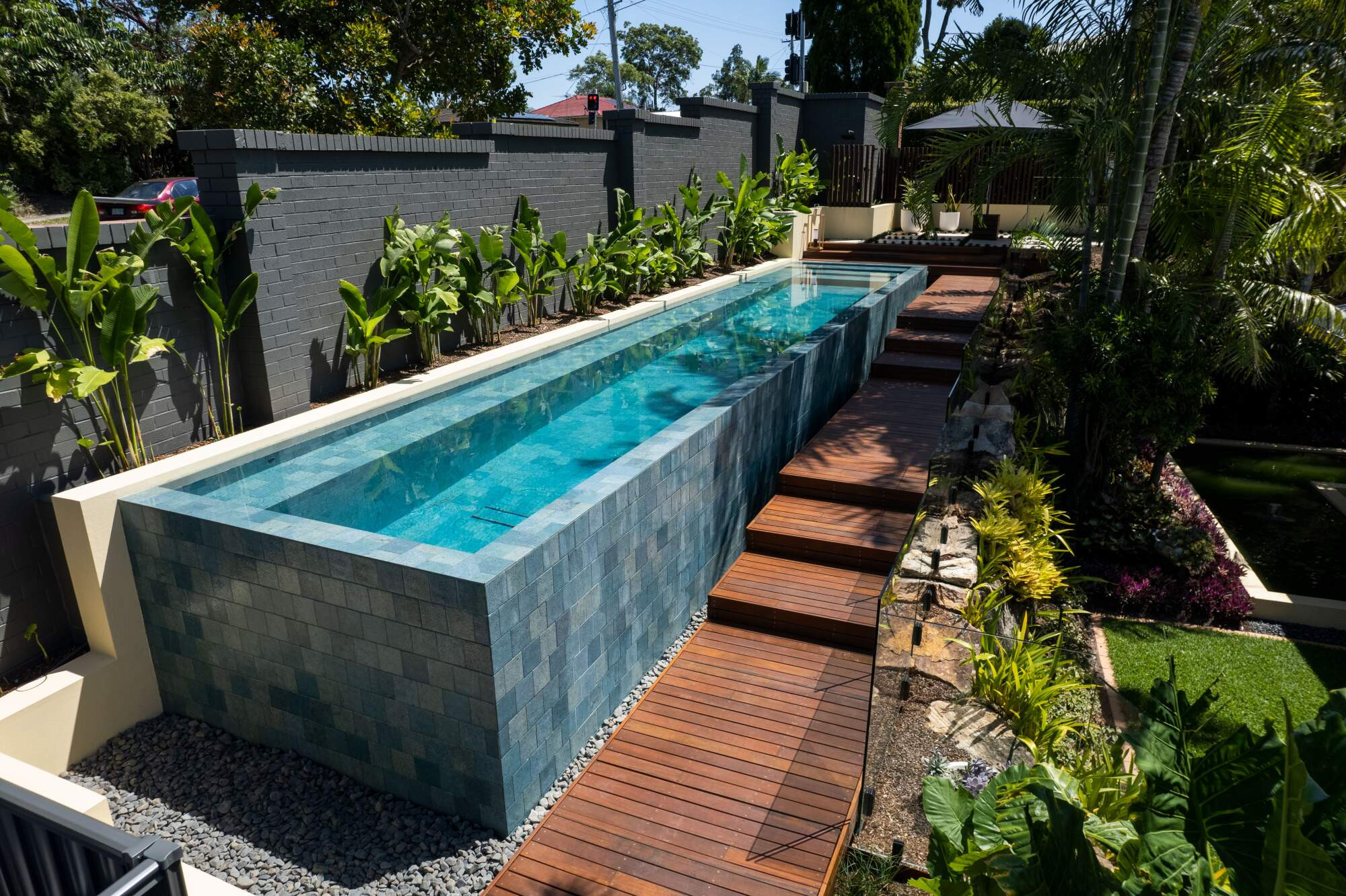 The Balinese Paradise in the heart of Brisbane Suburbia... a not so simple lap pool with 3 sided infinity edge, fully tiled and ready for any event.