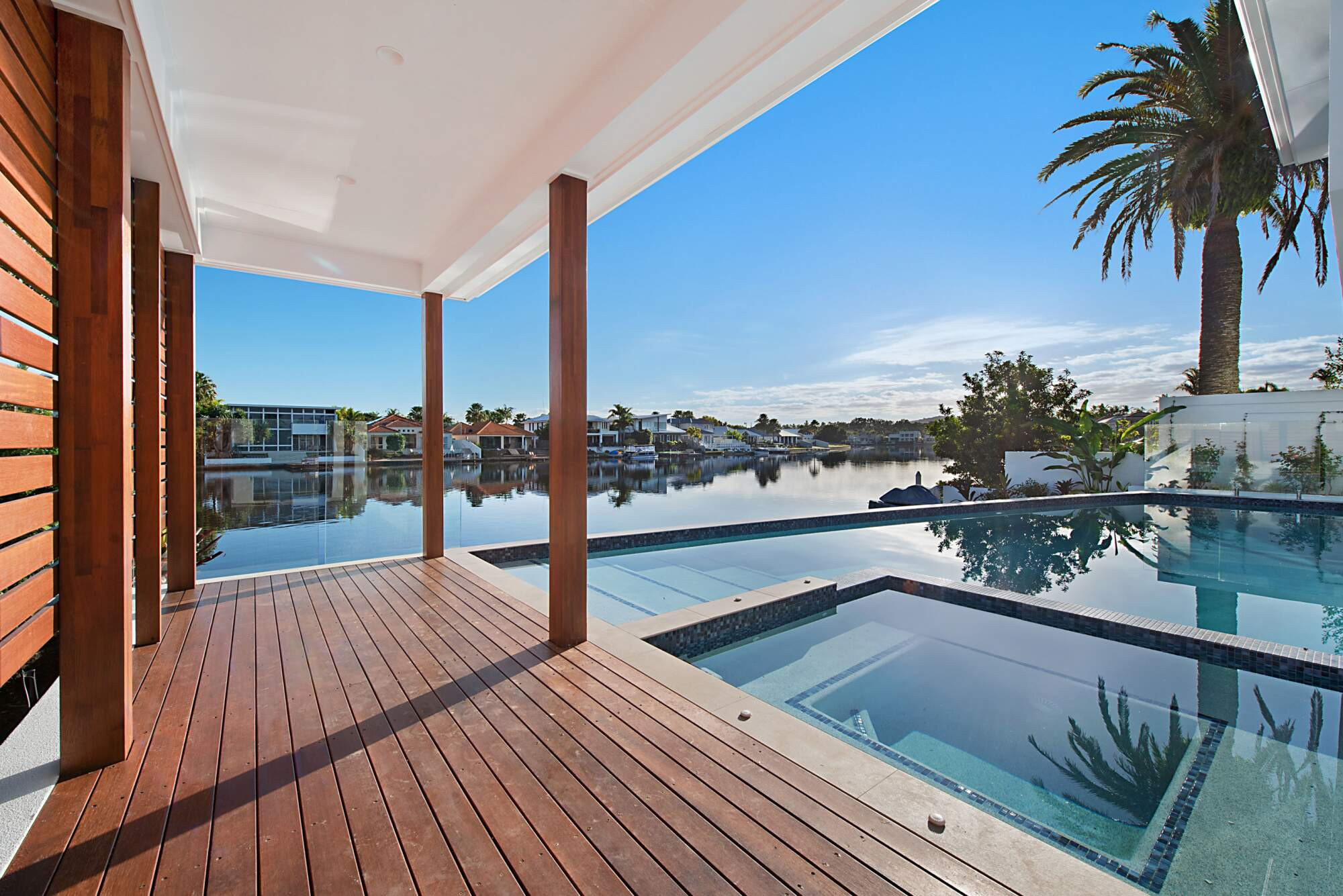 This dazzling pool with heated spa encapsulates opulent living. The curved edge flawlessly flows visually from the house and entertainment zones, integrating impeccably with the stunning water aspect.