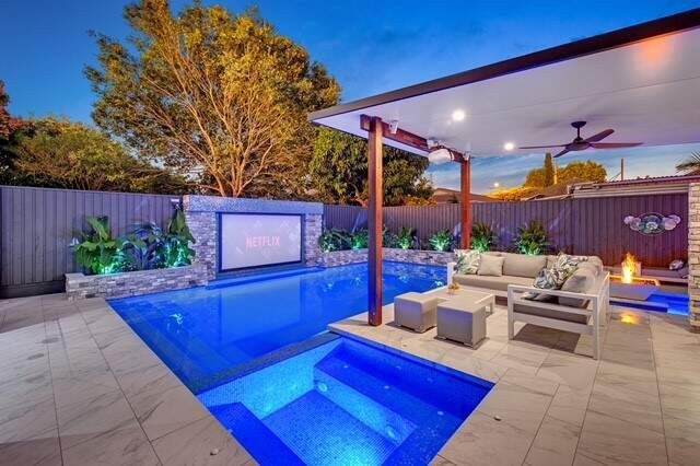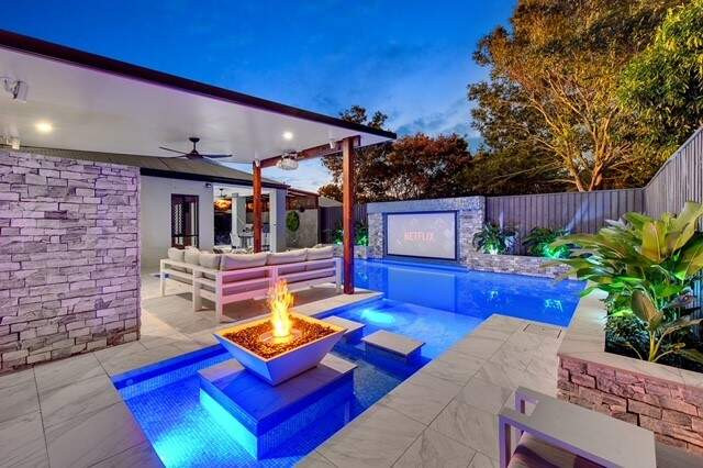 This remarkable project is a unique blend of luxury and practicality. Combining a resort-style outdoor living space with an integrated cinema and two outdoor bars, this renovation is truly one of a kind. This transformation has taken a blank canvas backyard and transformed it into an ultimate entertainers paradise.