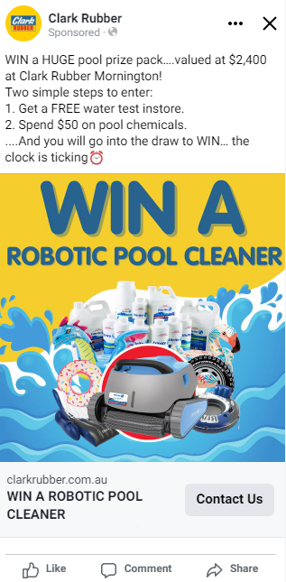 A targetted and successful campaign to increase customers testing their pool or spa water saw up to 227% increase in water testing and a corresponding 26% increase in chemical salesand a 60% increase in robotic pool cleaners