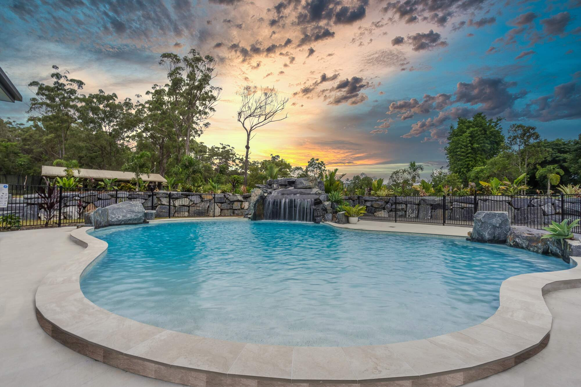 This natural lagoon style oasis is the epitome of biomimicry of nature, the natural waterfall makes this project a true and everlasting masterpiece. Timeless, ageless and an escape from the stresses of life.