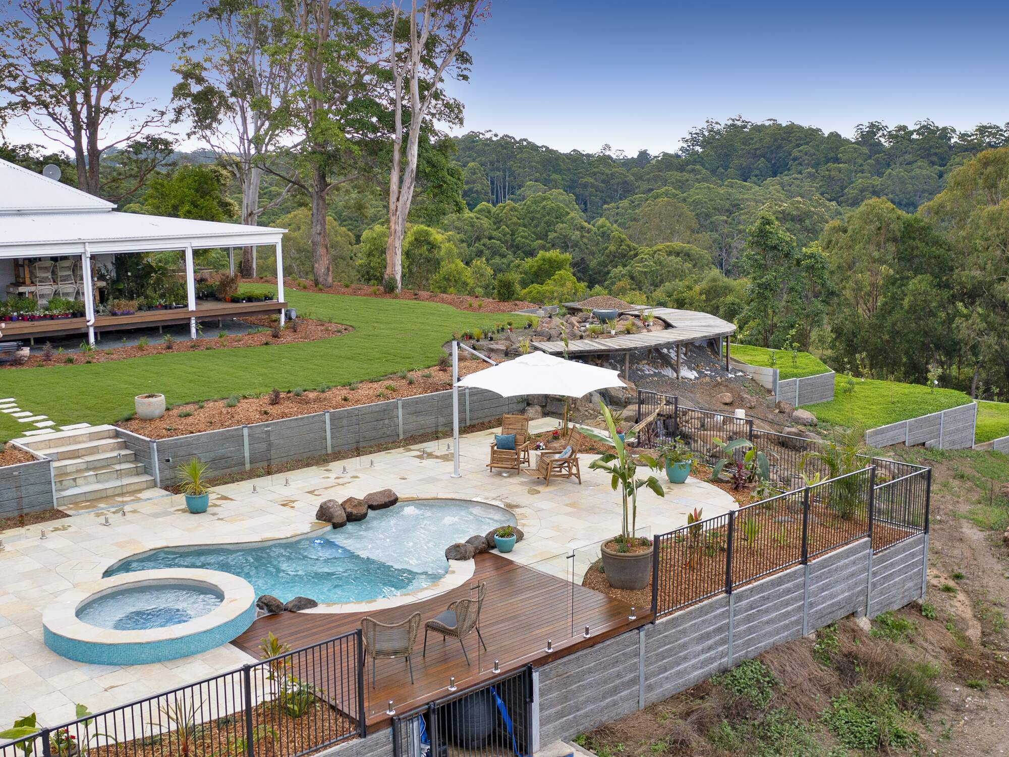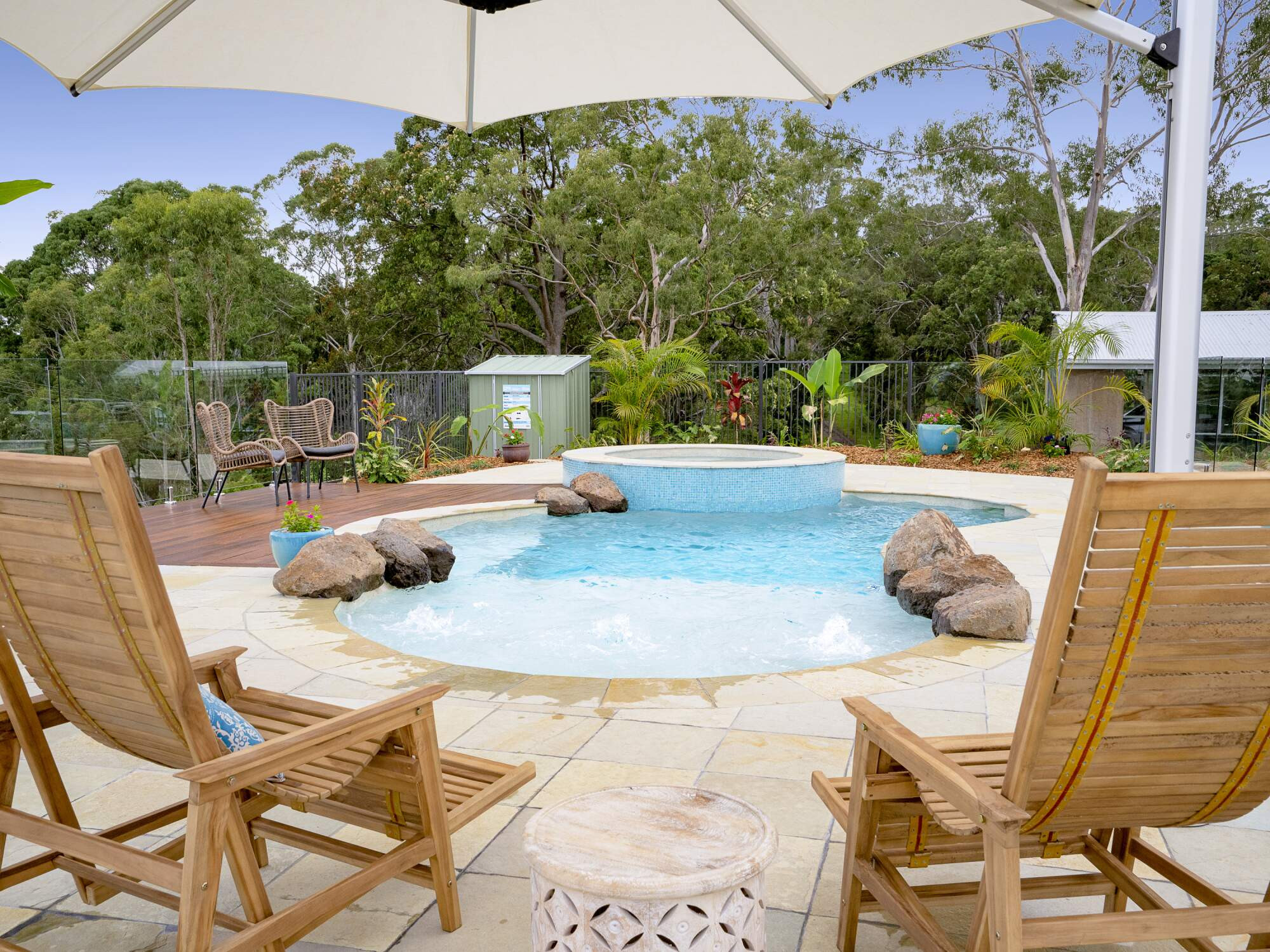 Blending seamlessly with the natural surrounds this pool takes functional and aesthetic entertaining to the next level. The freeform pool blends effortlessly into the bushland setting with the use of the natural elements strategically placed to amplify the sense of relaxation and acreage luxury.