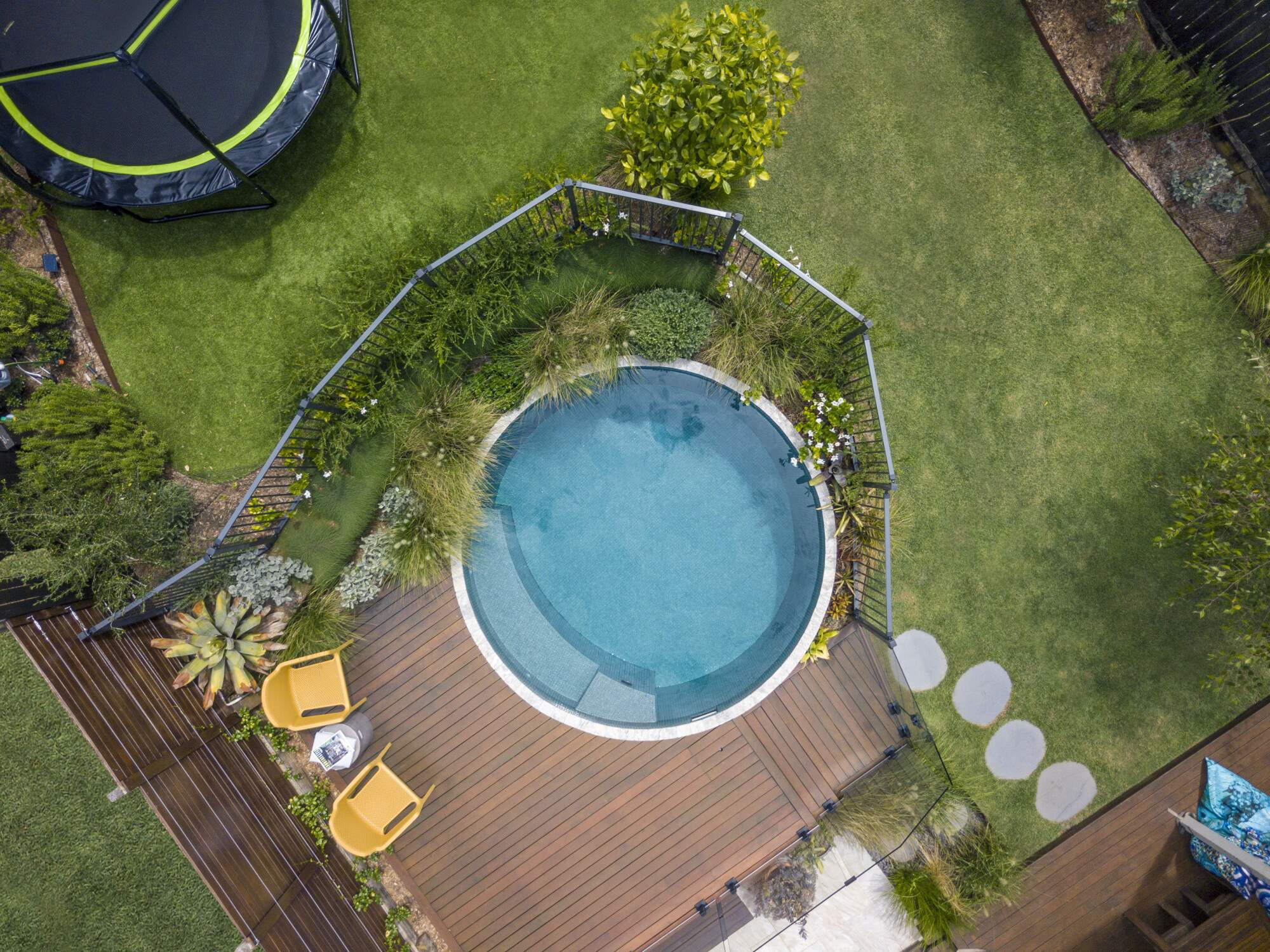 to make sure every piece of ground is covered in a kaleidoscope of hues and textures. This all leads to a stunning focal point, the captivating circular pool.