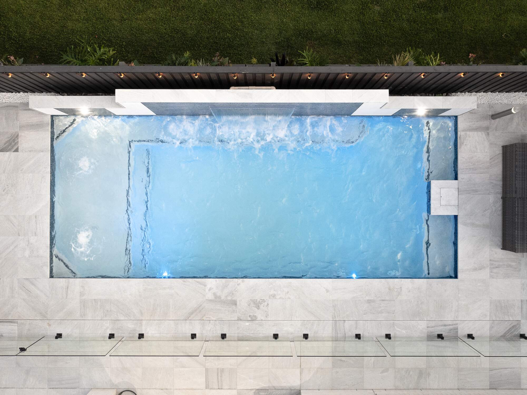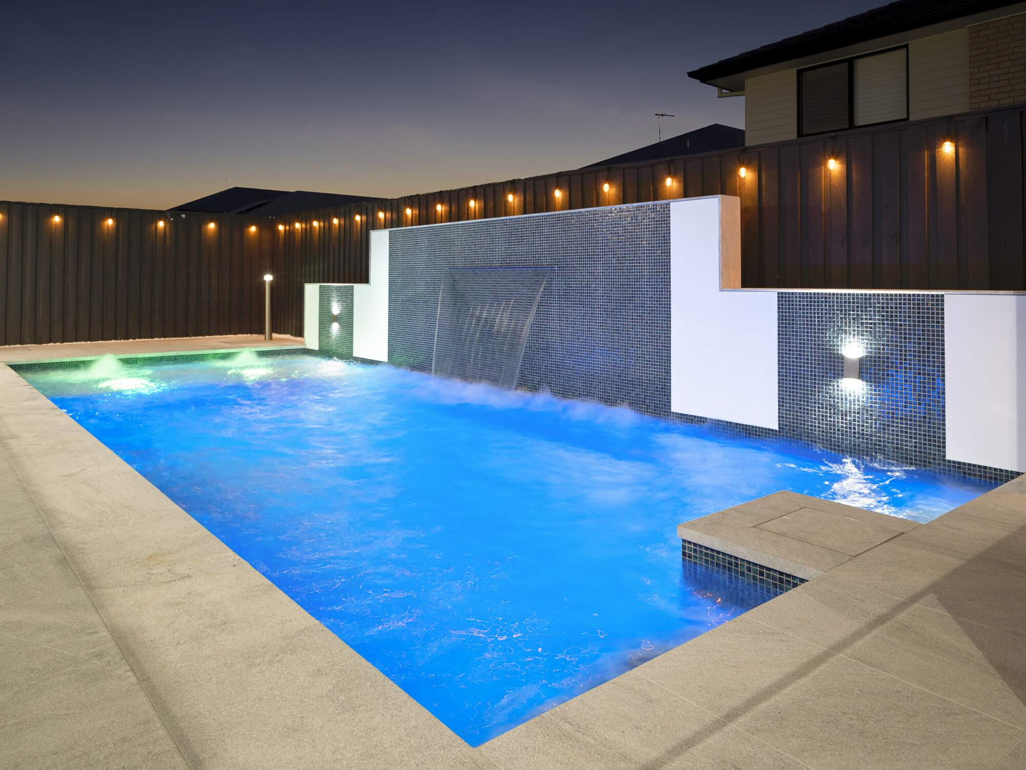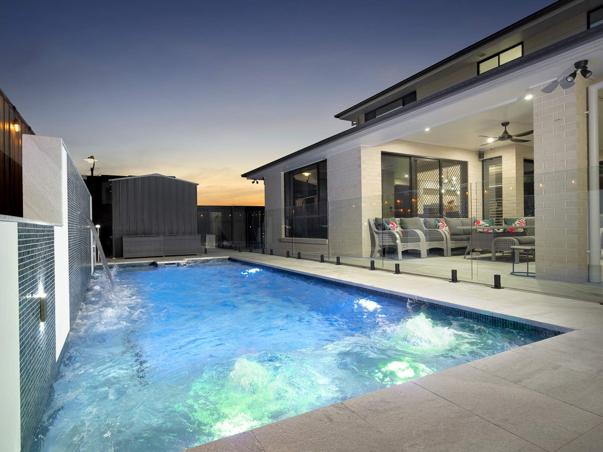 A striking visual with WOW factor complete with cascade LED bubblers, plus a stand out feature with the tiered block wall which has stunning water blades which cascade providing a soothing sound and hero statement to the alfresco area. The pool area also included submerged LED lighting and strategically place lights among the landscaping allowing the pool to be enjoyed at any time.