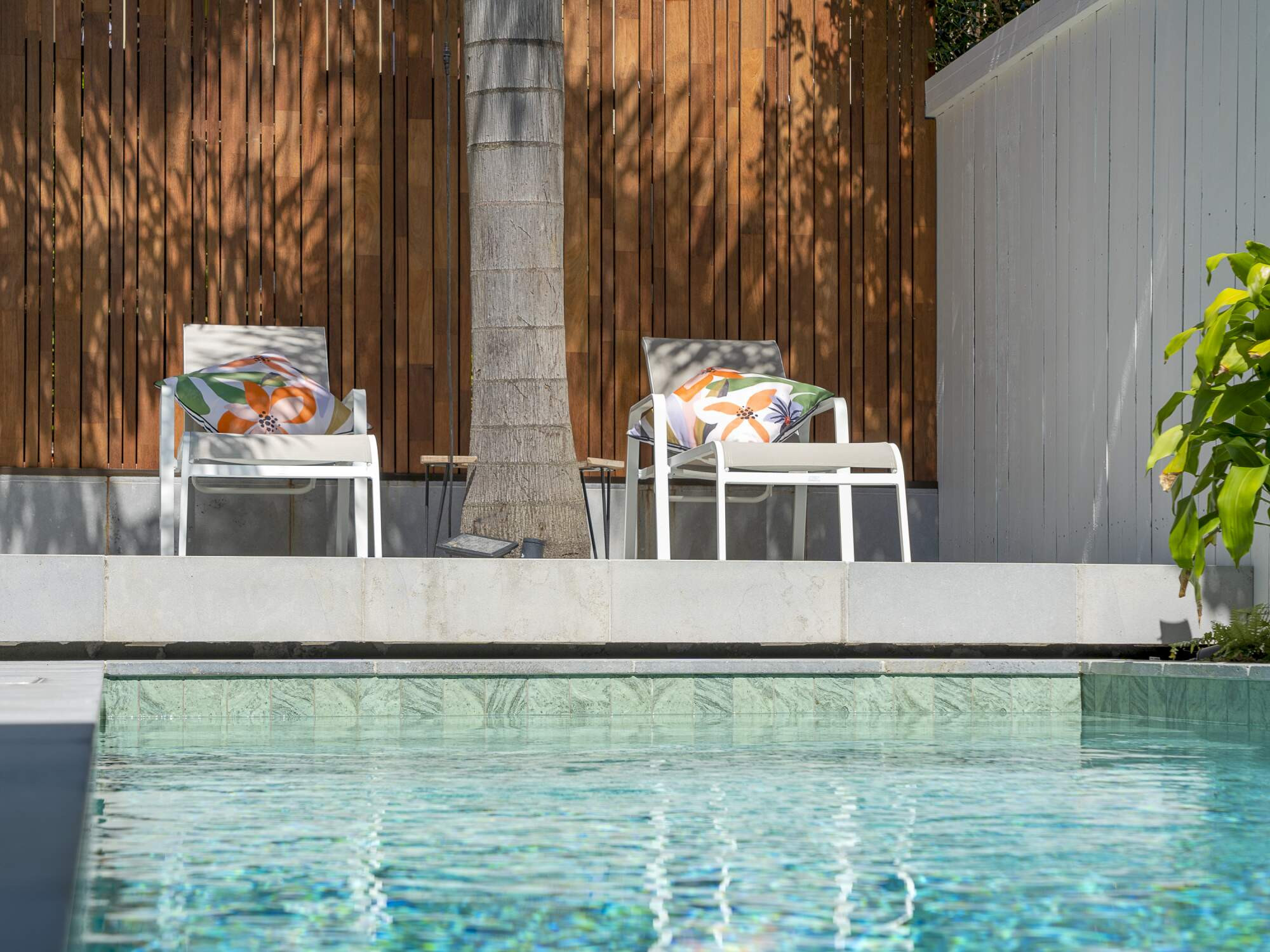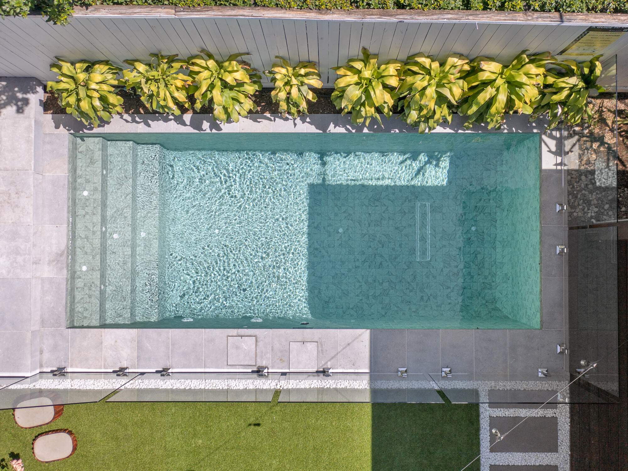 Queensland Family Pools & Spas love a challenge and this certainly filled the brief. Tight access saw the team think outside the box which resulted in an Excavator, machinery and supplies transferred through the middle of the client’s house in order to access the backyard. The end result was a sleek and elegant pool which is the perfect addition to the client’s home. Fully tiled with the stunning Sukabumi tile, the pool shines in hues of emerald and jade green as the sun moves across the sky.