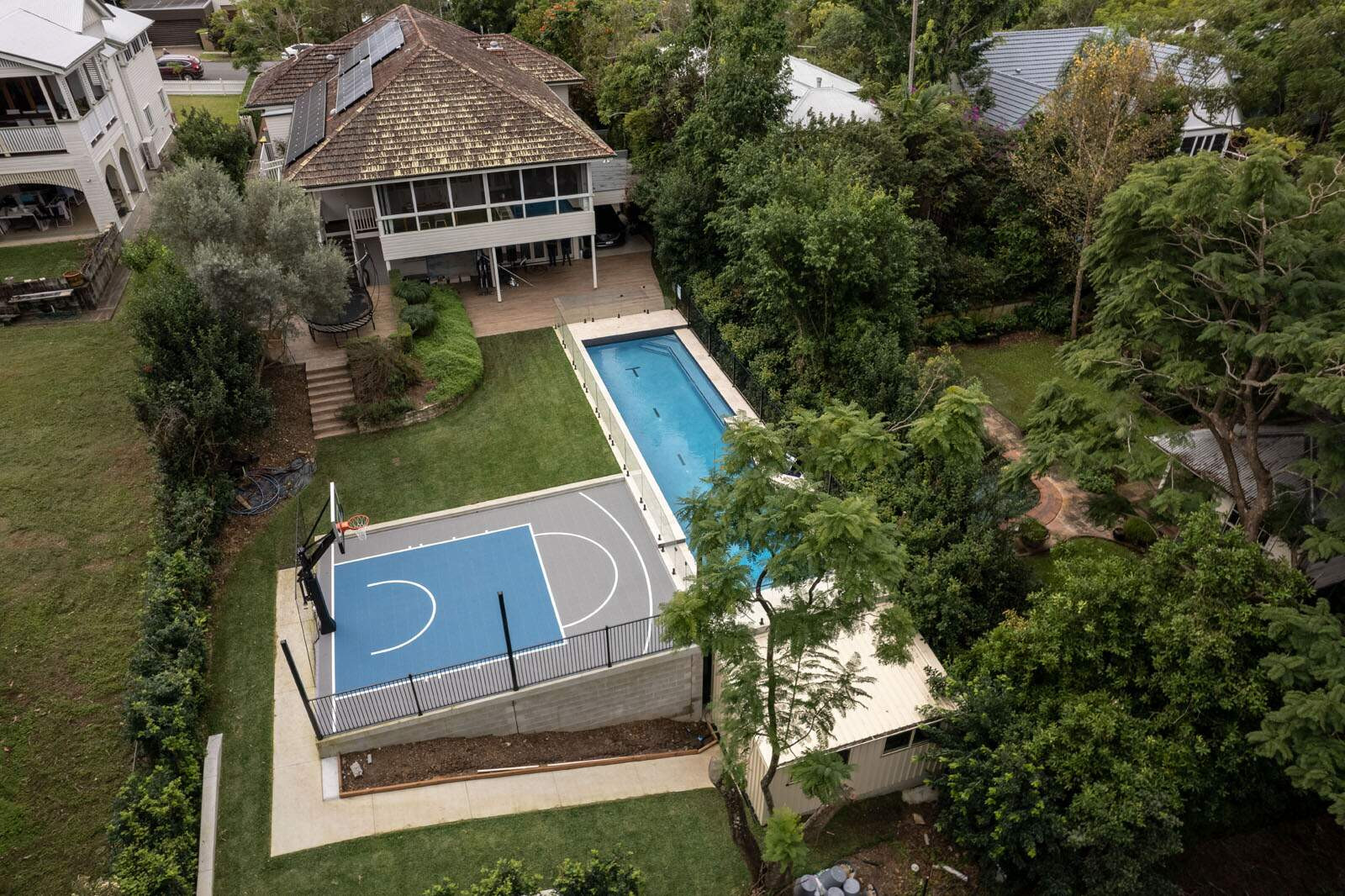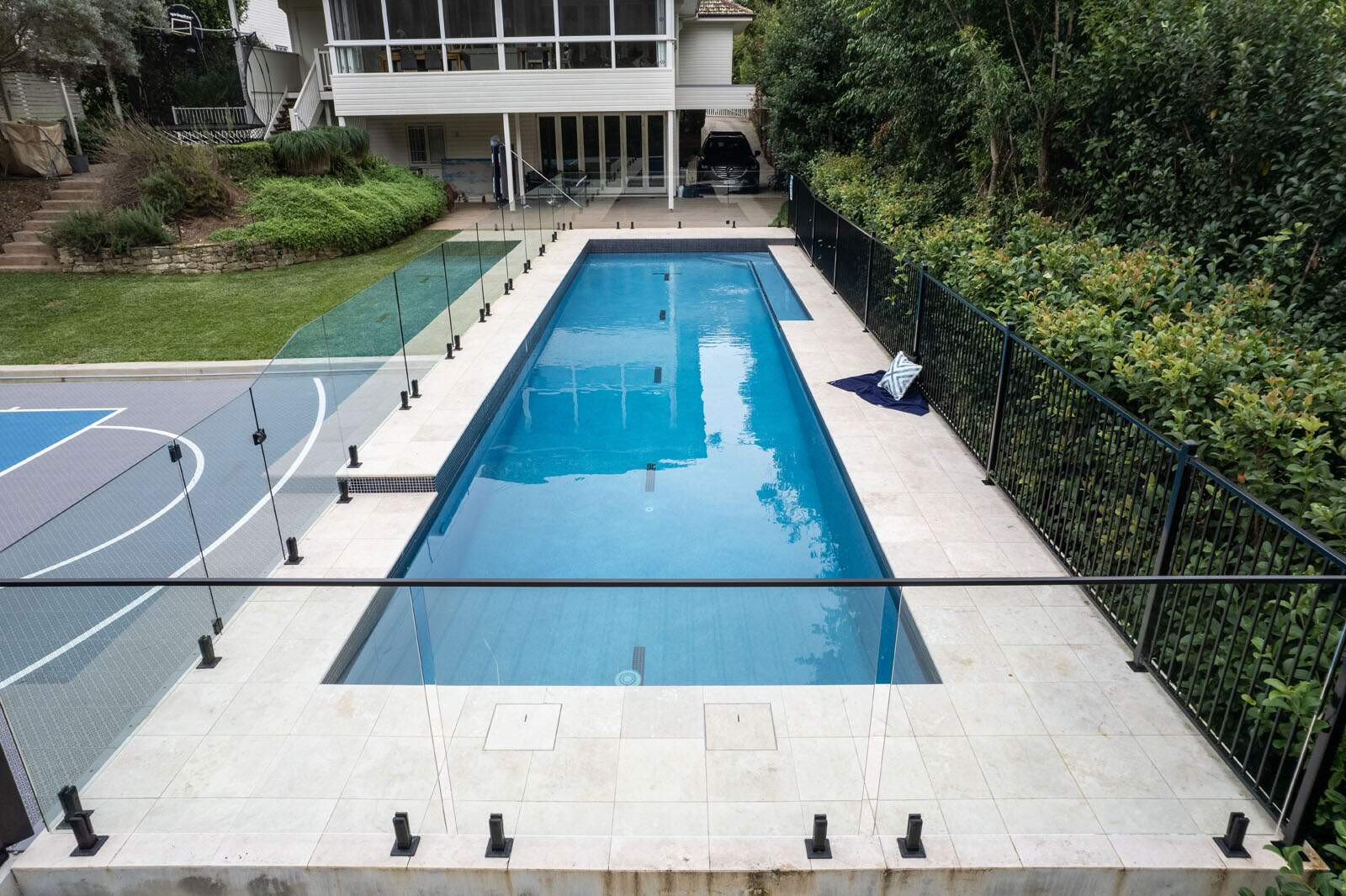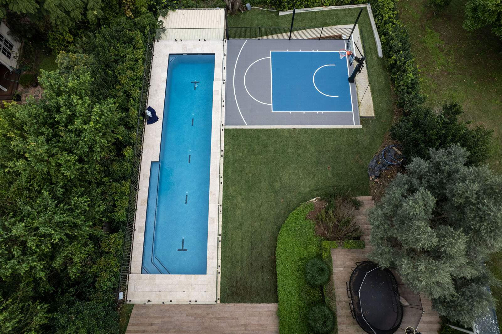 This 15m lap pool utilises what was a dead and unusable space in this large backyard, to create a zone for both exercise and family fun. Linking seemlessly with a half court, the split levels on the pool create a point of difference and draw your eye to the horizon and the forest behind.