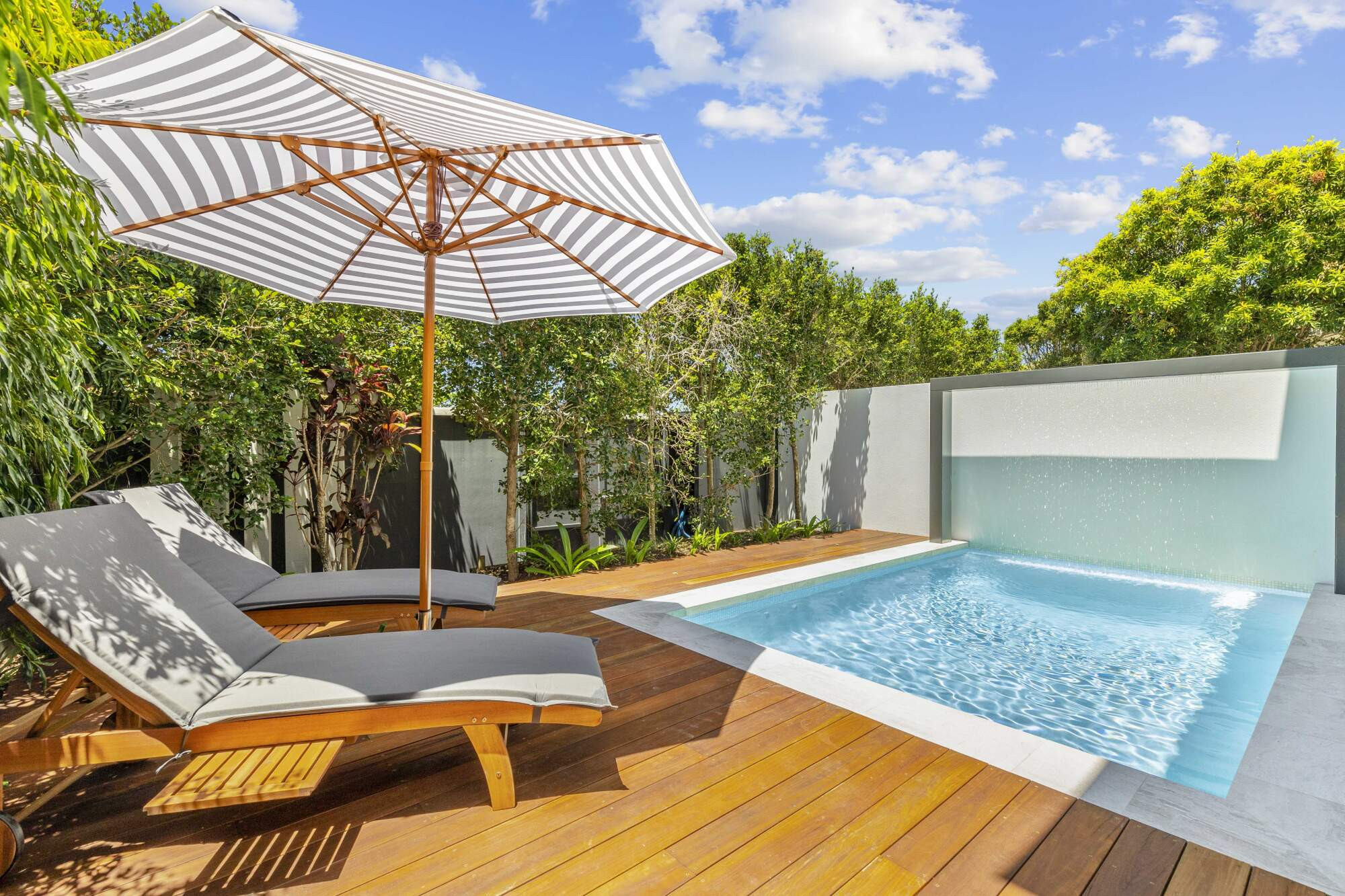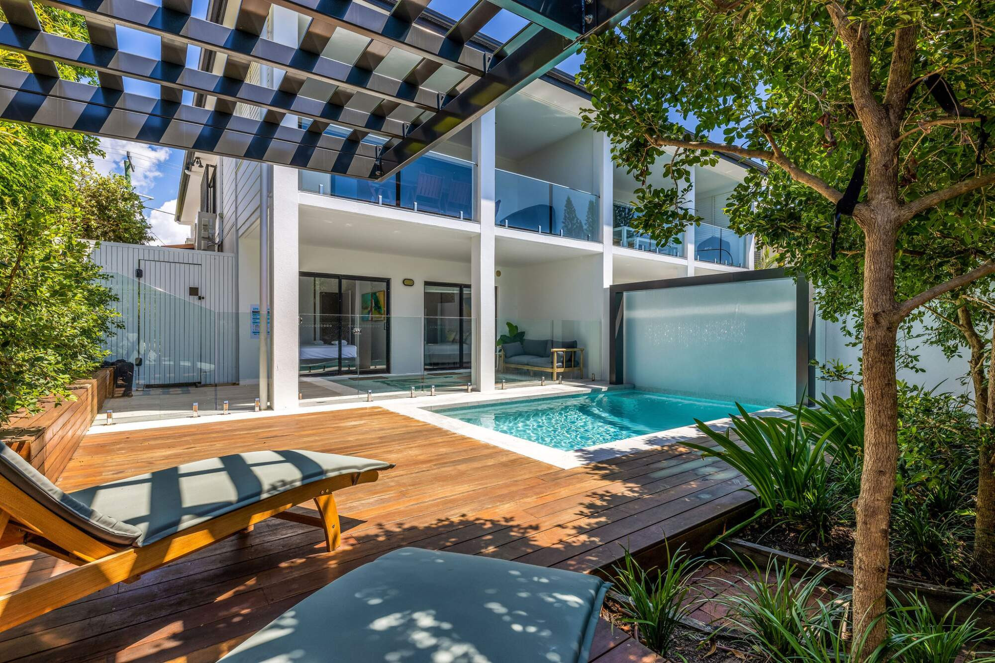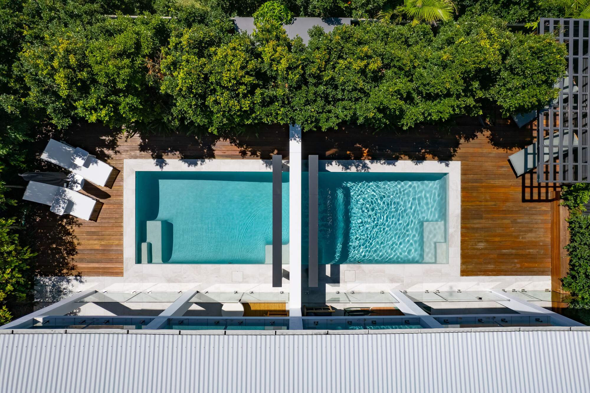 The original shell was extensively modified and out of the rubble emerged two pools completely private and within the original structural footprint.