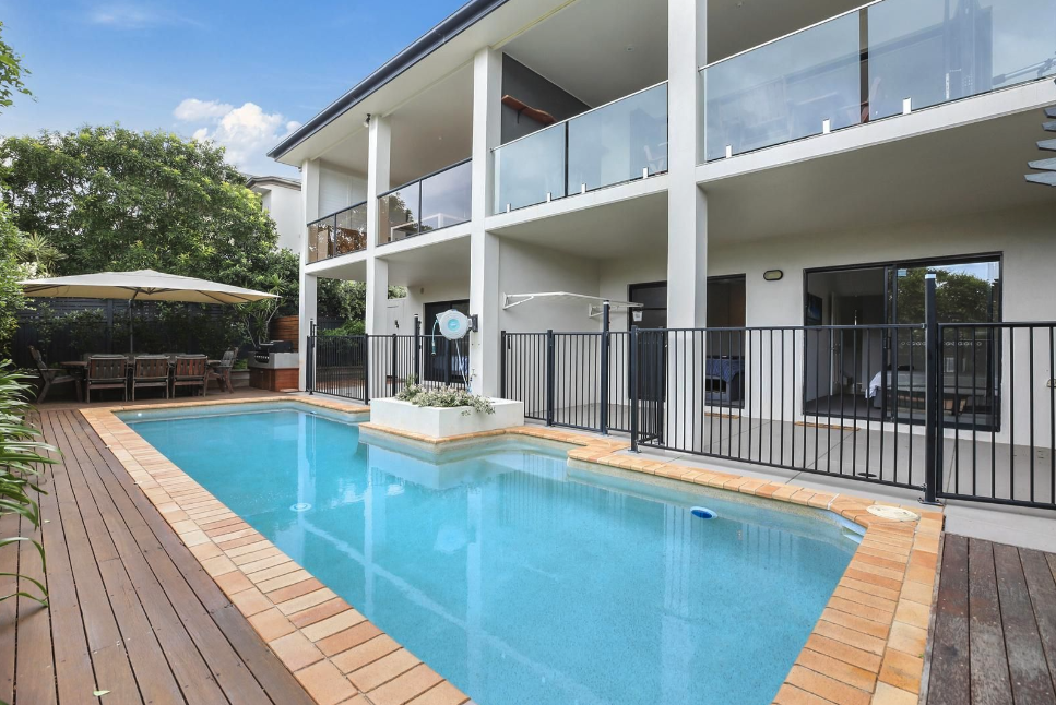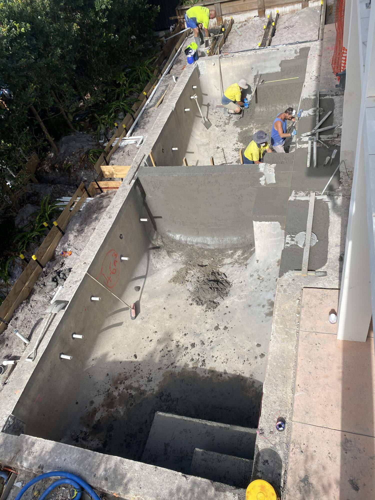 A testament to the trades people involved on the project , this extensive pool renovation involved splitting a large shared pool into two new private couryard pools.