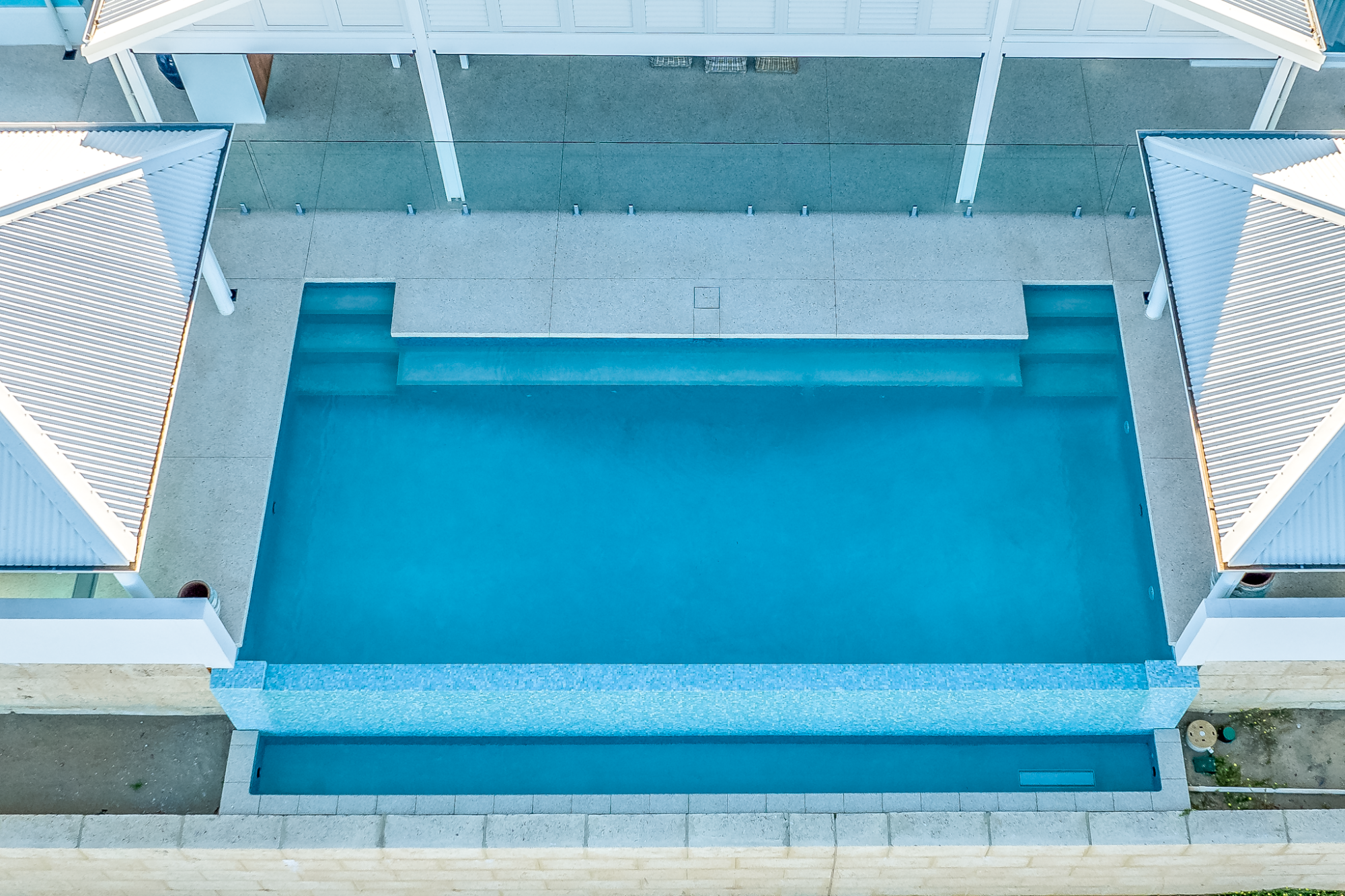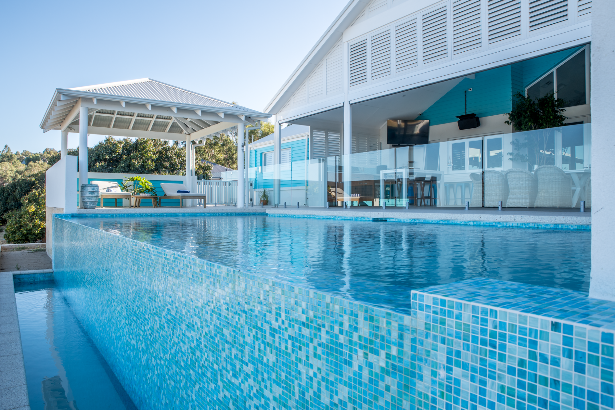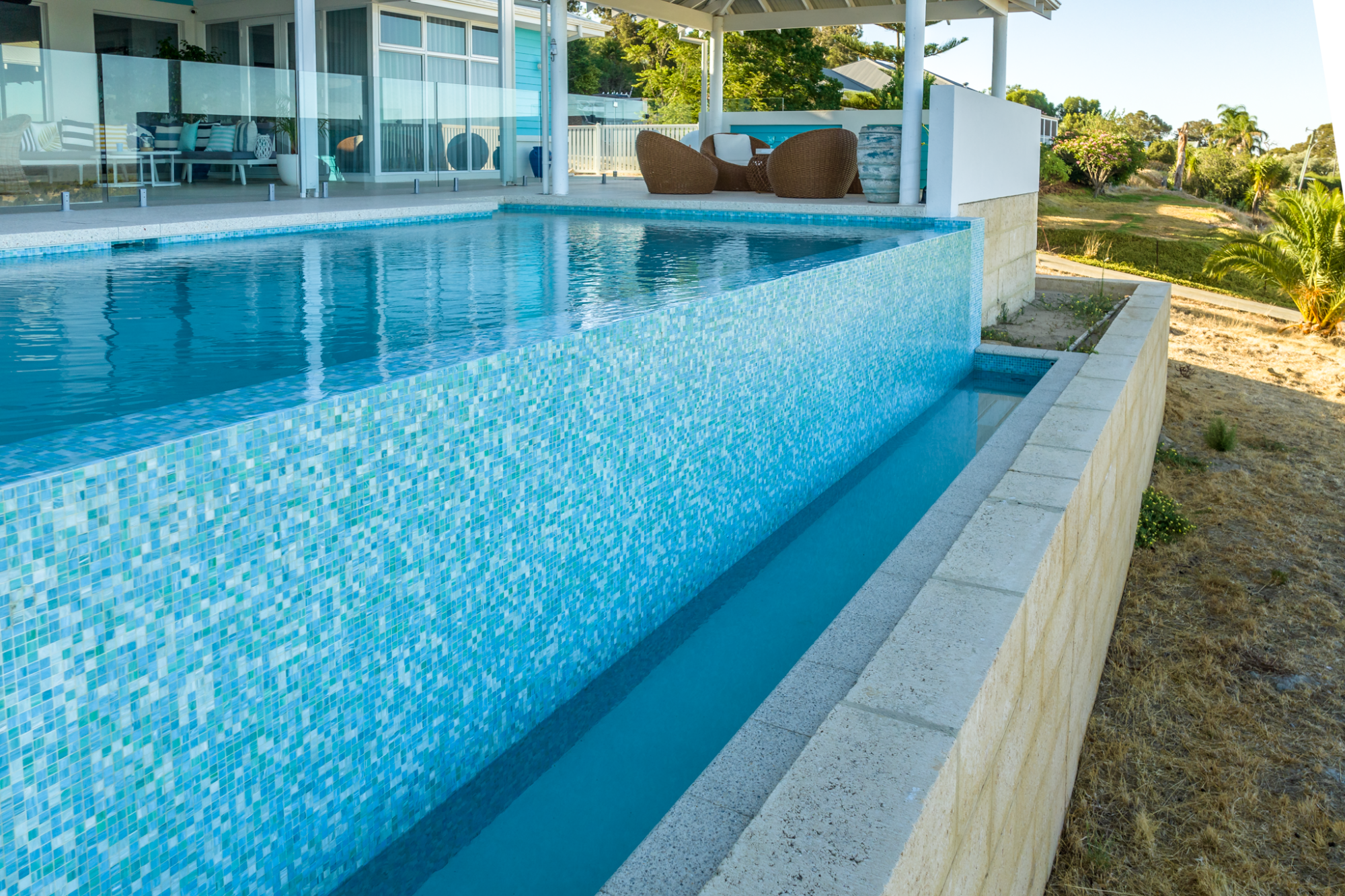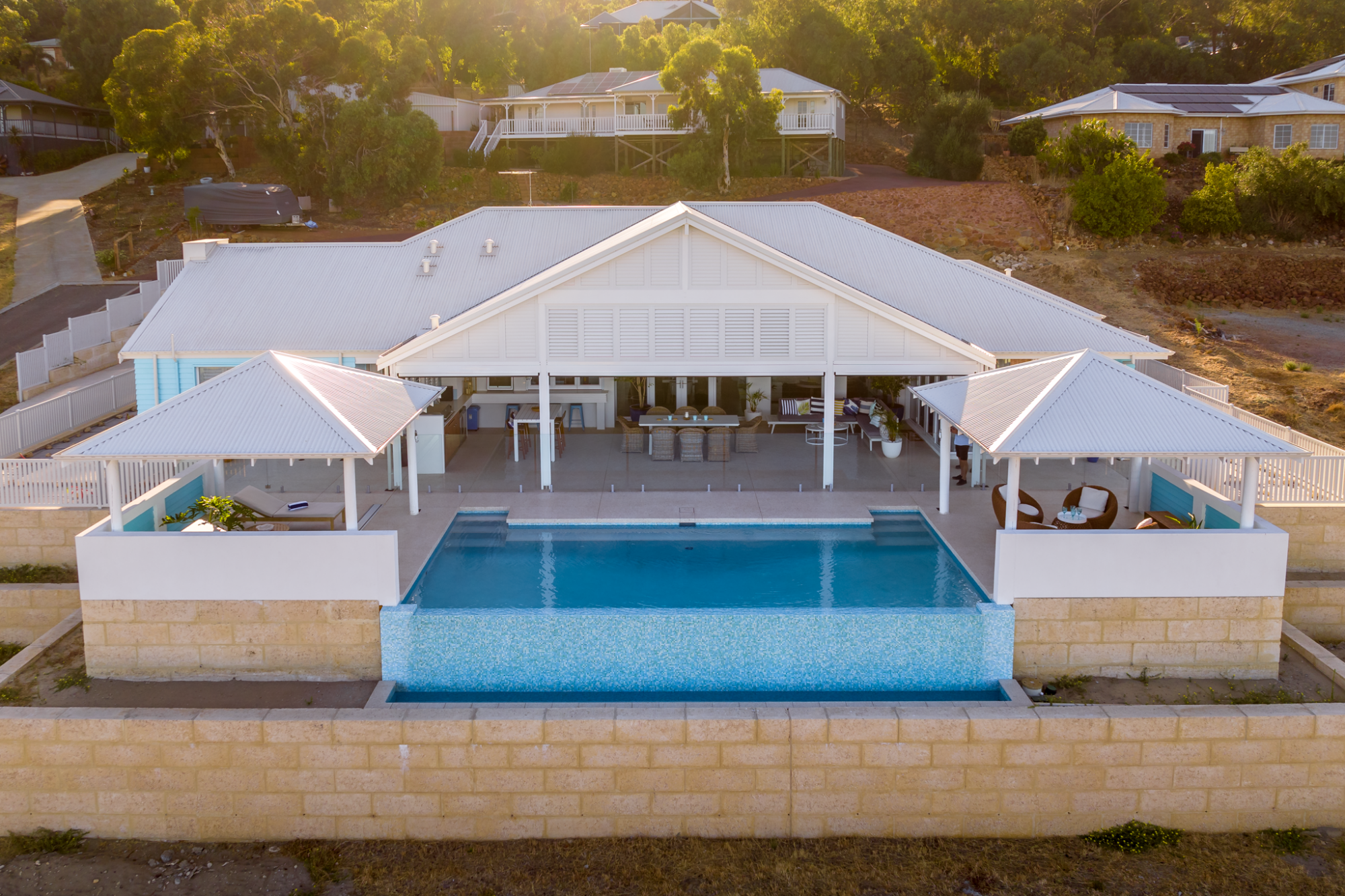 The clients absolutely love entertaining from the alfresco area and cabanas of this incredible, breathtaking pool. Sitting back and admiring the view over the hills and Perth city from their own impeccably designed and constructed masterpiece of a pool is exactly how they imagined it. The view from the road and driveway as you enter is just as impressive as being in the pool.