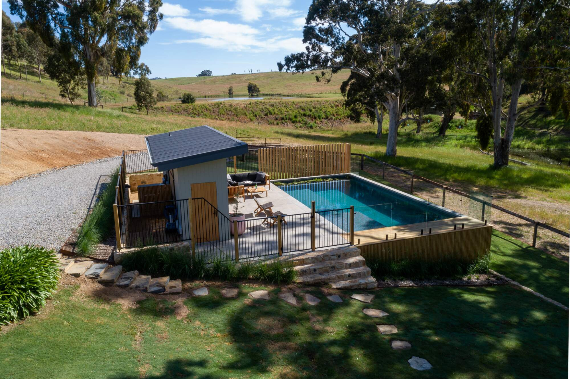 A stunning feature piece of natural pool and landscape design blending and enhancing with the beautiful acreage of this Adelaide Hills home.