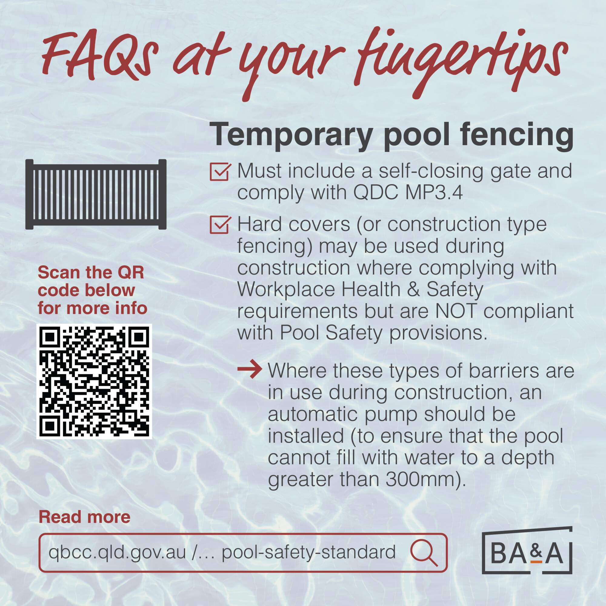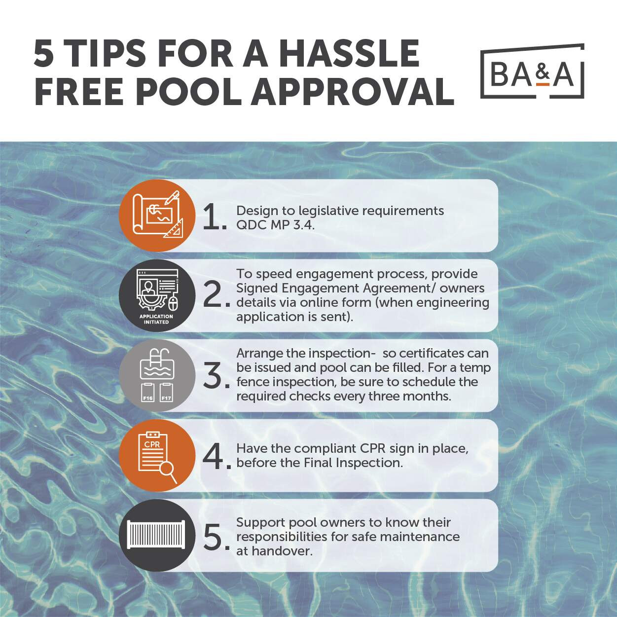 Building Approvals and Advice (BA&A) is a small team of experienced pool certifiers, here to help pool builders deliver safe projects. Based in north Brisbane, we specialise in hassle free residential pool and barrier approvals for Brisbane, Moreton Bay, Sunshine Coast and beyond. Our friendly and knowledgeable team ensures pool certification runs as smoothly and quickly as possible. BA&A are committed to collaboration and participation within the Queensland pool and construction industry.