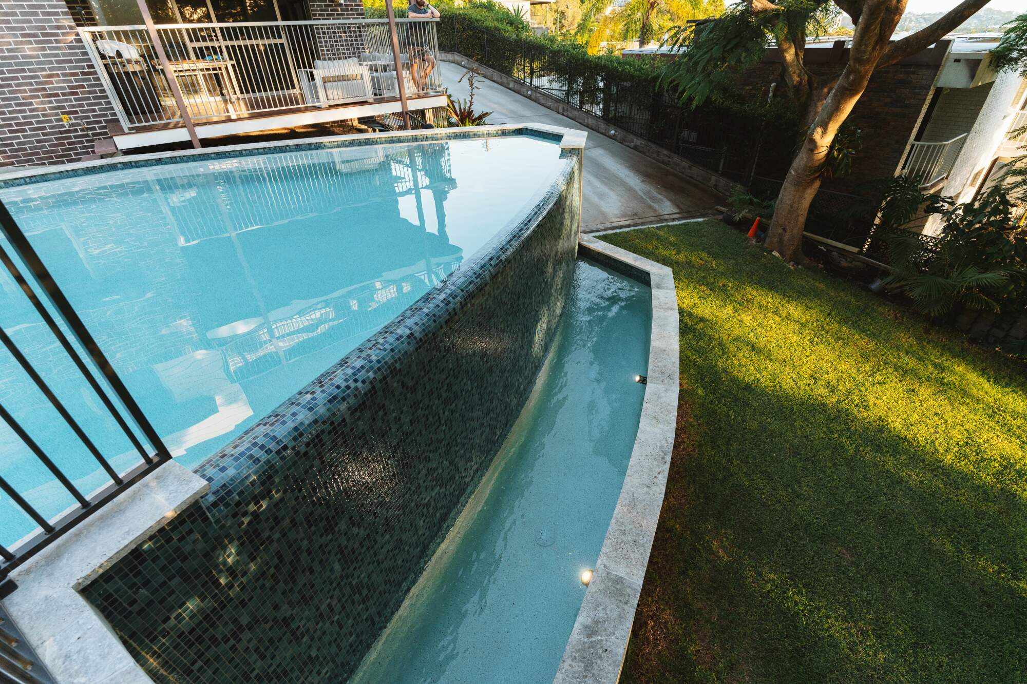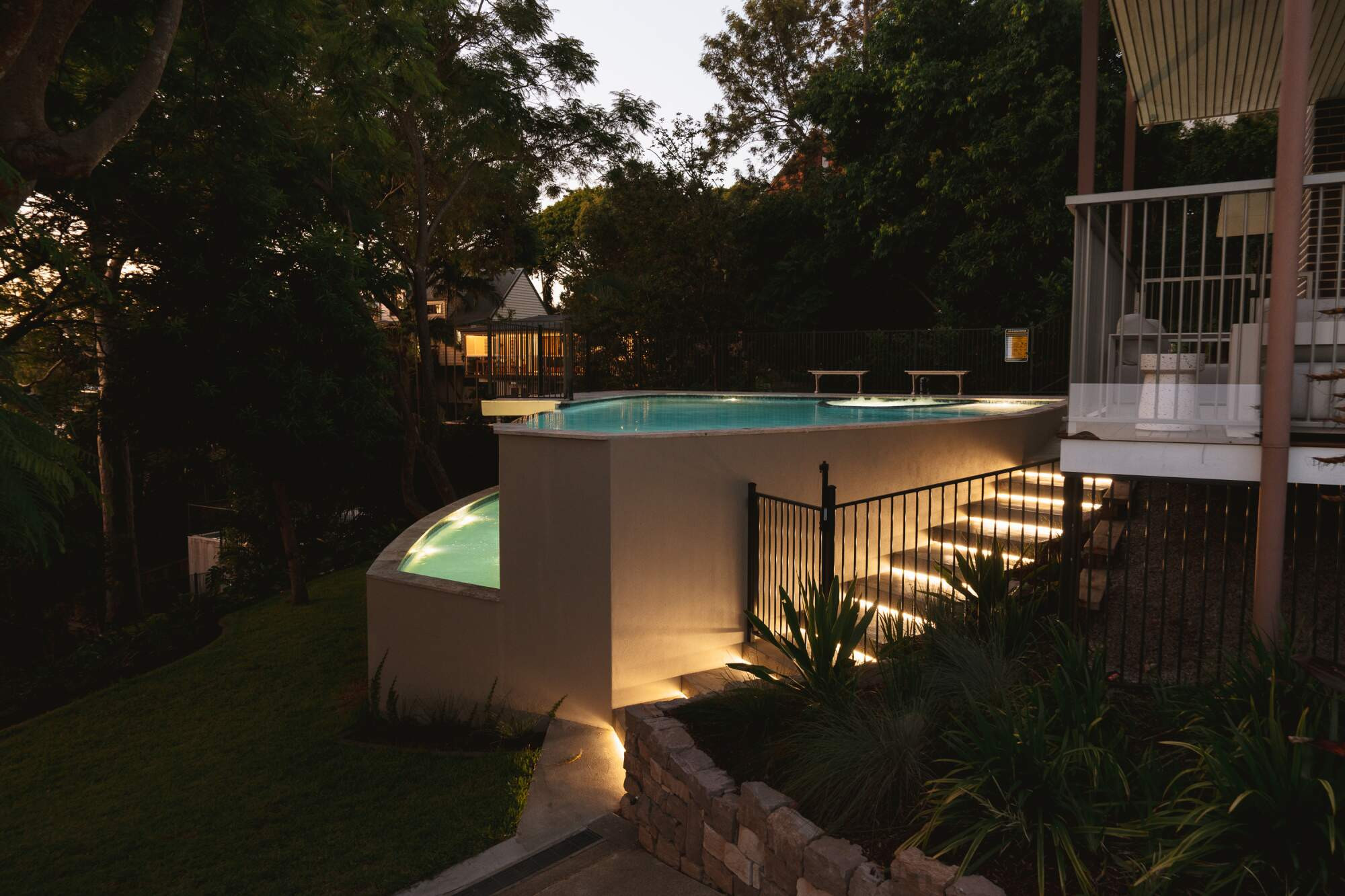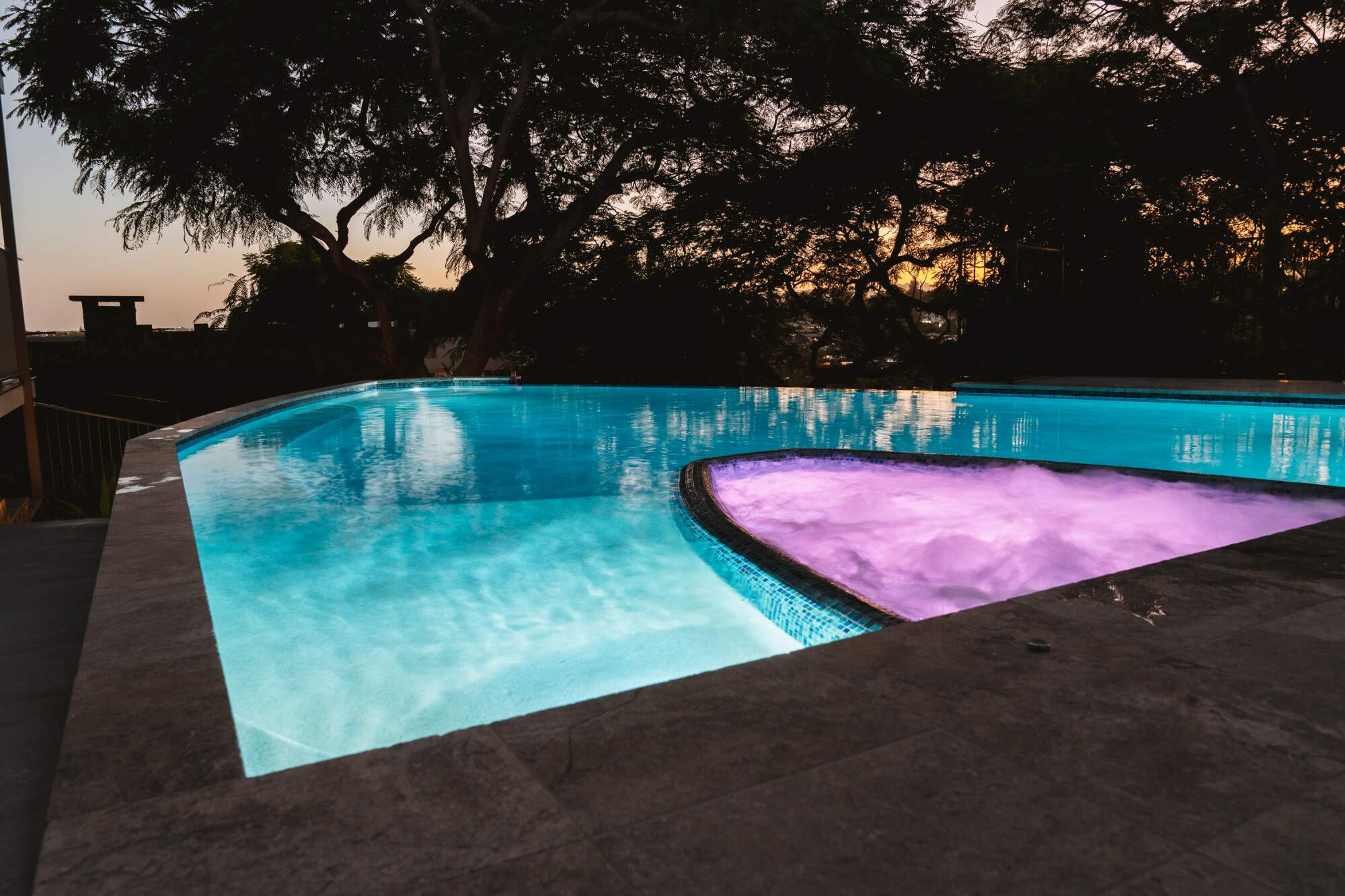 Achieving harmony within your environment is only attained through careful integration of design elements. Pool and spa seamlessly blend to embrace the natural hillside location with an individual infinity edge design. Precise engineering with creative freedom ensured the success of balancing unique features within the environmental context to create a truly rare and exquisitely beautiful pool.