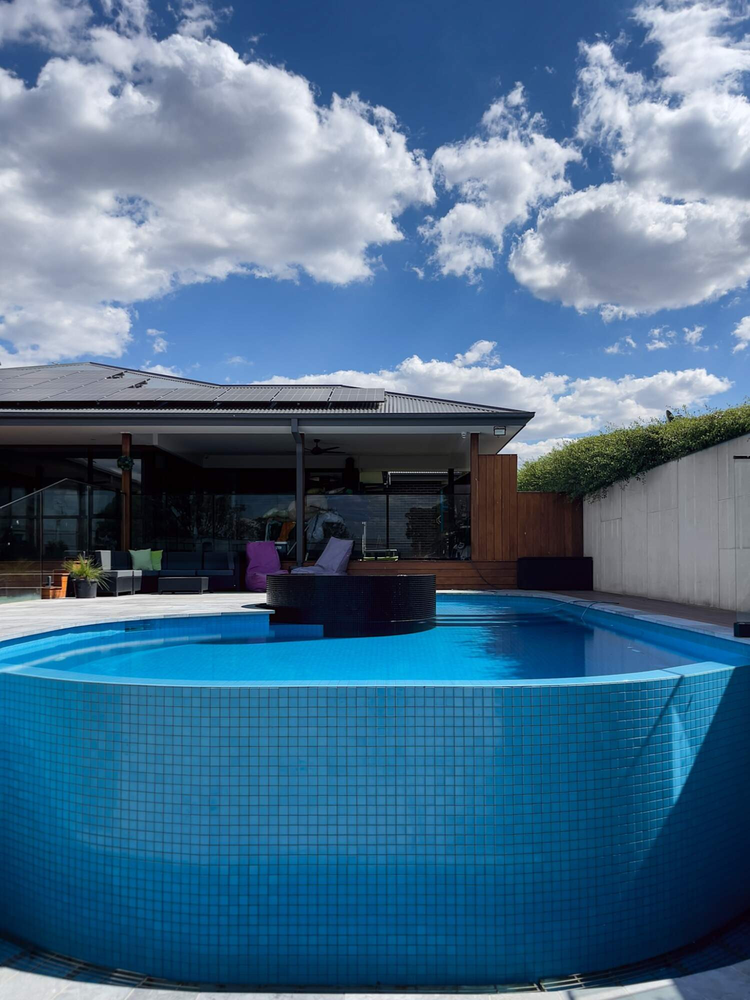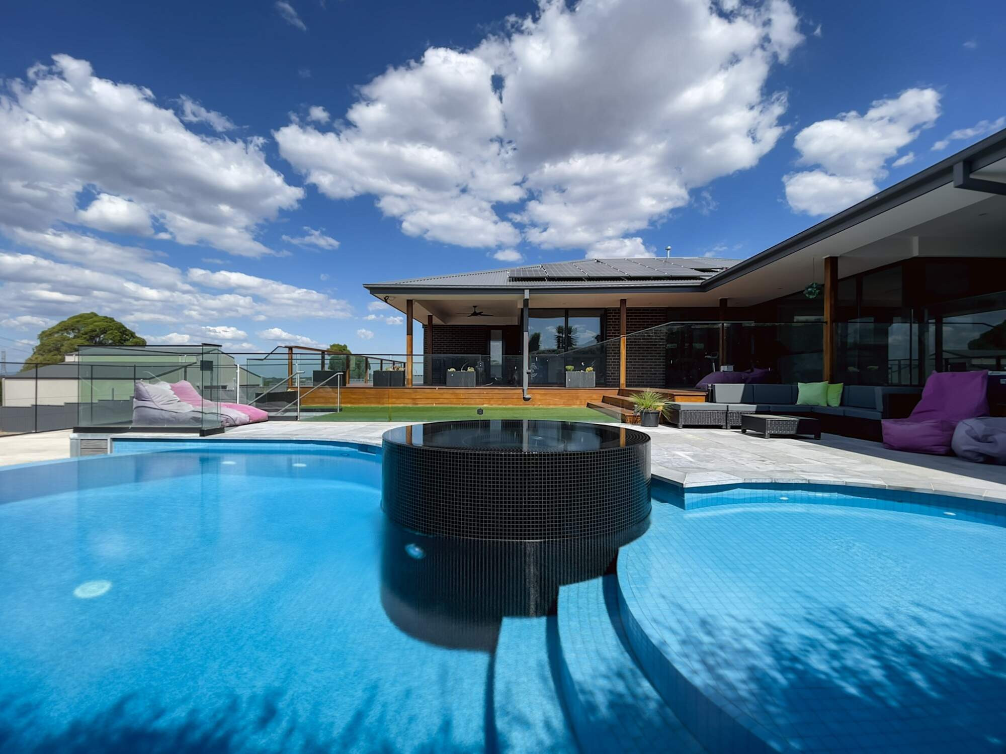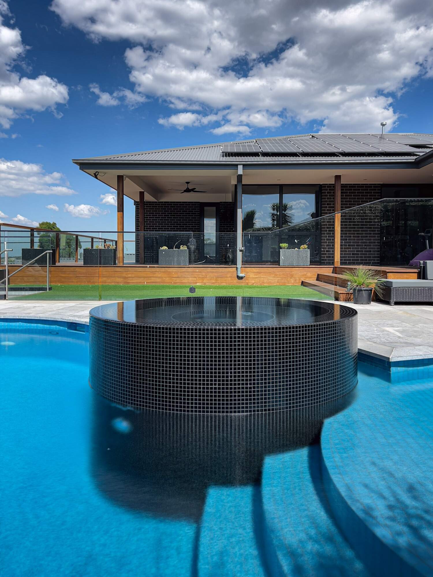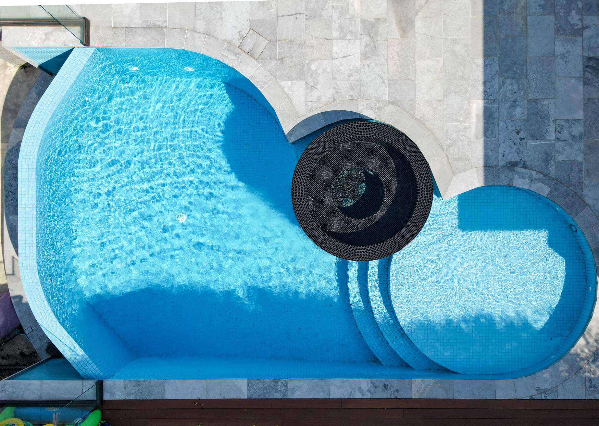 From the infinity edge to the shallow areas, this layout differs from the typical pool, offering a dynamic and organic shape. With the incorporation of a round spa, reflecting the curves of the pool, this design represents a bold departure from convention, showcasing our dedication to innovation, creativity, and attention to detail. Furthermore, the tile contrast creates a striking visual focal point, accentuating the design and enhancing the overall aesthetic appeal of the space.