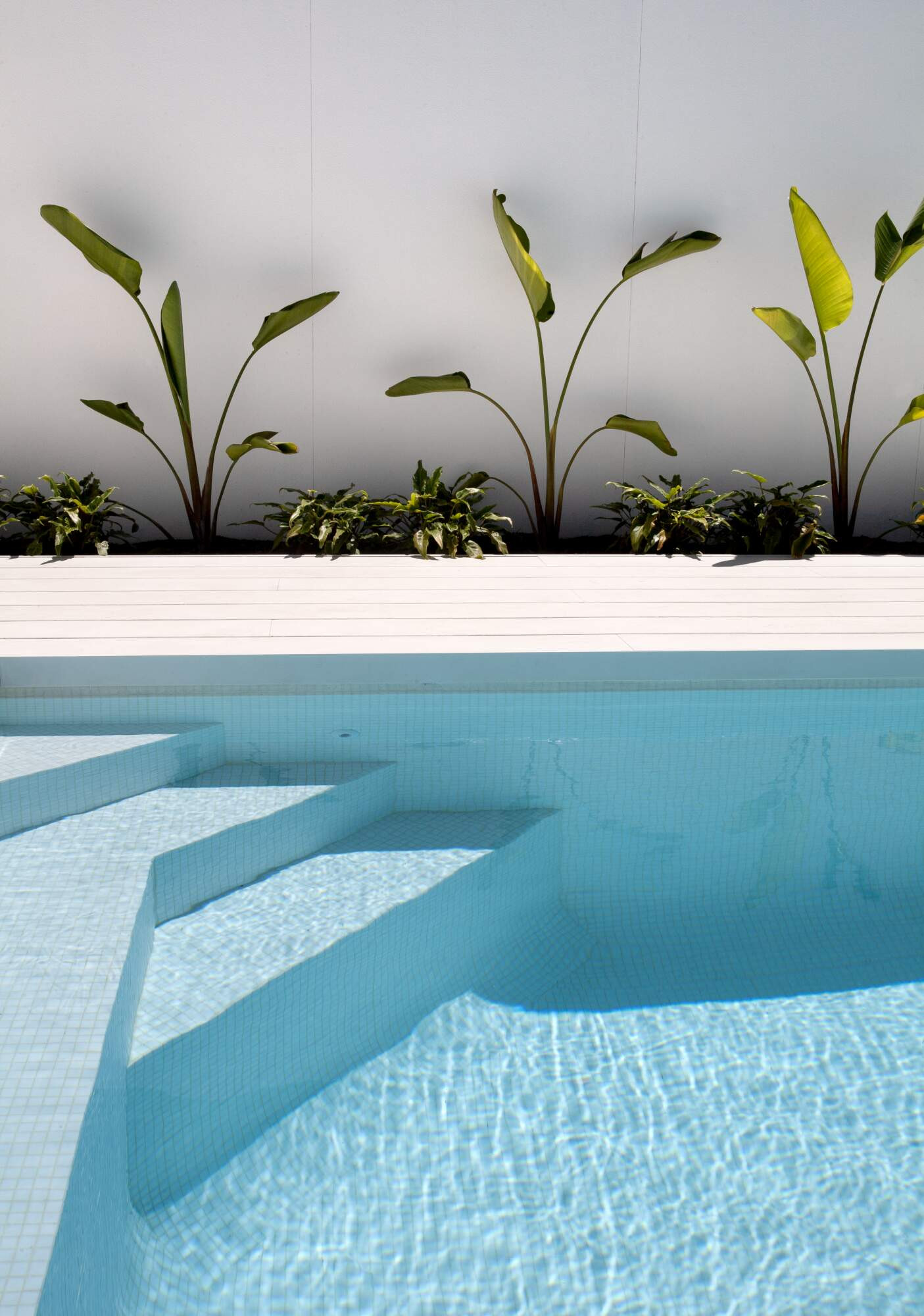 This family can now experience luxury without compromise, with our stylish pre-fabricated plunge pool – the perfect solution for this sloping block. The white mosaic pool tiles exude elegance, showcasing the crystal-clear water whilst adding some dazzle to the space. Designed with both style and functionality in mind, this Hampton's-inspired oasis features a custom-made bench seat for relaxing and ample swimming space, perfect for the whole family to enjoy.