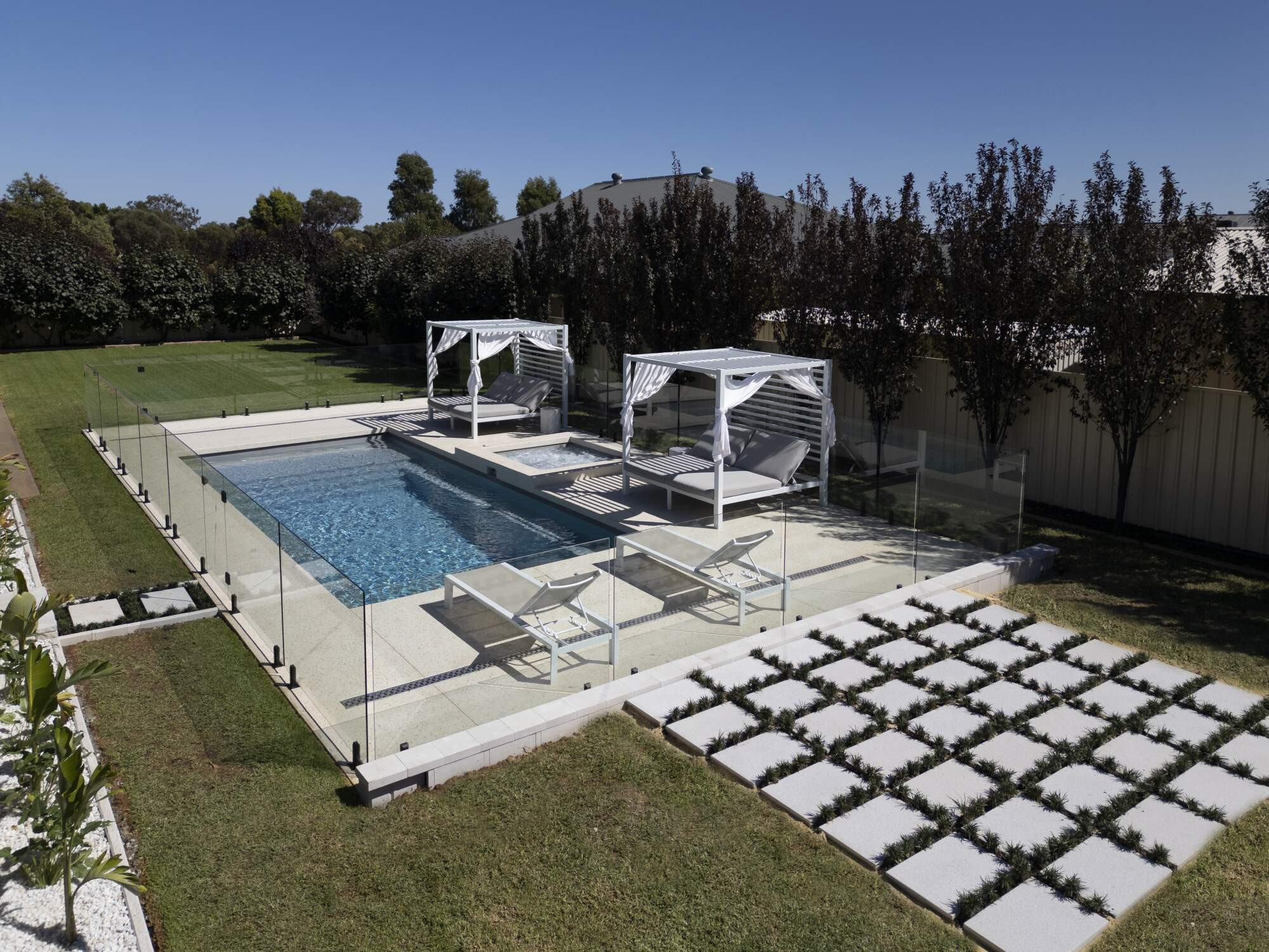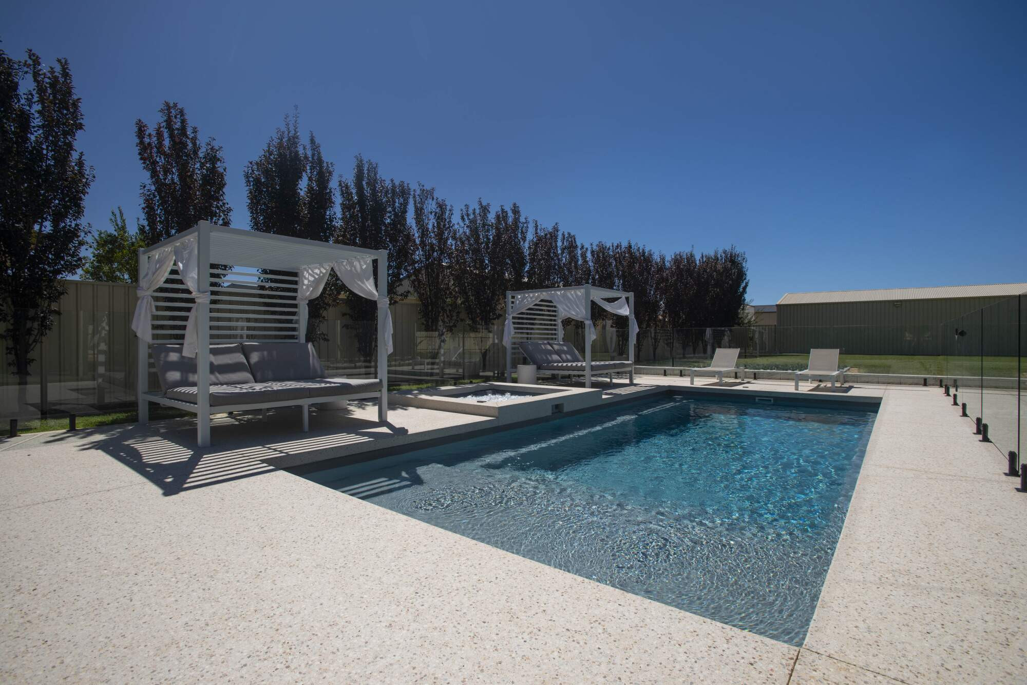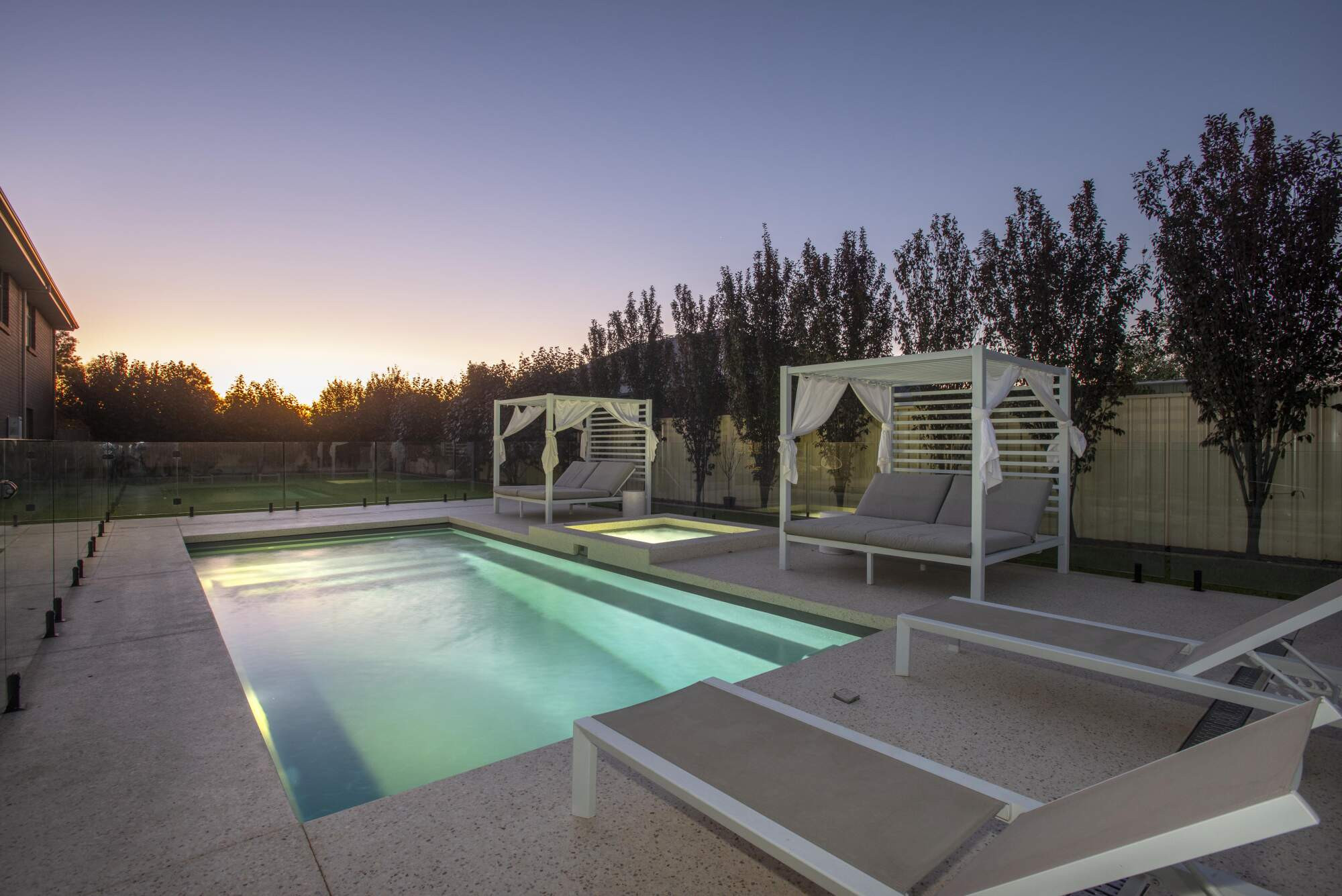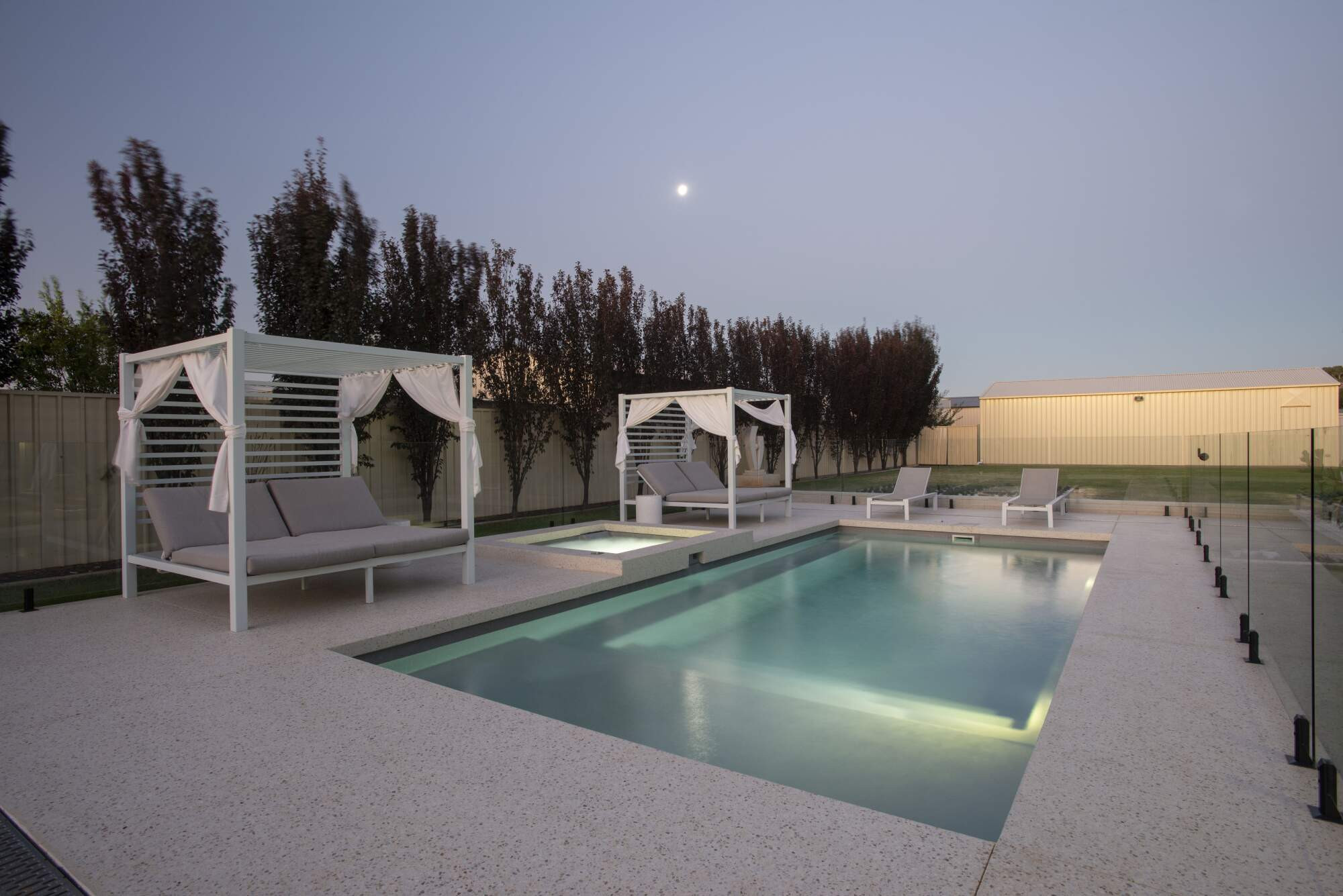 Step into your own private paradise in Angle Vale, where luxury and tranquility meet seamlessly. At the heart of this sanctuary lies a lavish 8.5m x 3.8m pool, carefully chosen for unparalleled relaxation. Nestled between two day beds adorned with flowing canopies, a secluded spa awaits, elevating the ambiance to an upscale, exclusive level that perfectly aligns with the client's vision.