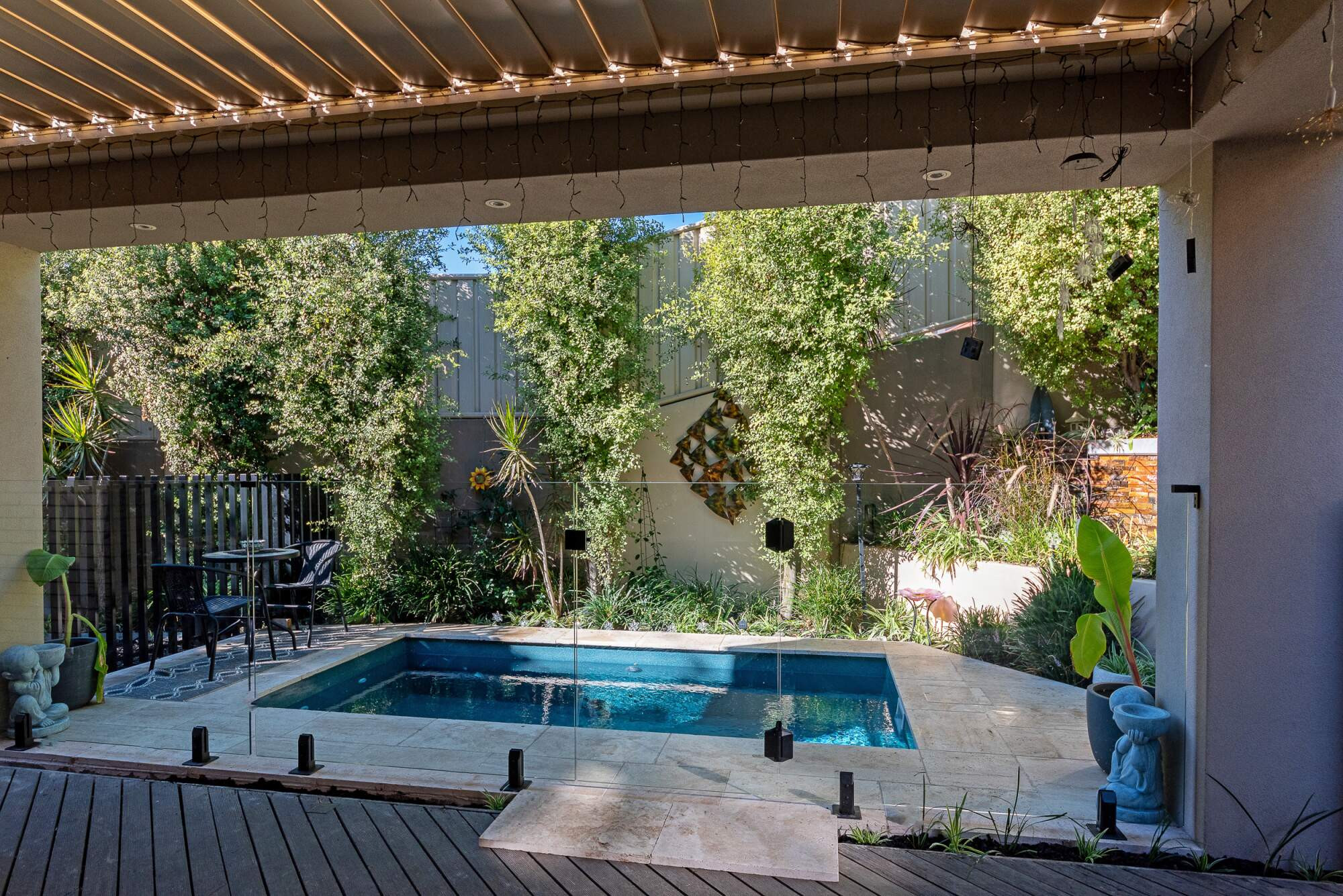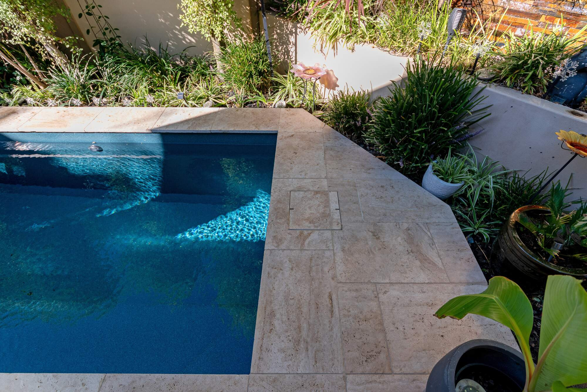This sweet little courtyard pool exudes the charm of a private villa retreat. The build of this pool posed a unique challenge, with access limited to just one wheelbarrow width. Despite these obstacles, the result is nothing short of exquisite. Every detail of this plunge pool is a testament to dedication and craftsmanship.